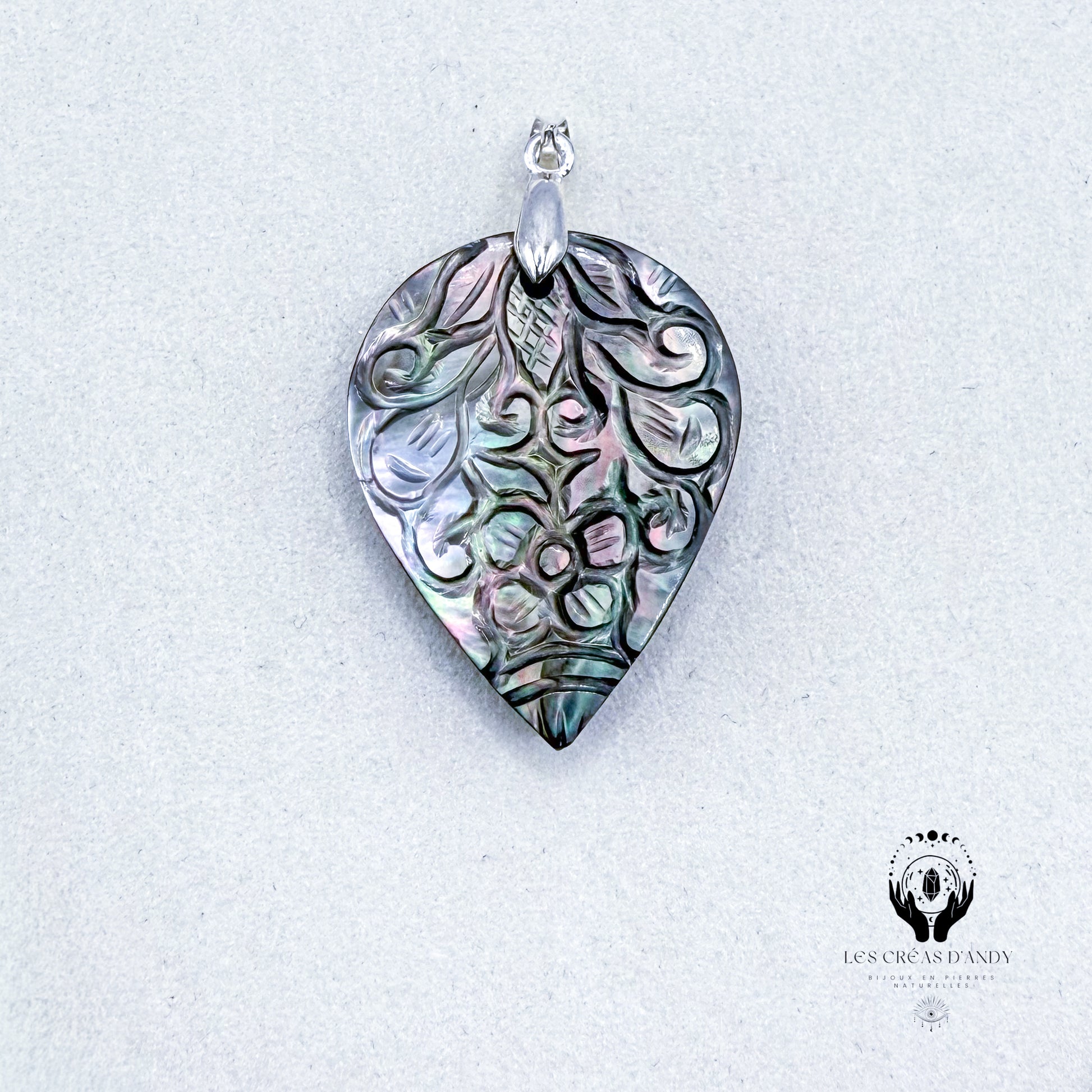 Pendentifs en pierres naturelles Abalone et bélière acier inoxydable.
