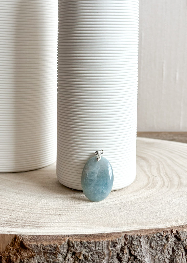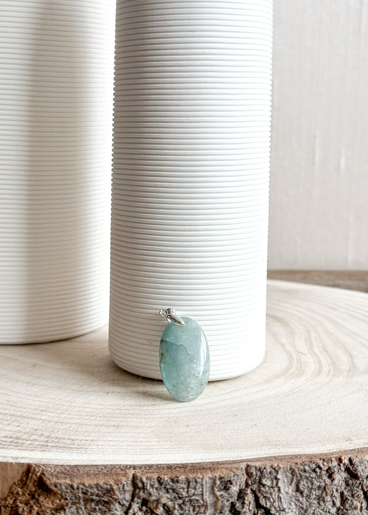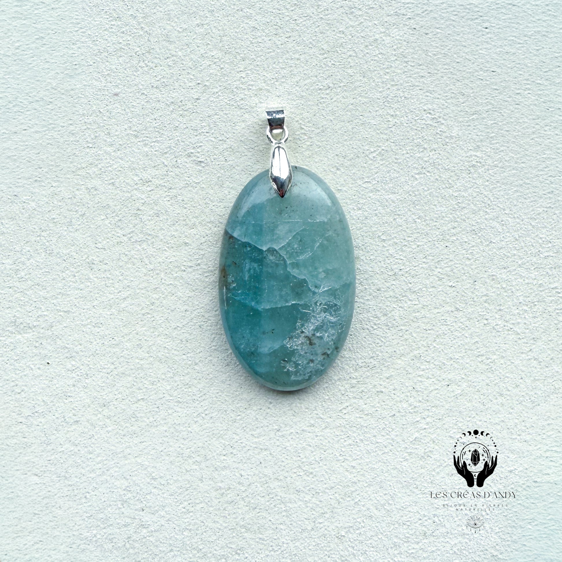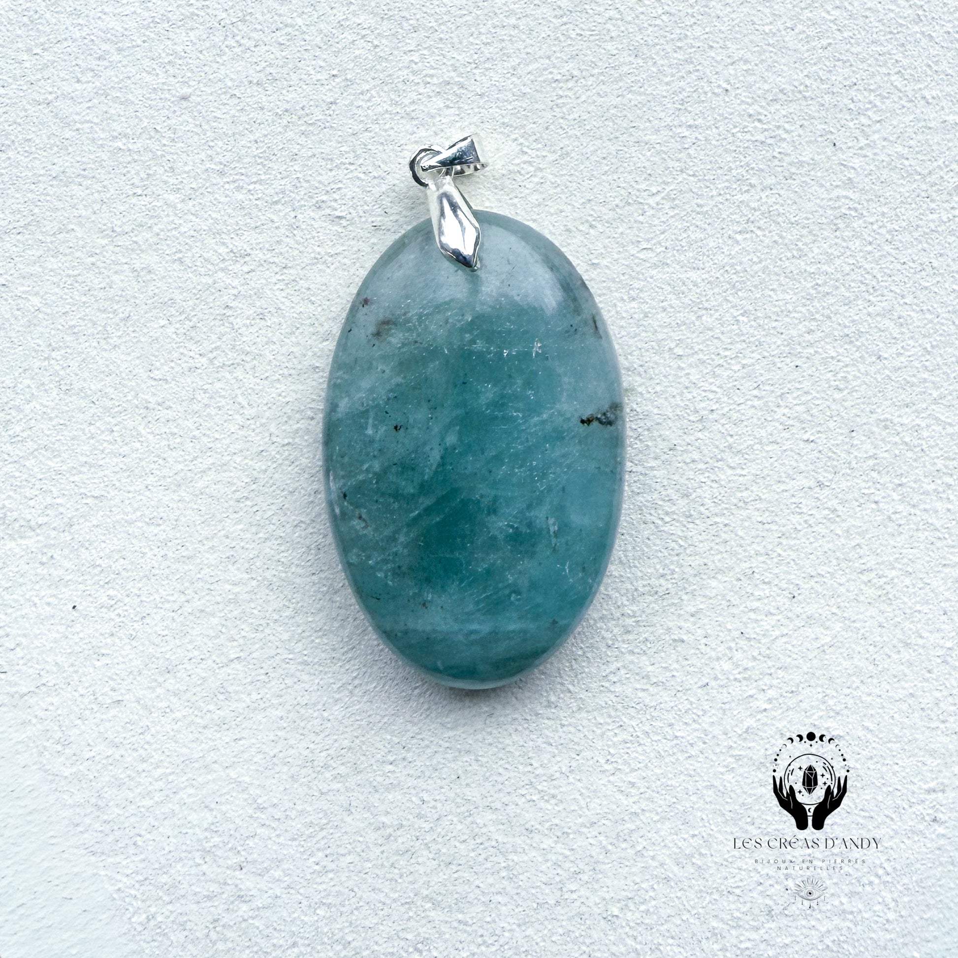 Pendentifs en pierres naturelles Aigue-marine et bélière acier inoxydable.