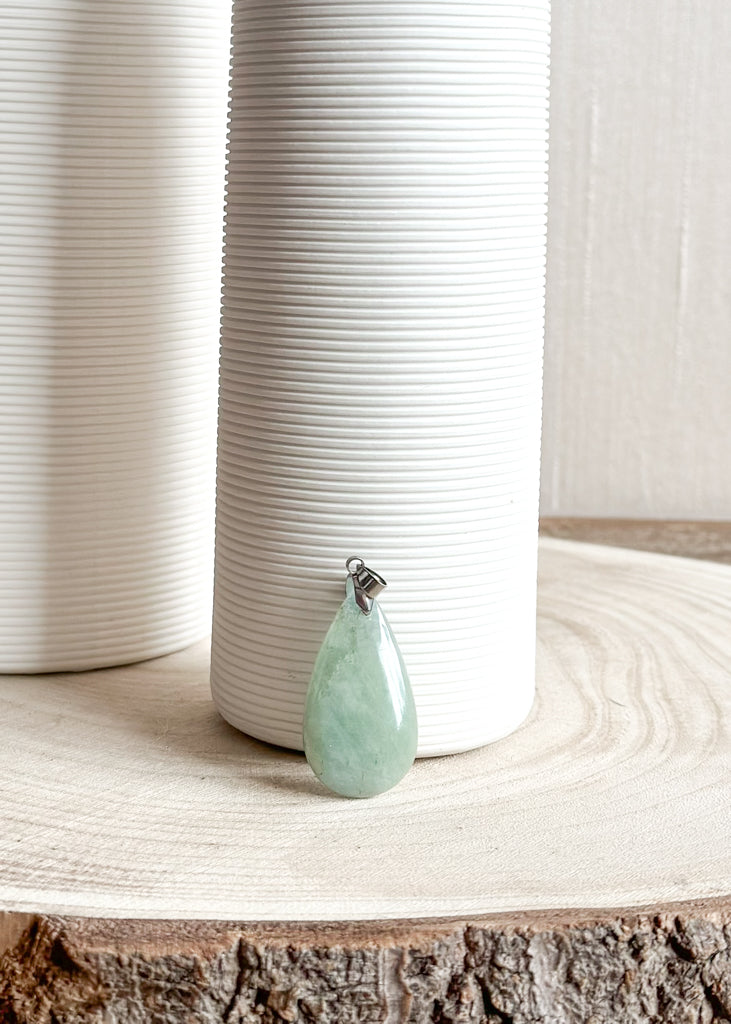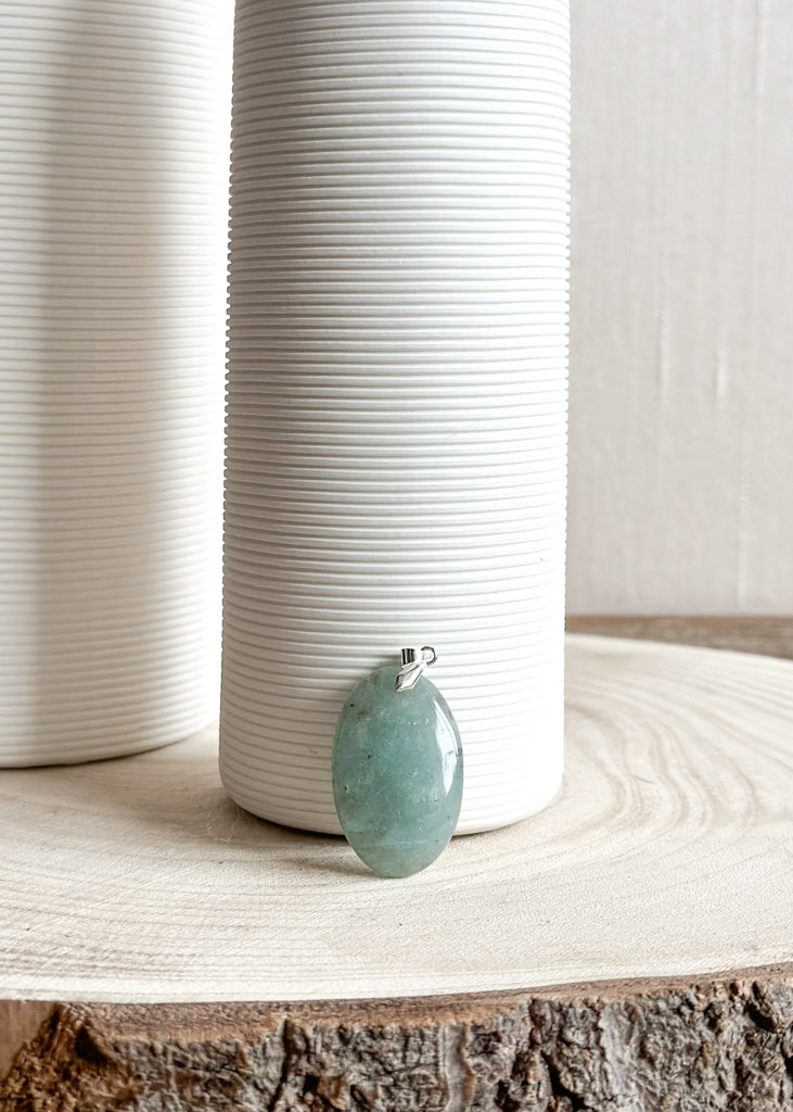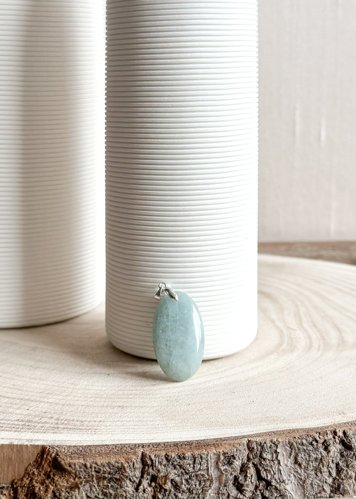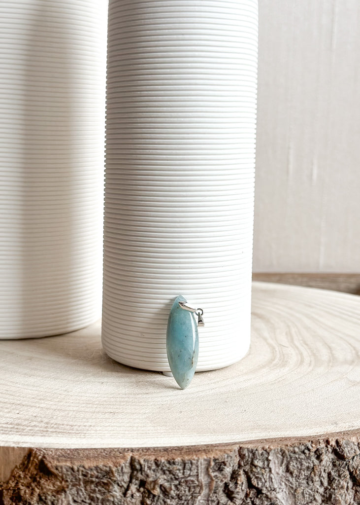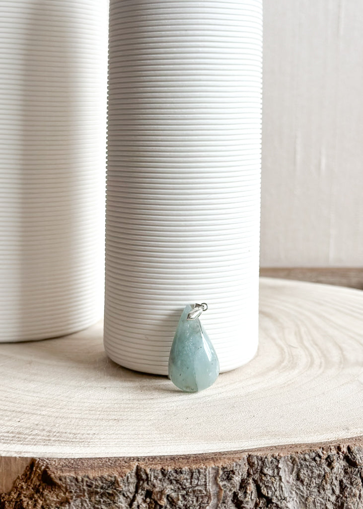 Pendentifs en pierres naturelles Aigue-marine et bélière acier inoxydable.