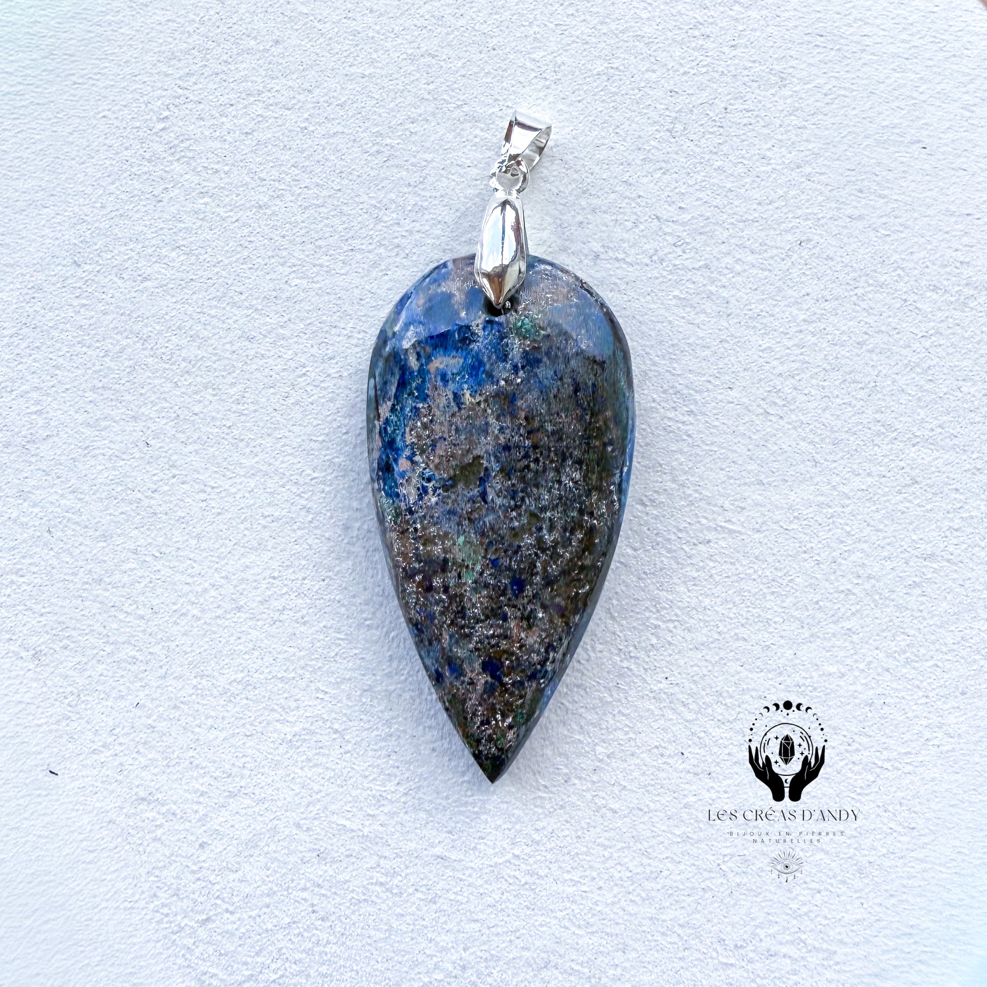 Pendentifs en pierres naturelles Azurite et bélière acier inoxydable.