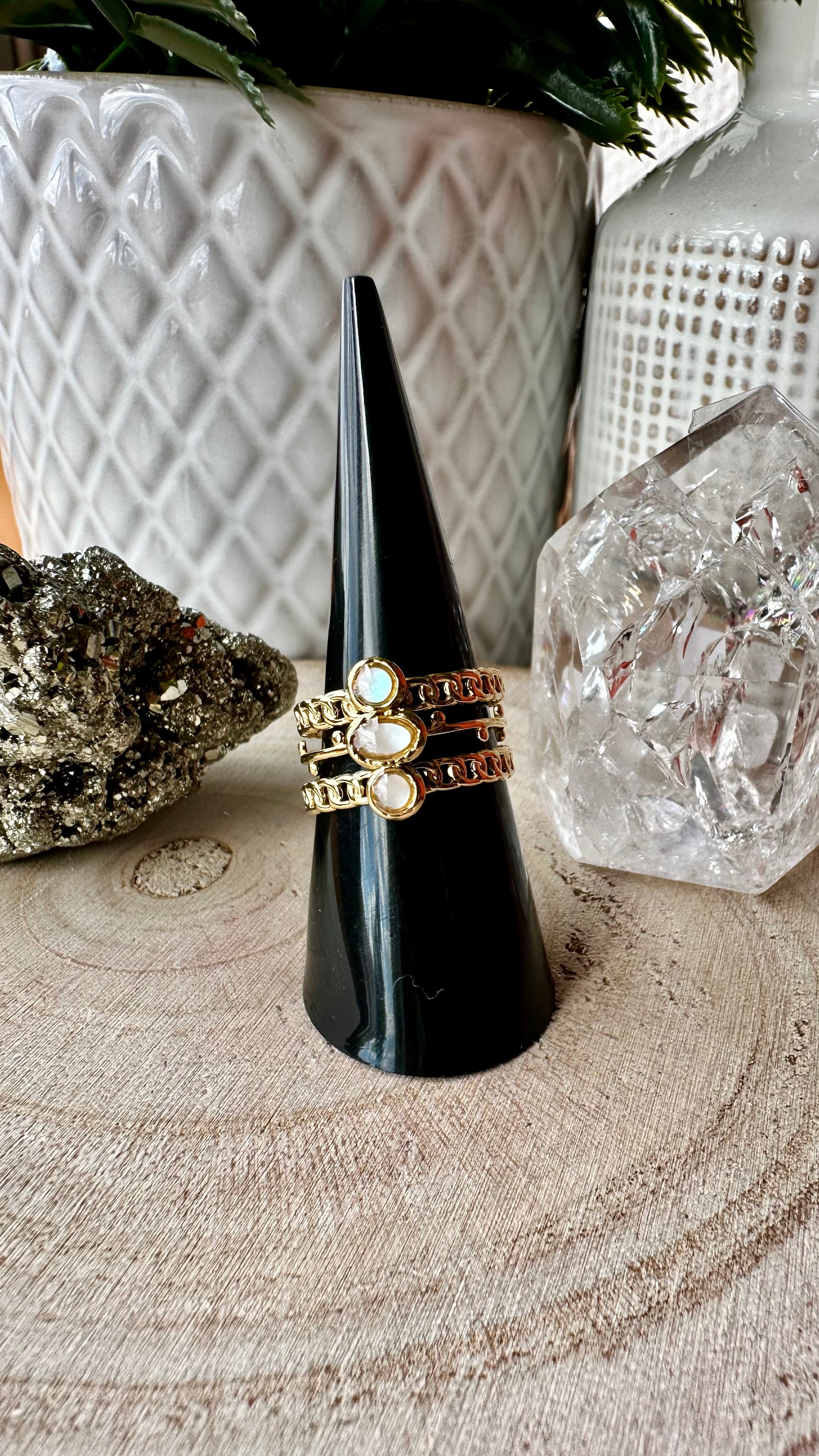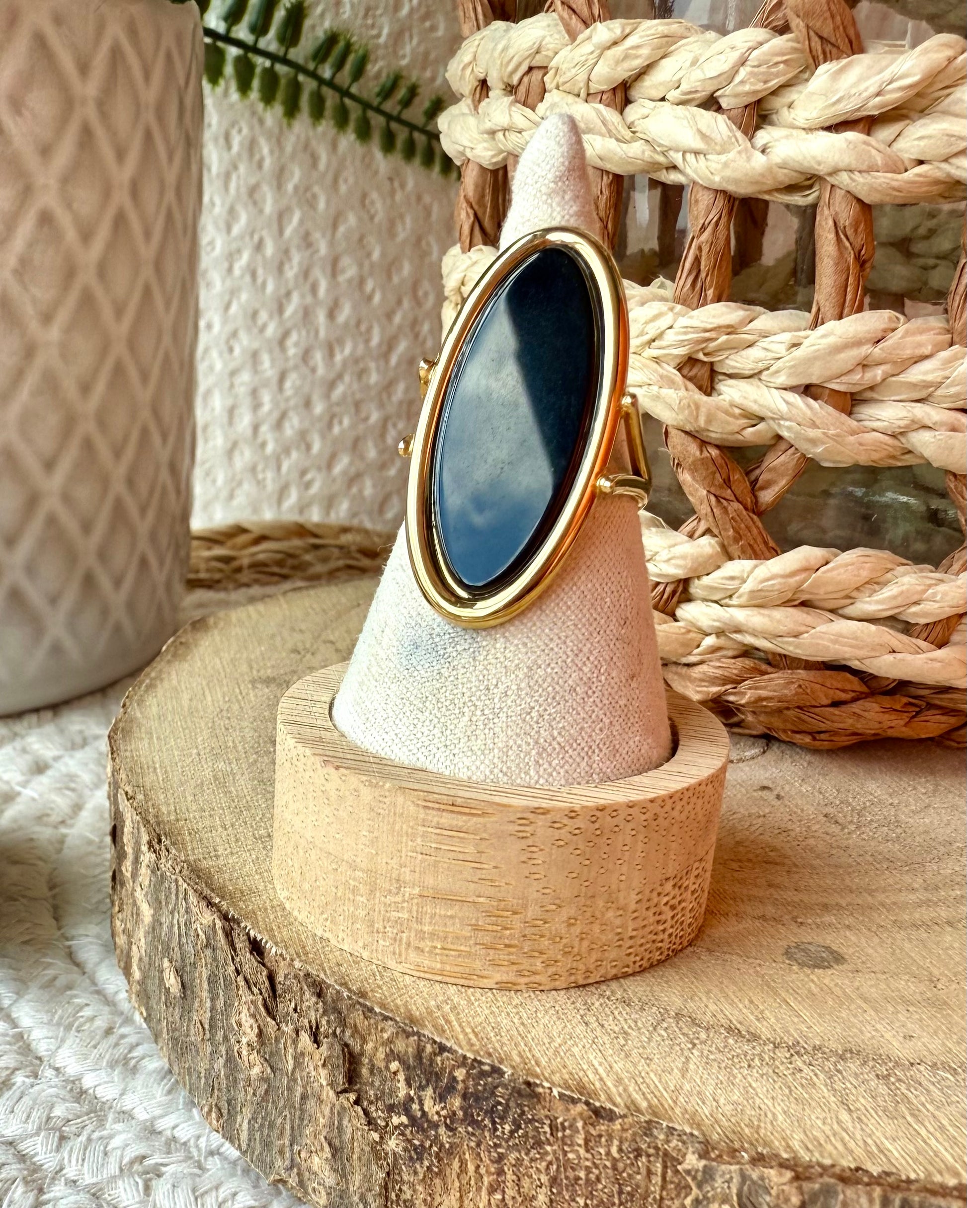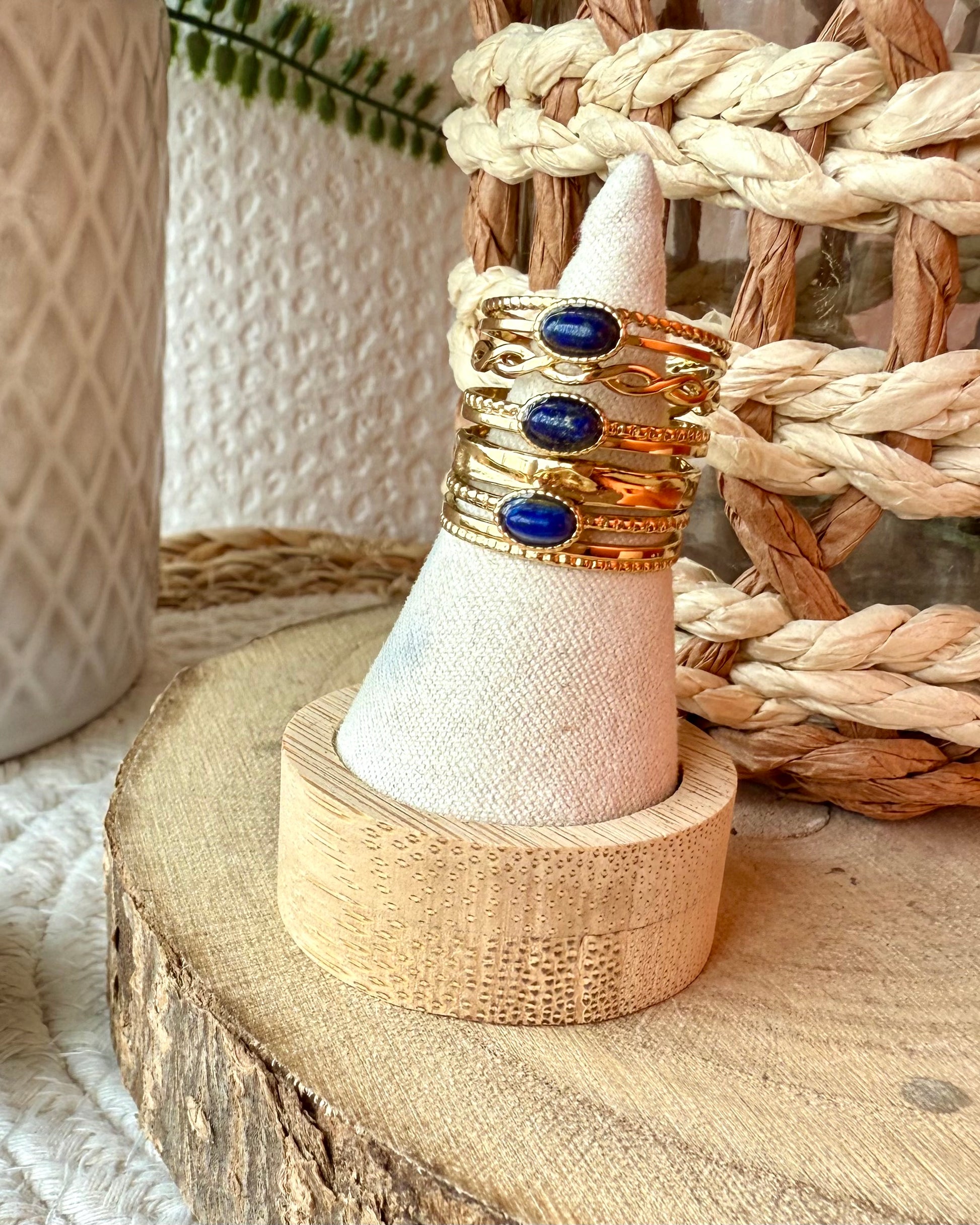 Bagues réglable en acier inoxydable et pierres naturelles l l↑
