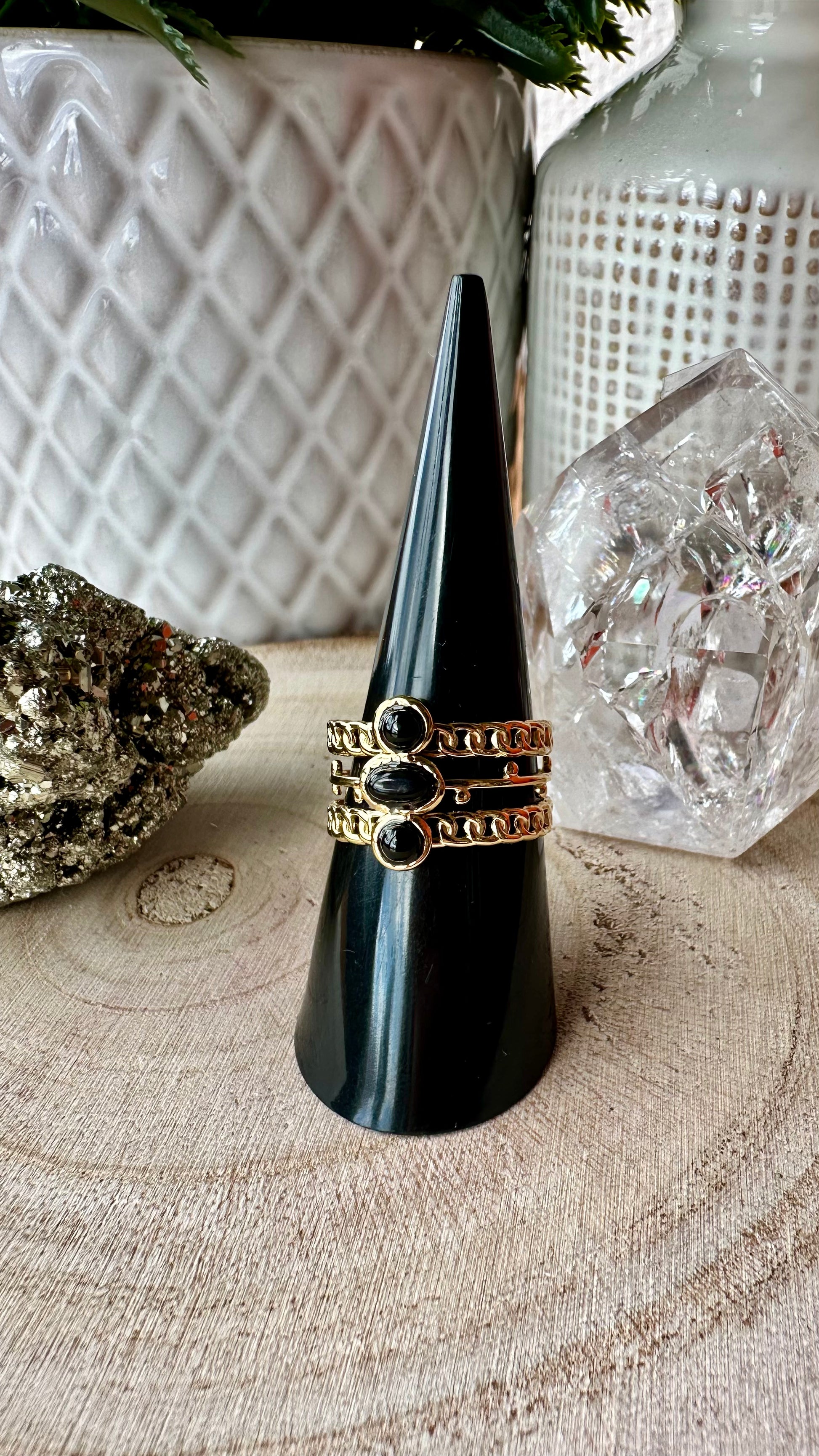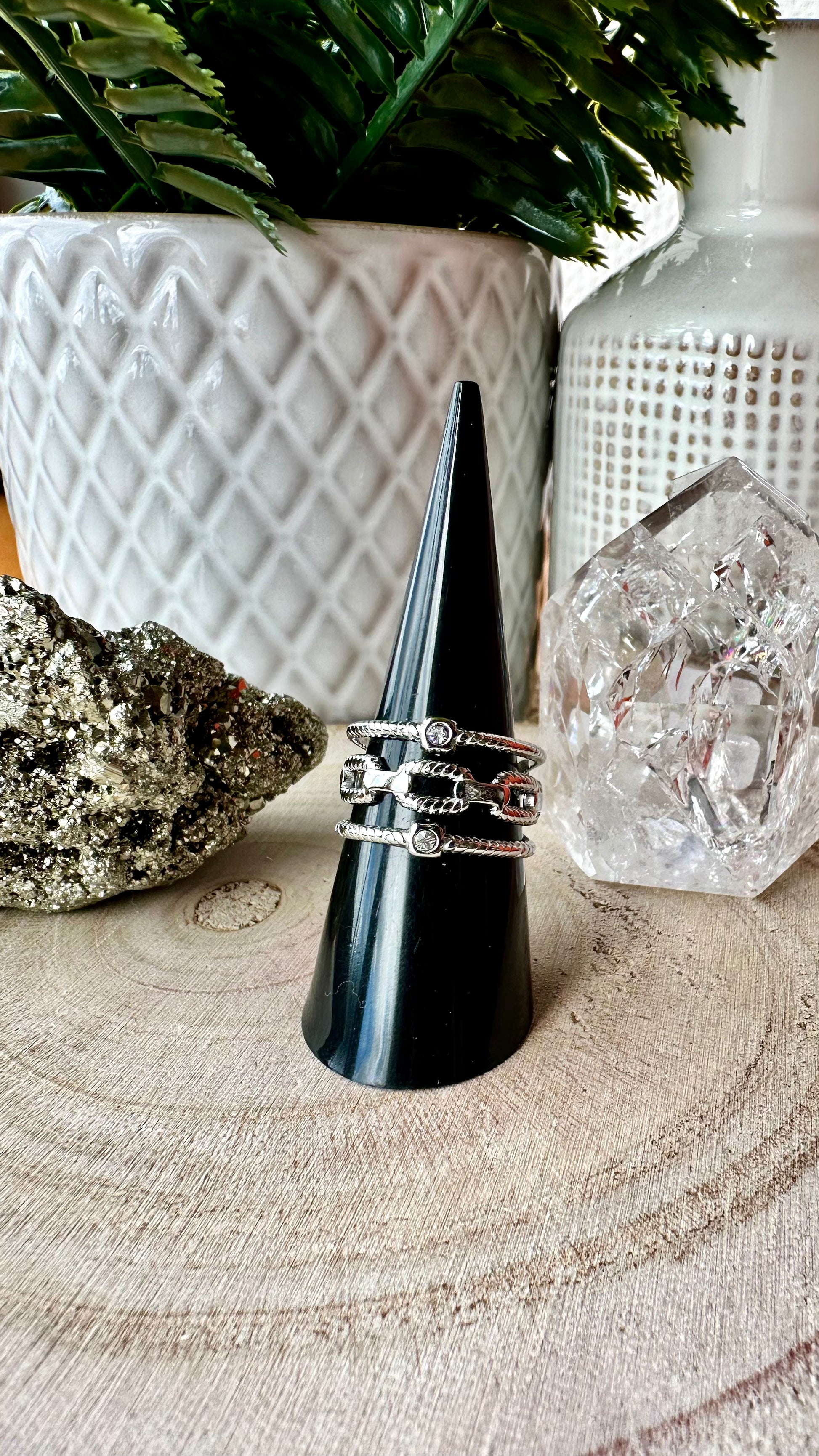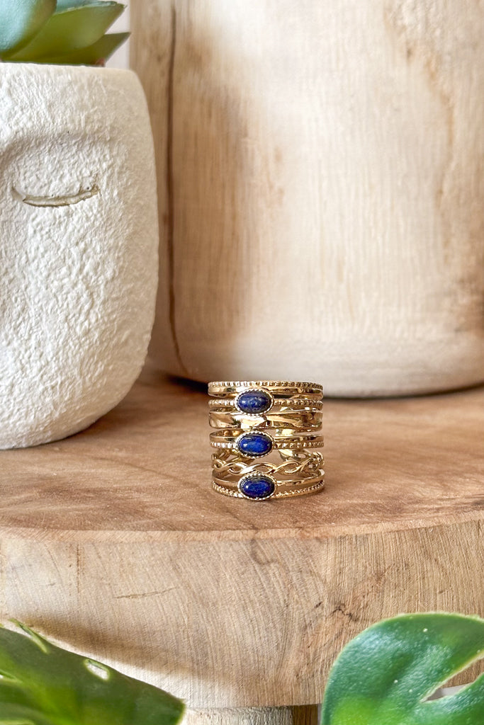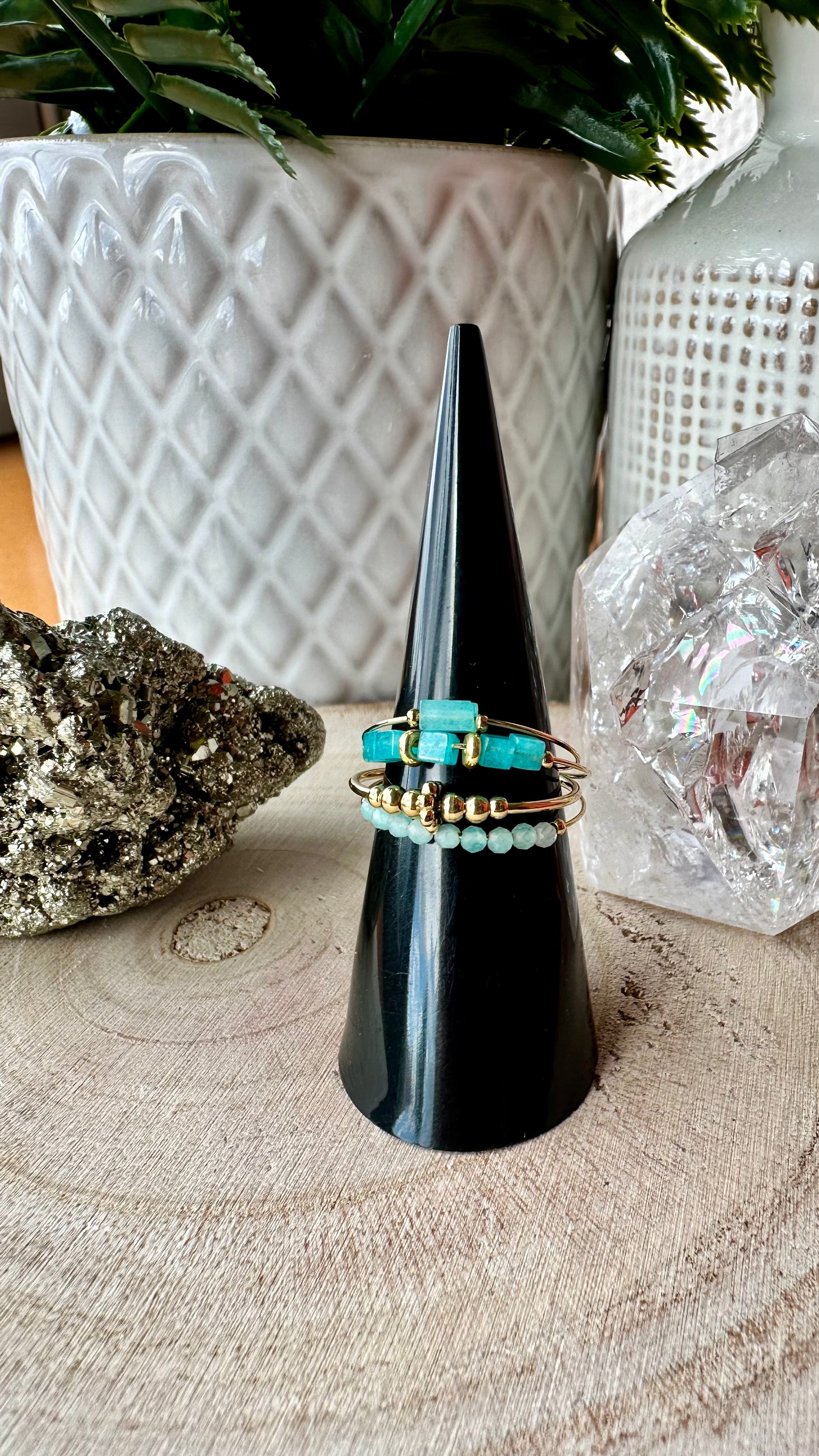 Bagues réglable en acier inoxydable et pierres naturelles l l↑
