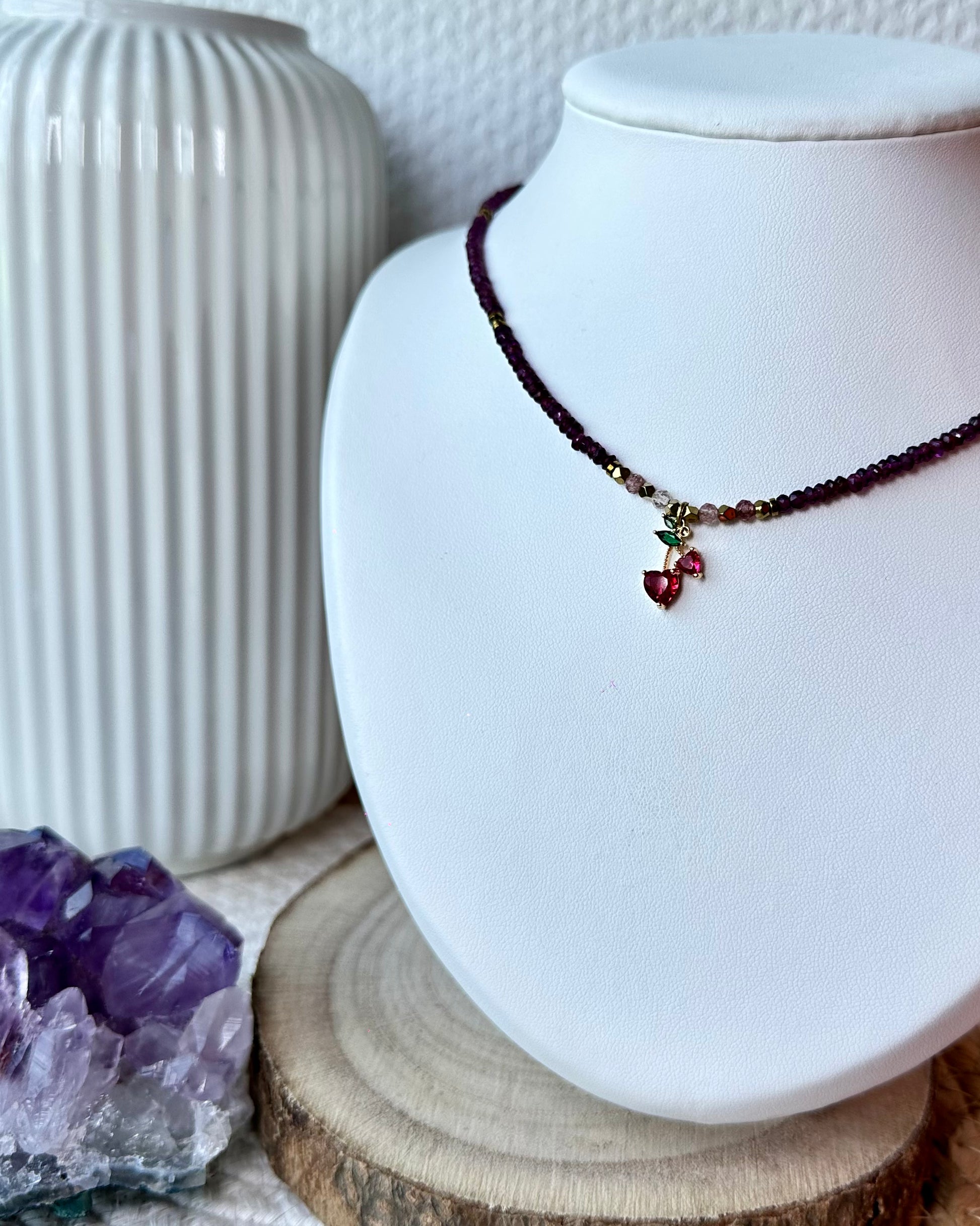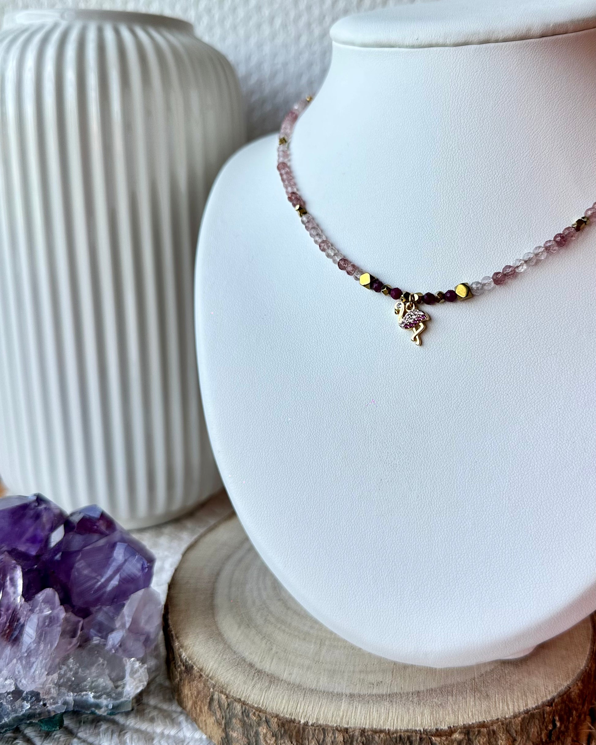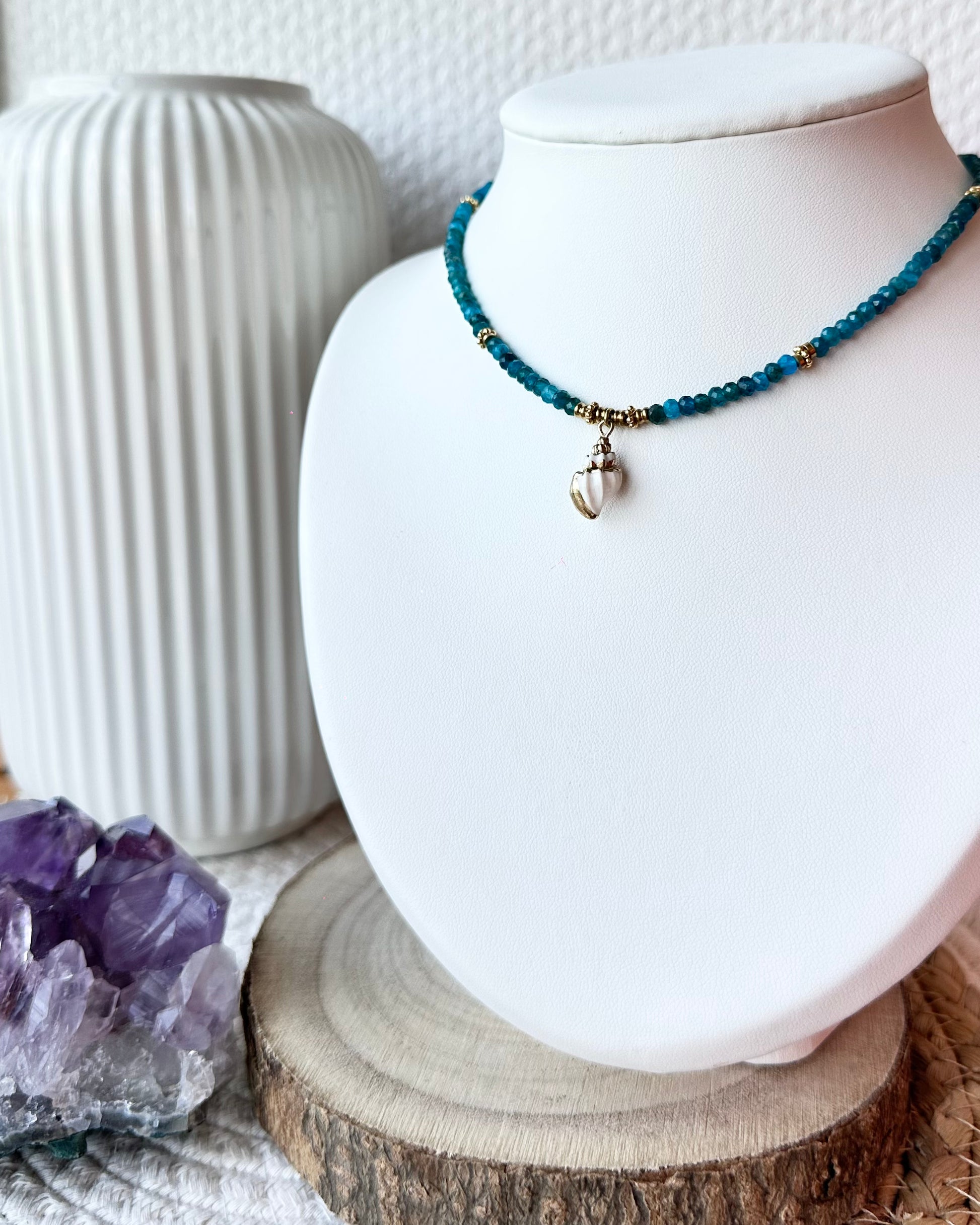 Ras de cou en perles naturelles et acier inoxydable 40cm + 5cm de chainette