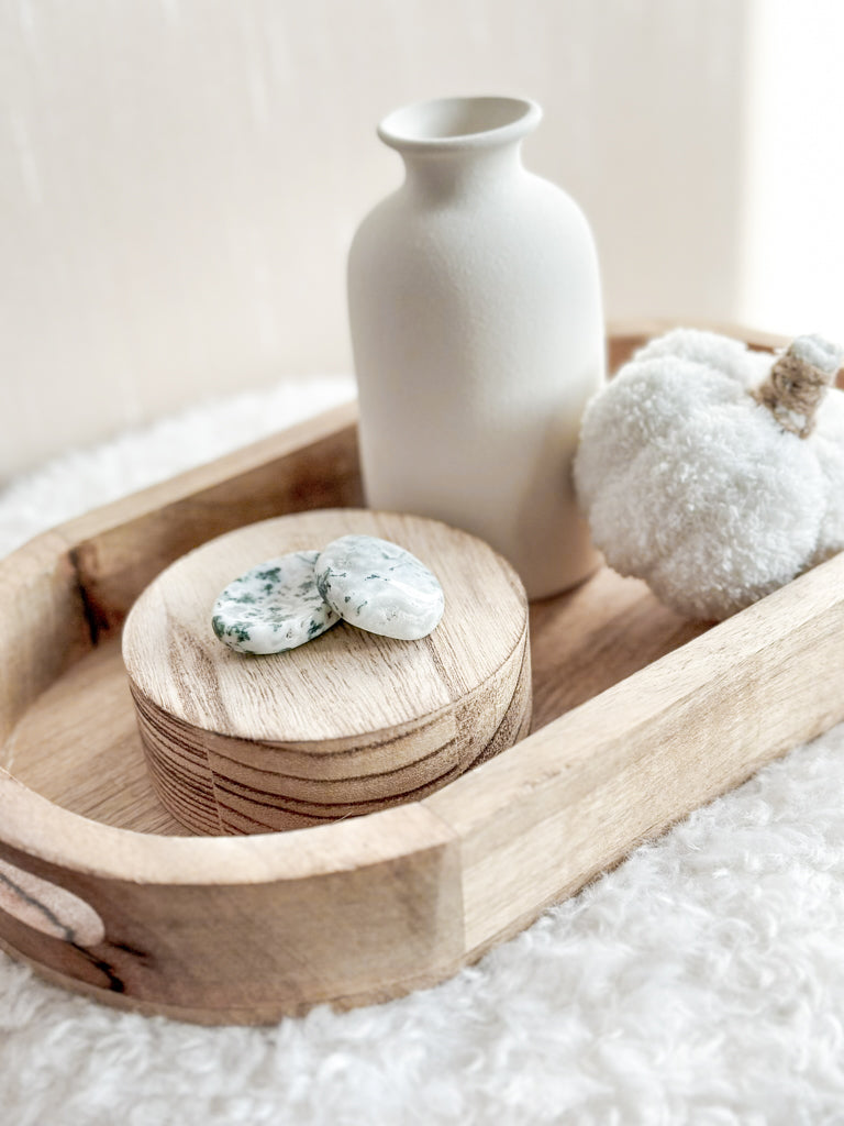 Pierre légèrement creusée afin d'effectuer un mouvement de frottement avec le pouce qui permet de diminuer le stress.