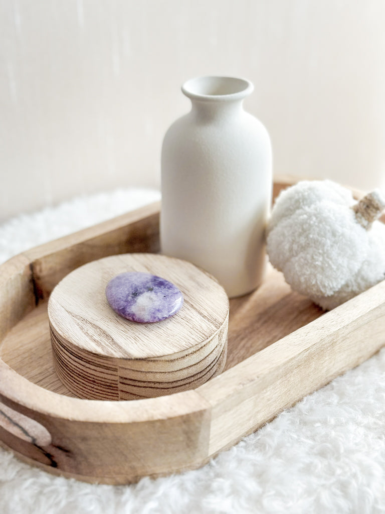 Pierre légèrement creusée afin d'effectuer un mouvement de frottement avec le pouce qui permet de diminuer le stress.
