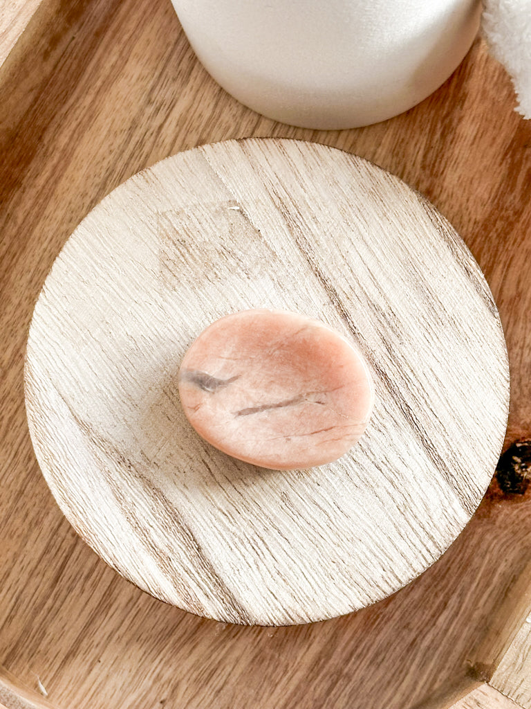 Pierre légèrement creusée afin d'effectuer un mouvement de frottement avec le pouce qui permet de diminuer le stress.