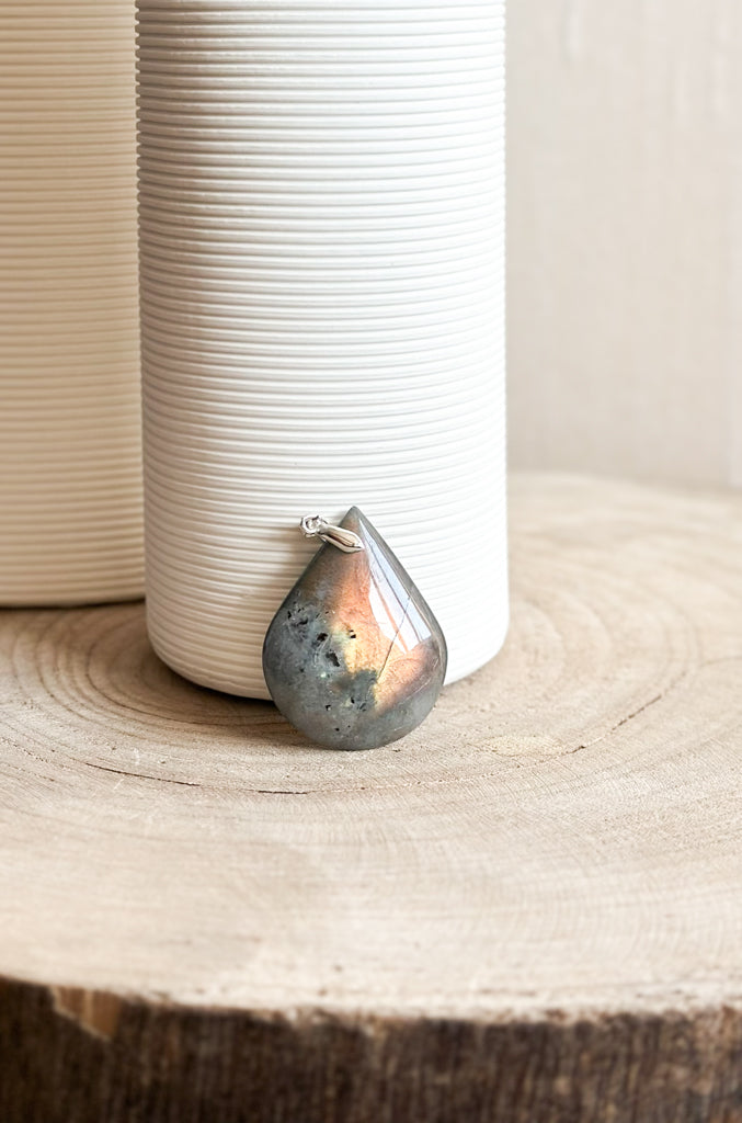 Pendentif en Labradorite 40-45mm reflets rose orangé