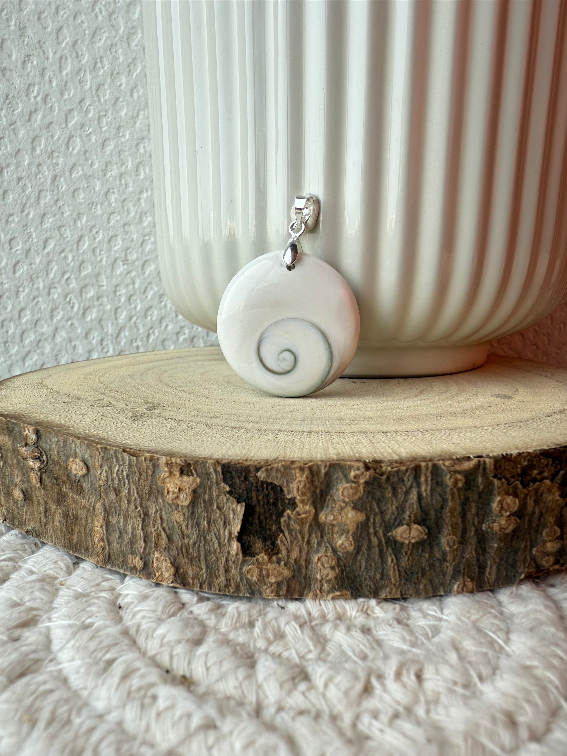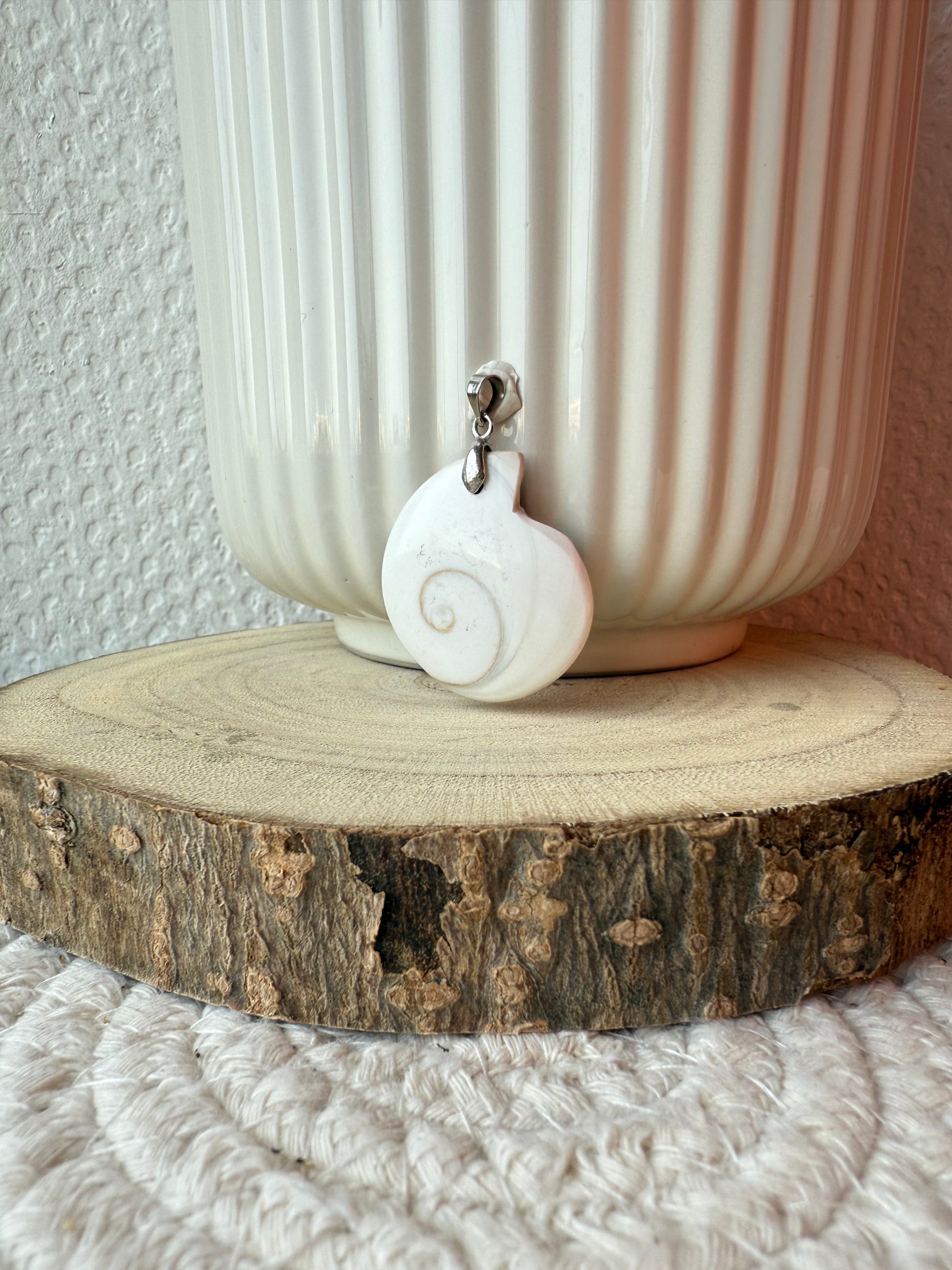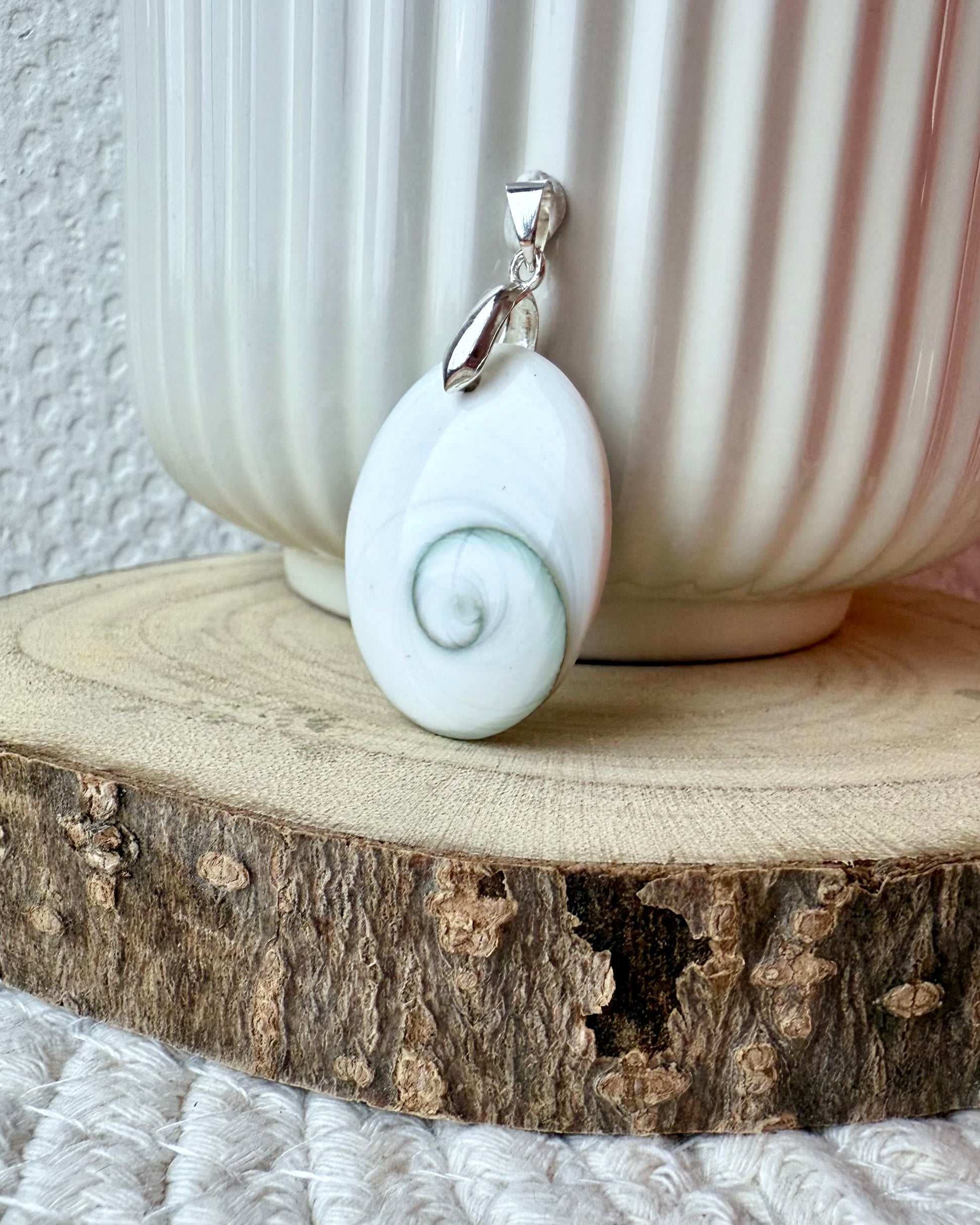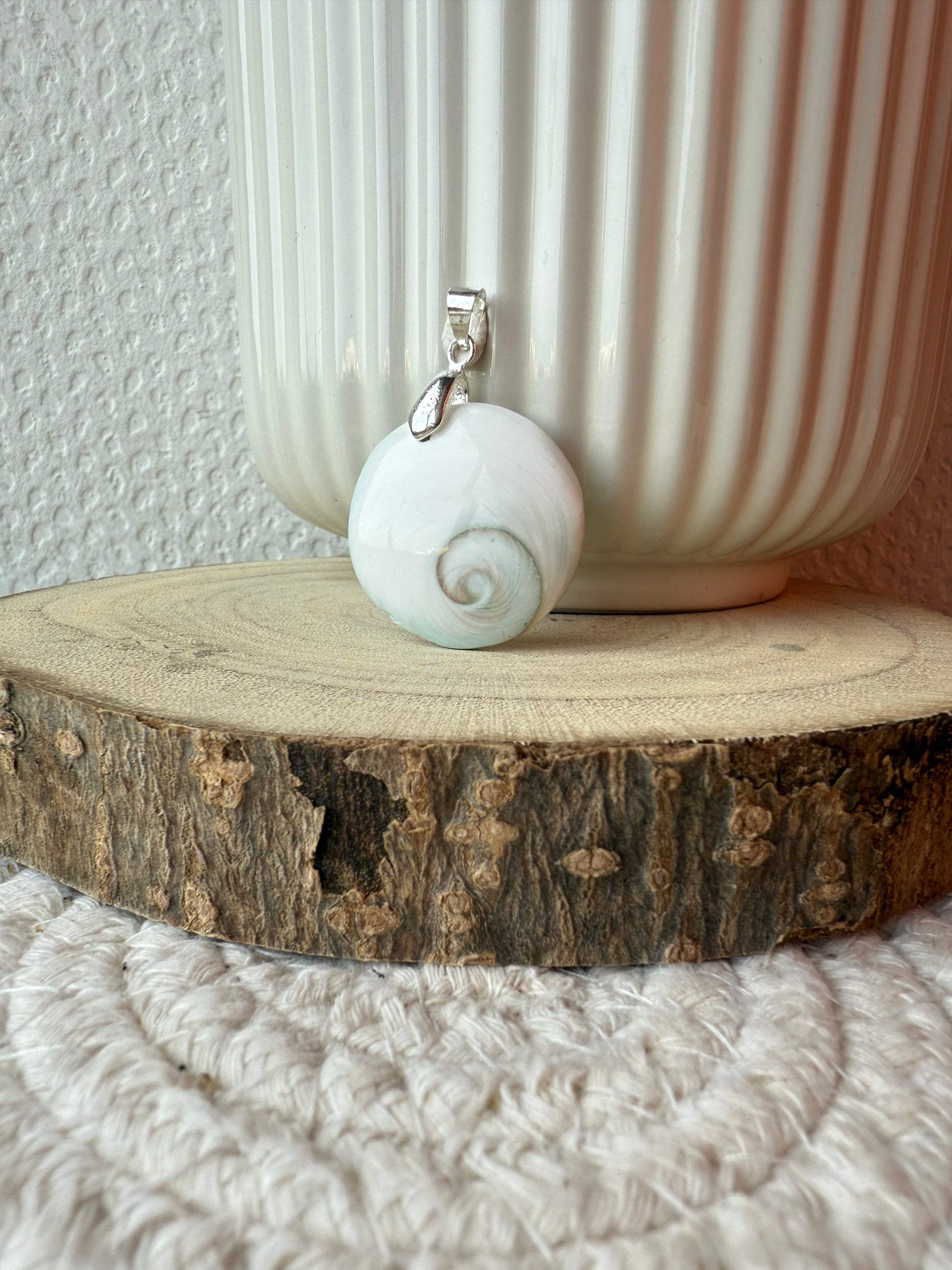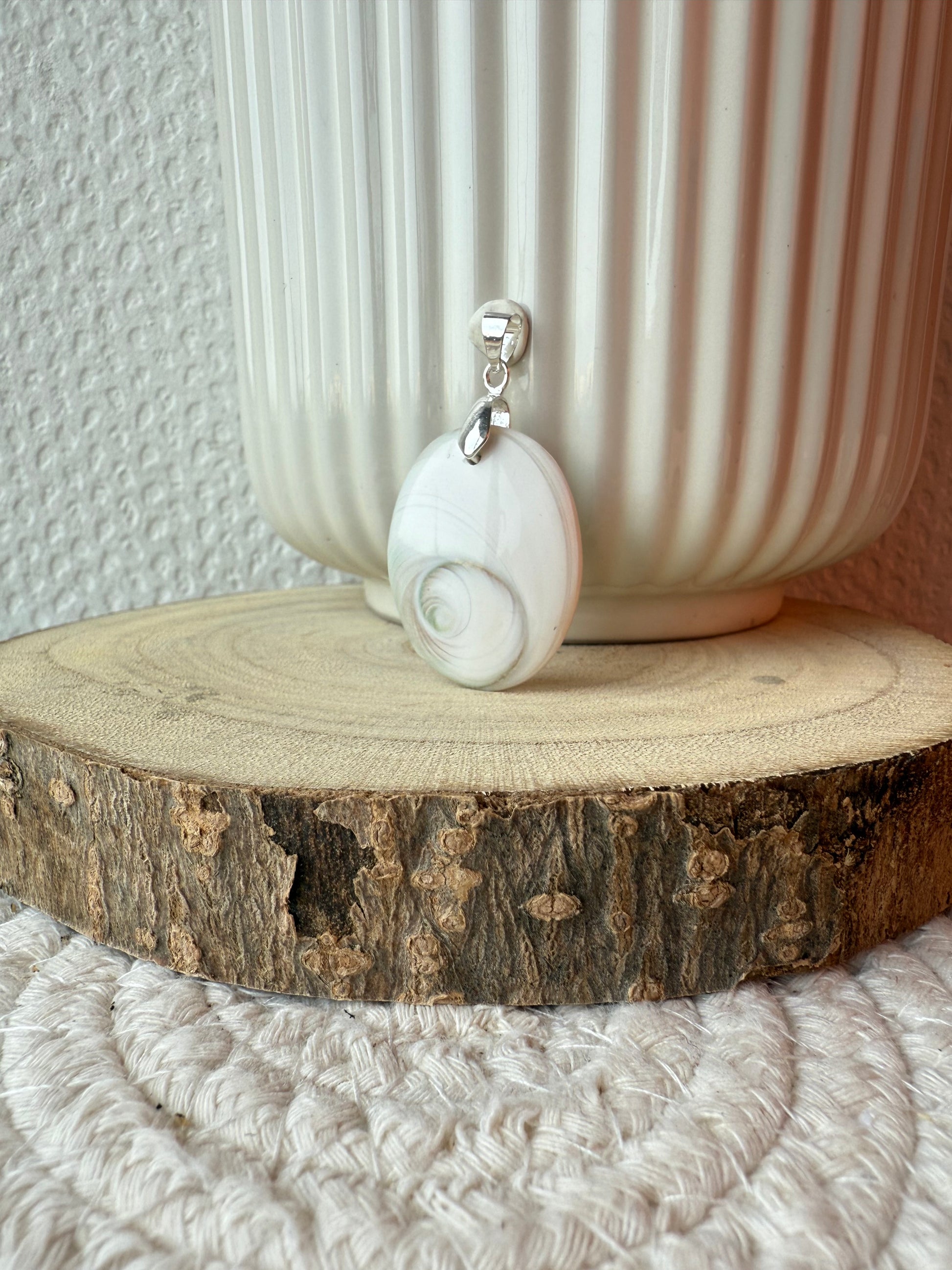 Pendentifs en coquillage œil de st Lucie et belliere acier inoxydable.