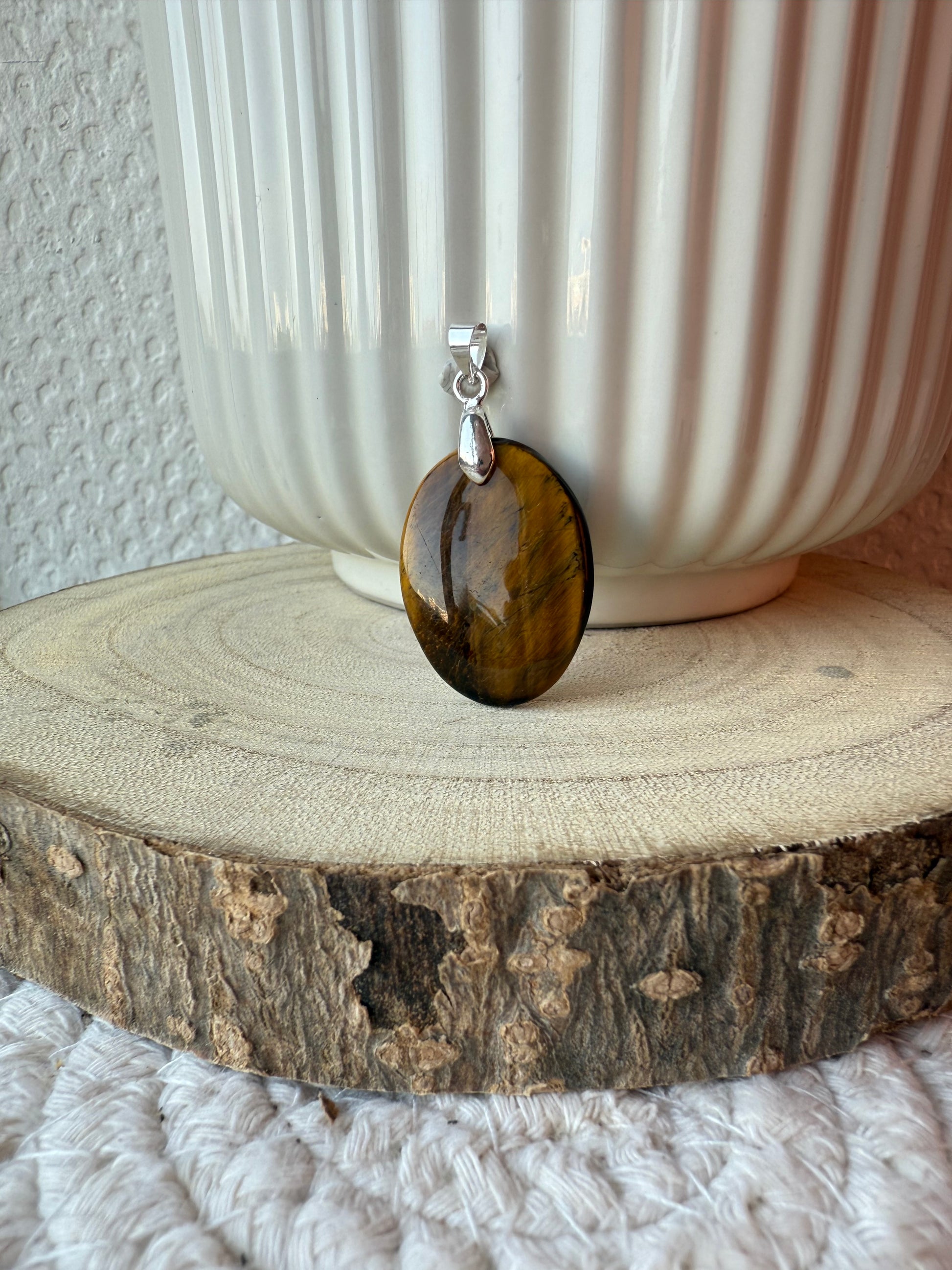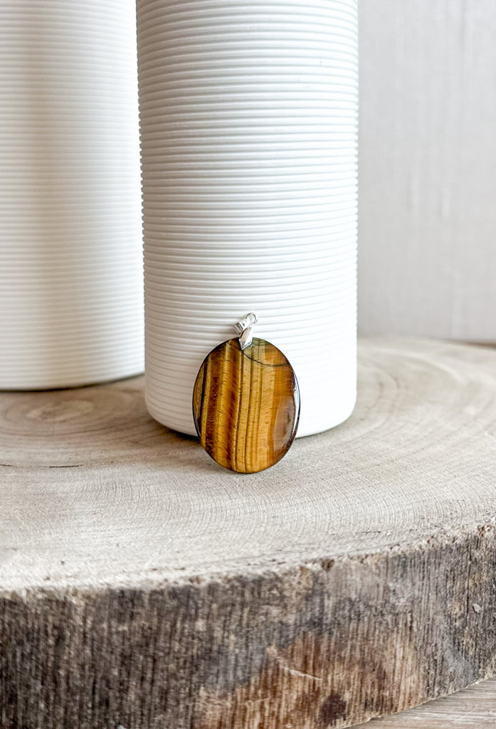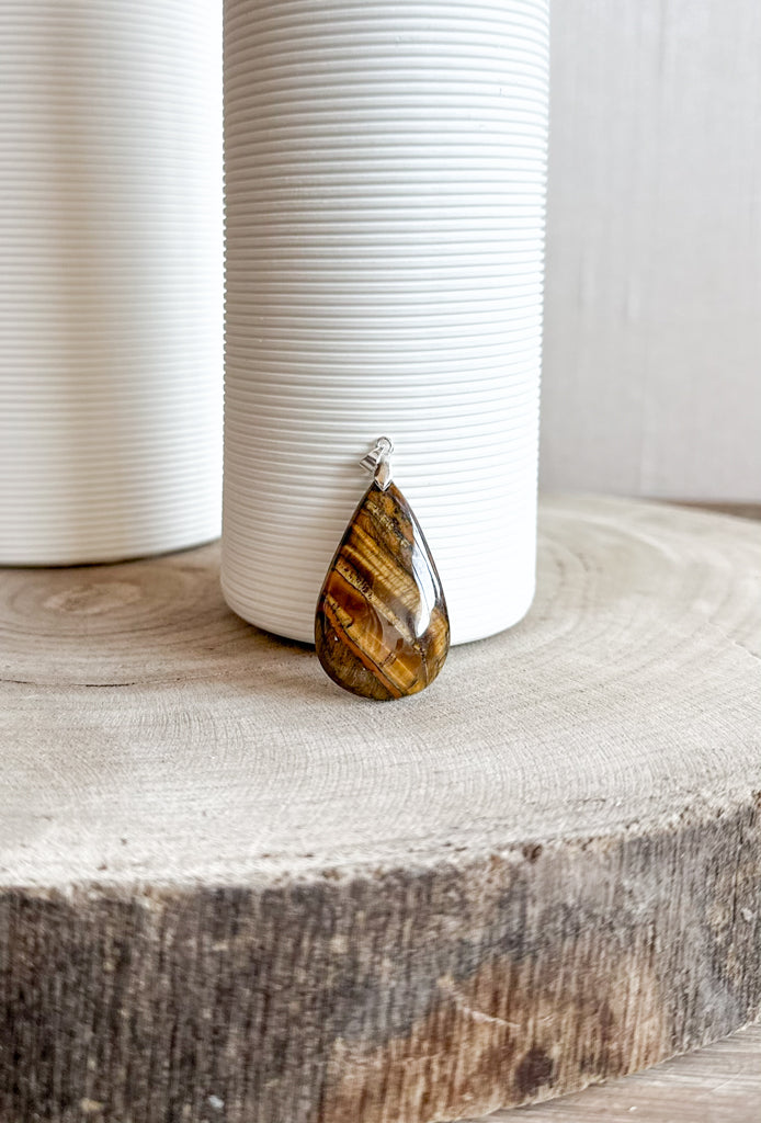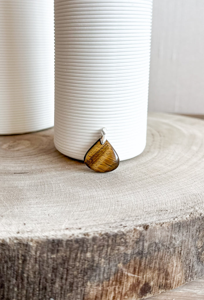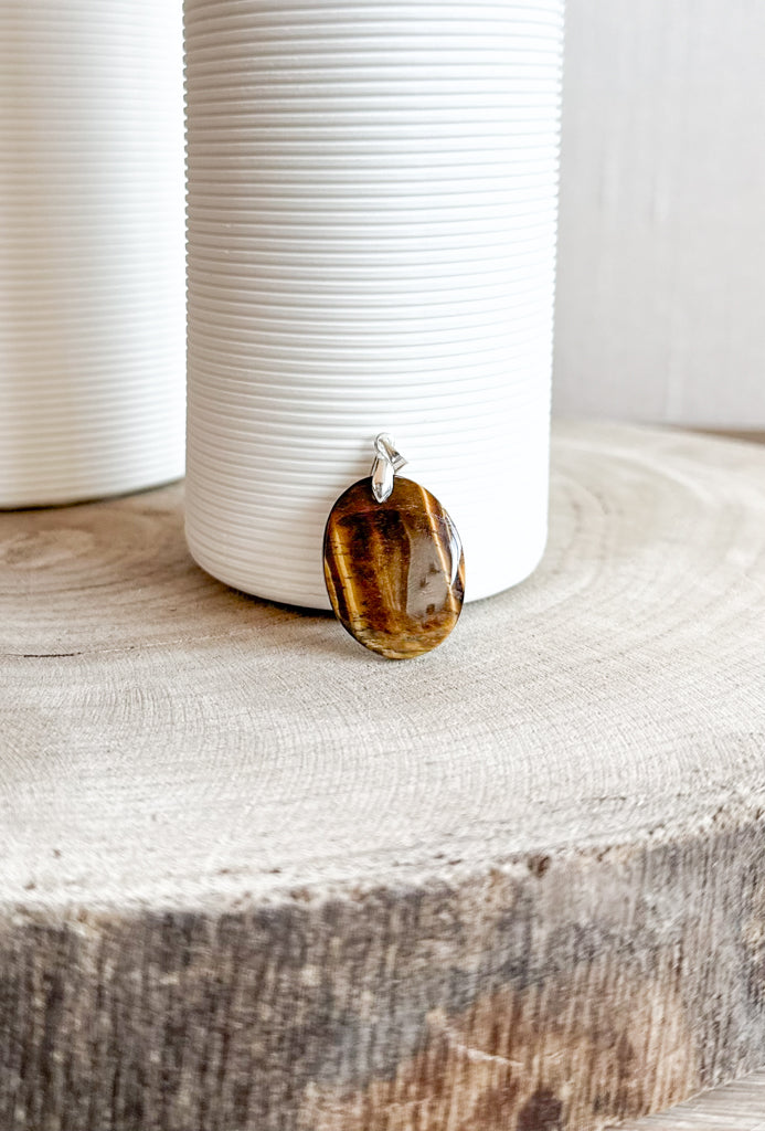 Pendentifs en pierres naturelles Œil de tigre et bélière acier inoxydable.