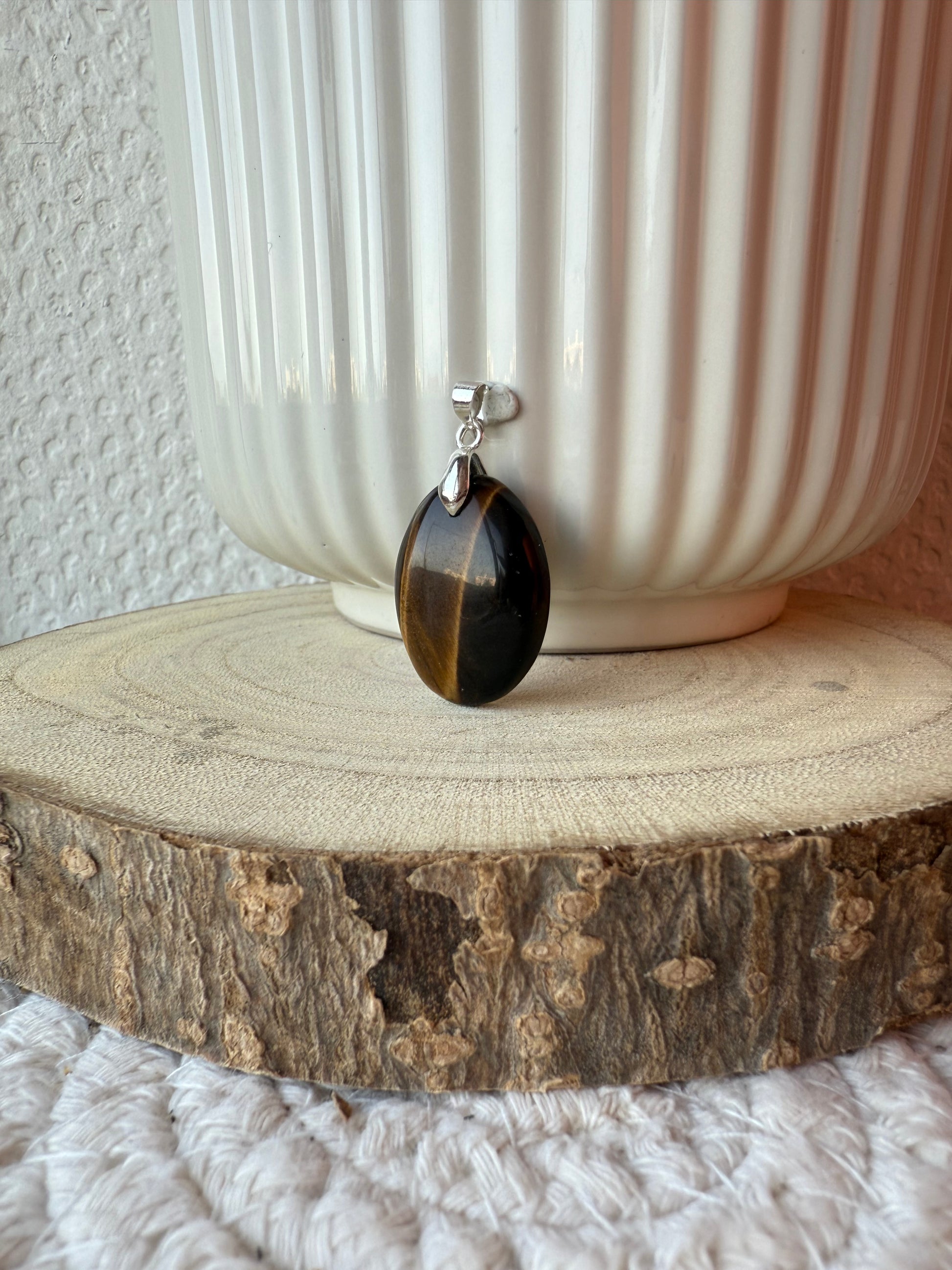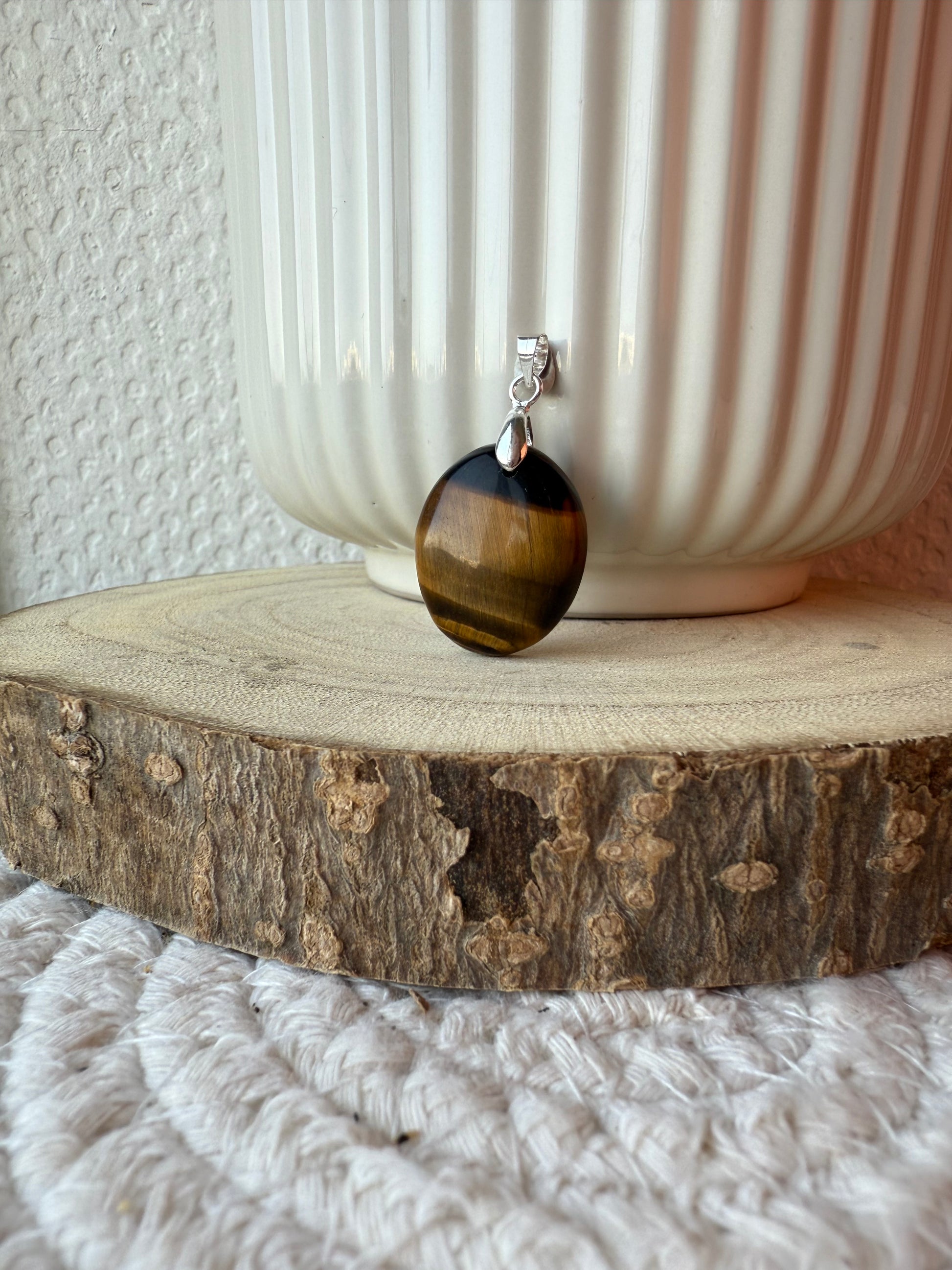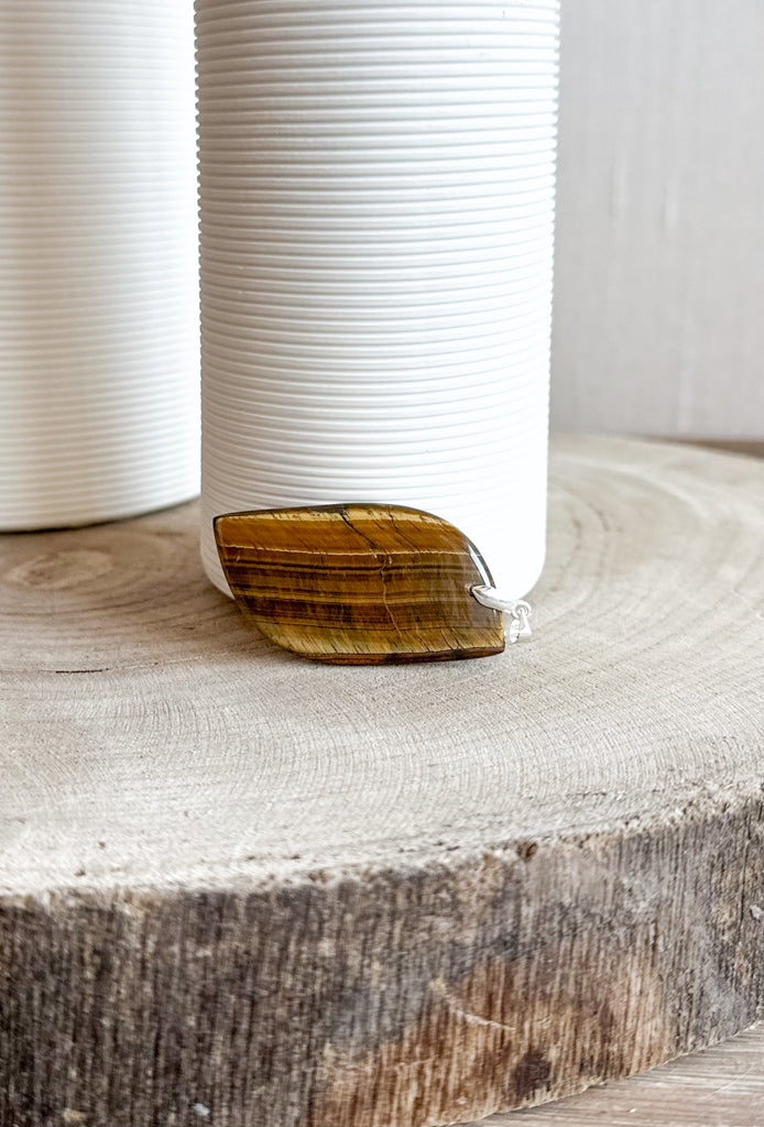 Pendentifs en pierres naturelles Œil de tigre et bélière acier inoxydable.