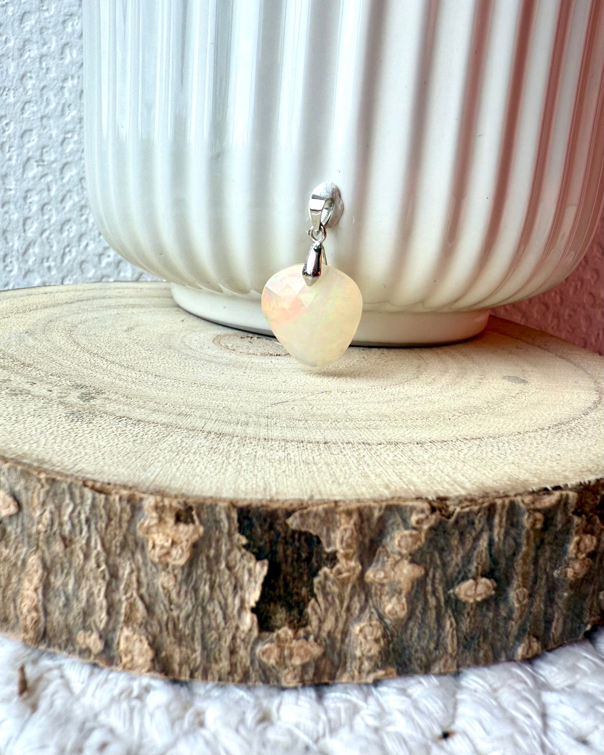 Pendentifs en pierres naturelles opale welo facetté et bélière acier inoxydable.