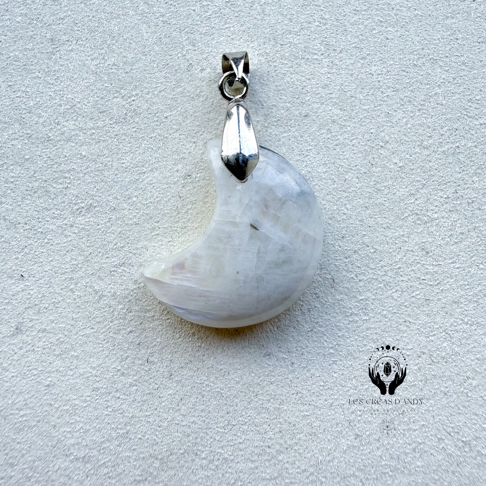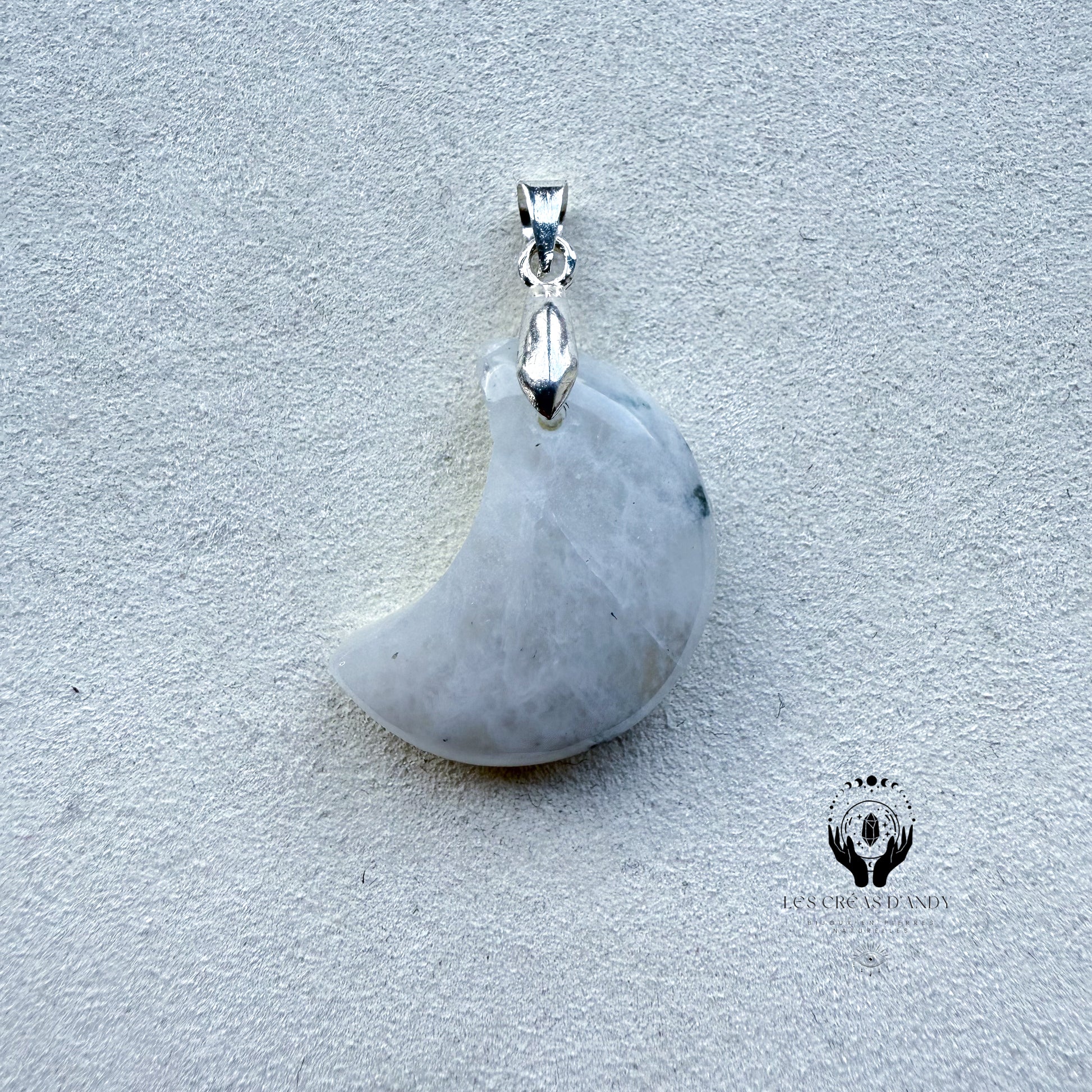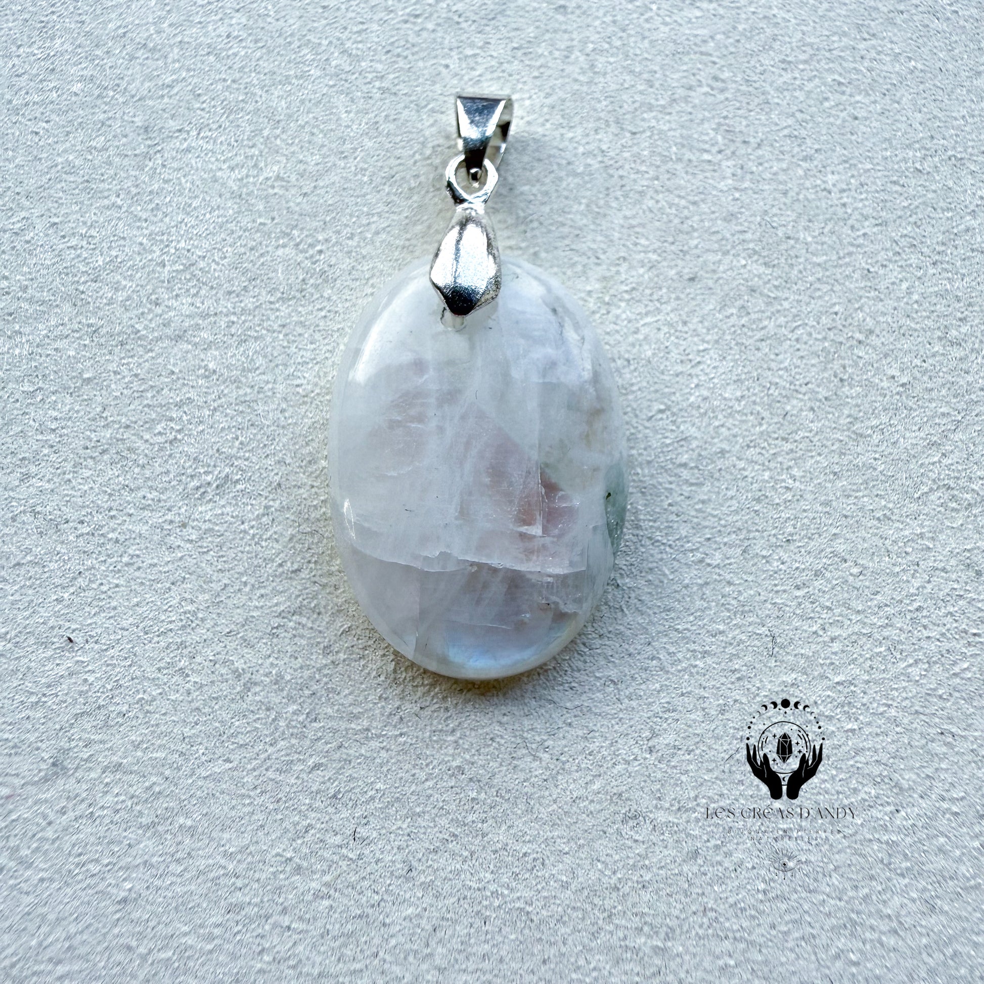 Pendentifs en pierres naturelles Peristerite et bélière acier inoxydable.
