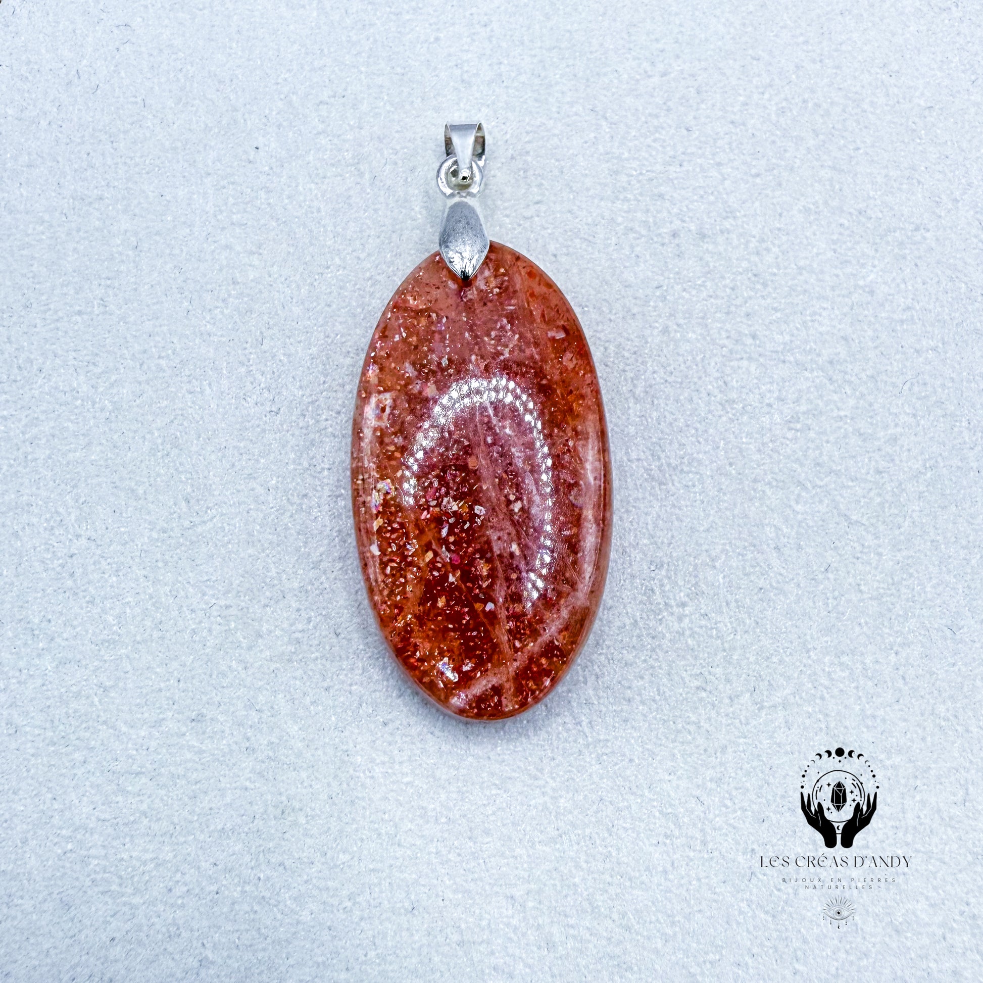 Pendentifs en pierres naturelles Pierre de soleil et bélière acier inoxydable.