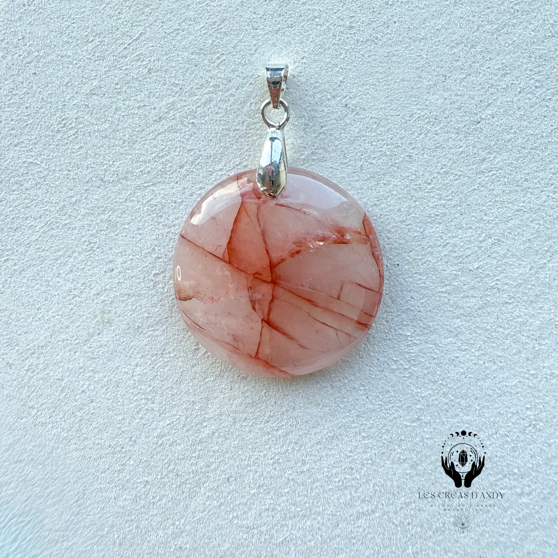 Pendentifs en pierres naturelles Quartz hematoïte et bélière acier inoxydable.