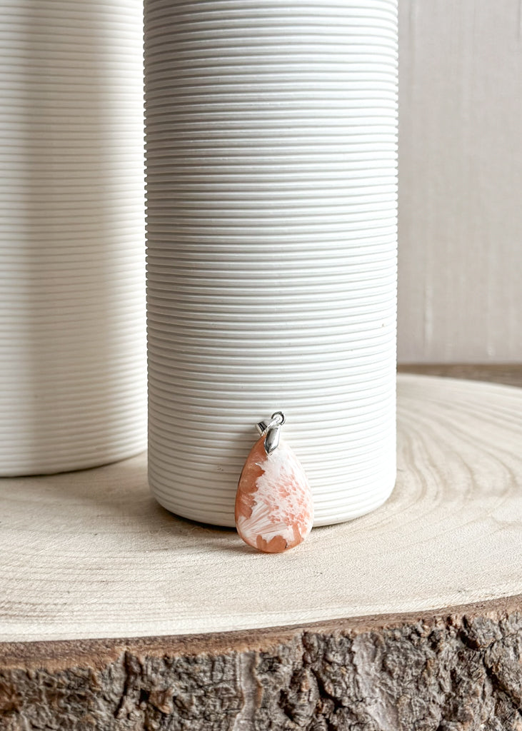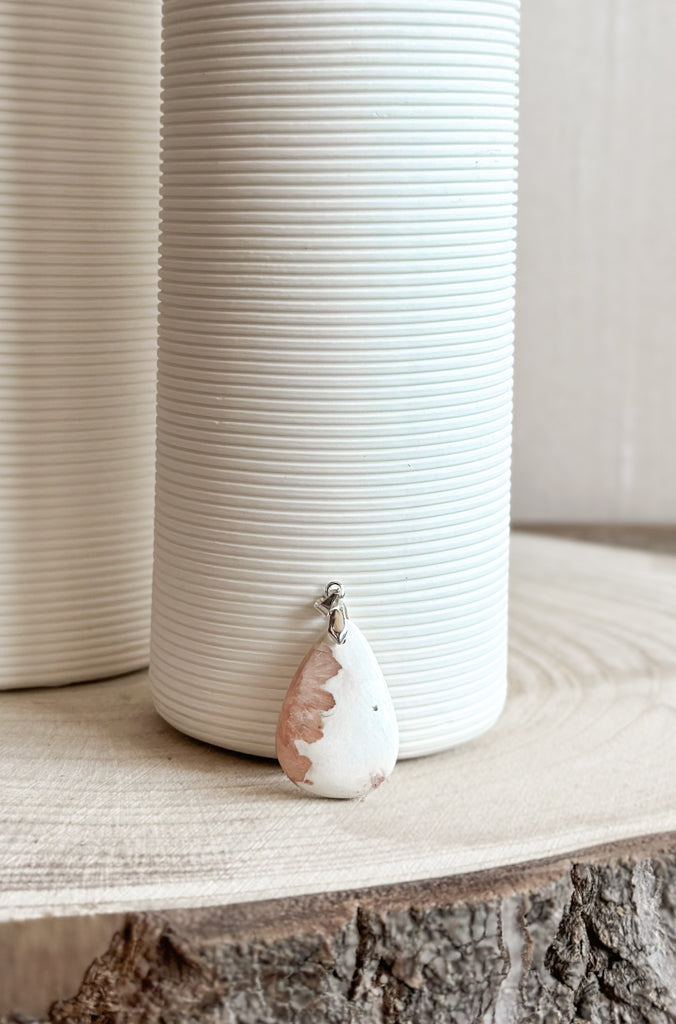 Pendentifs en pierres naturelles Scolecite rose et bélière en acier inoxydable.