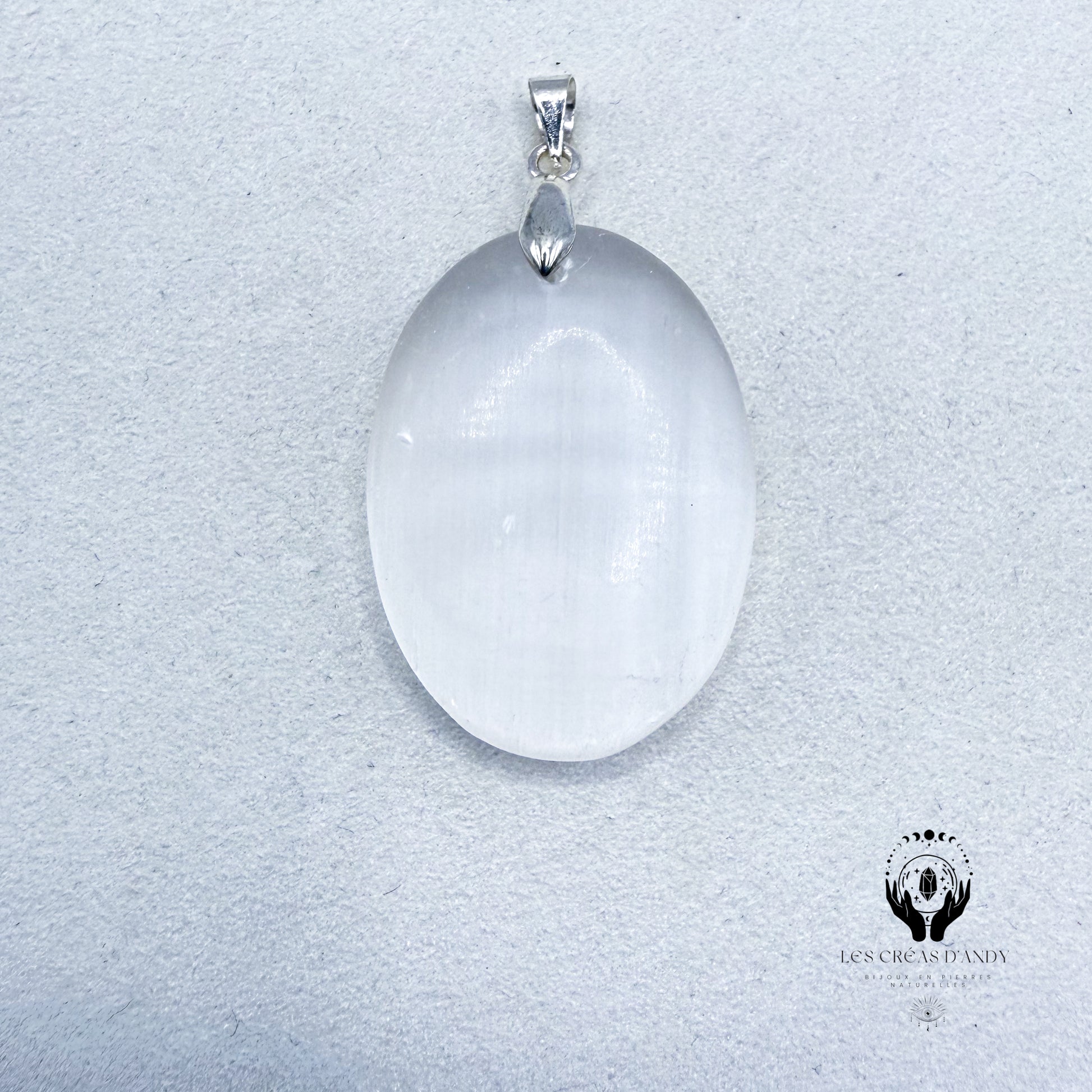 Pendentifs en pierres naturelles Sélénite et bélière acier inoxydable.