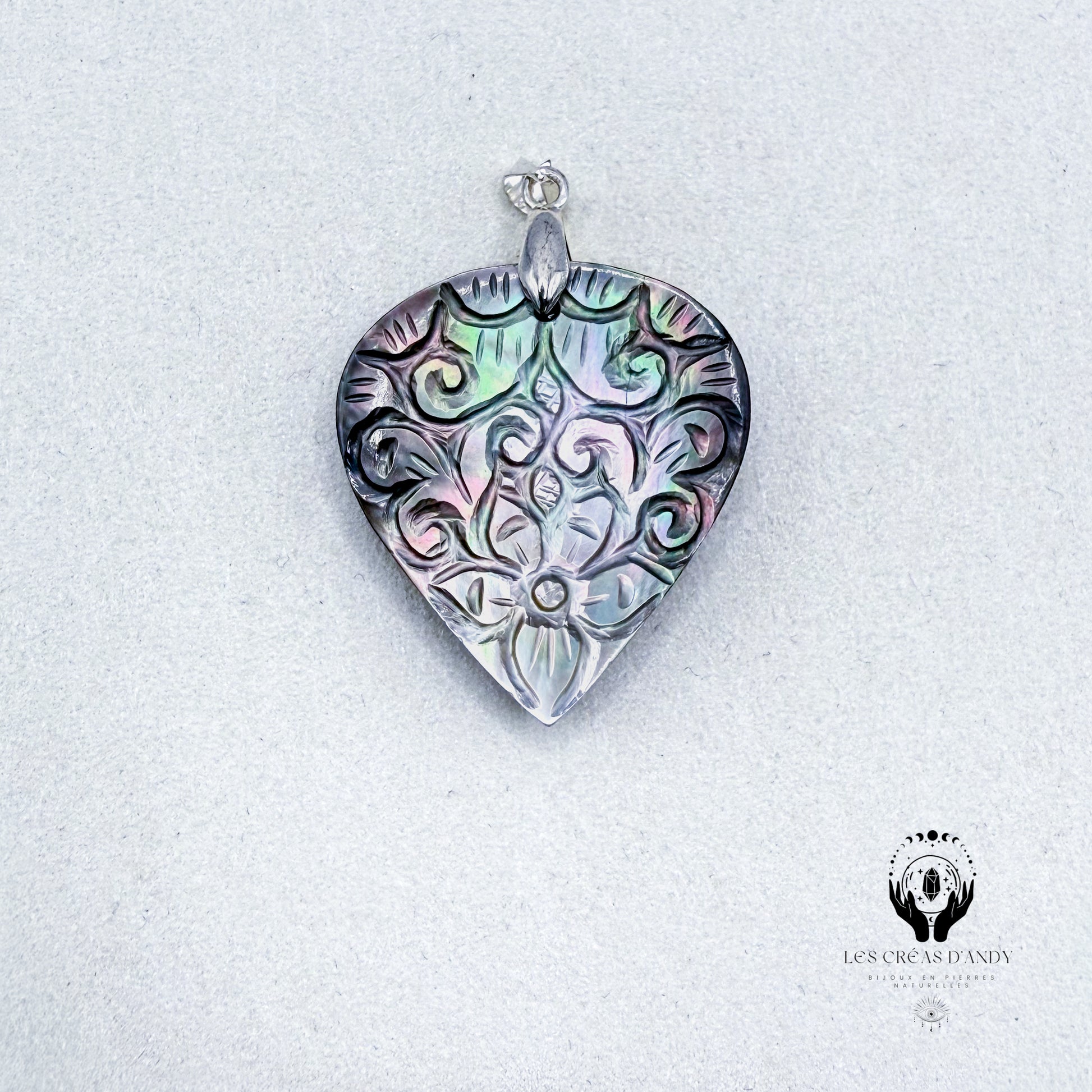 Pendentifs en pierres naturelles Abalone et bélière acier inoxydable.