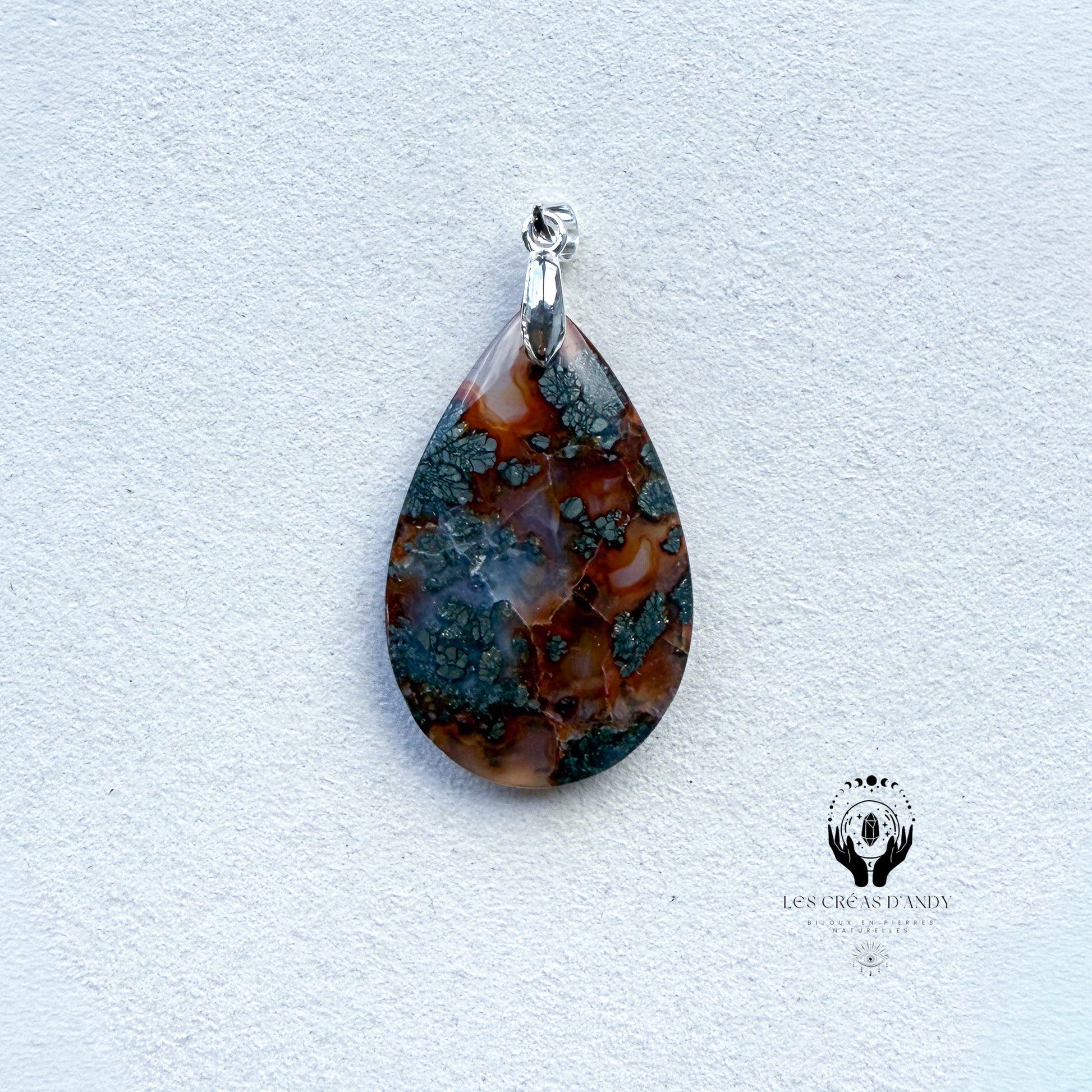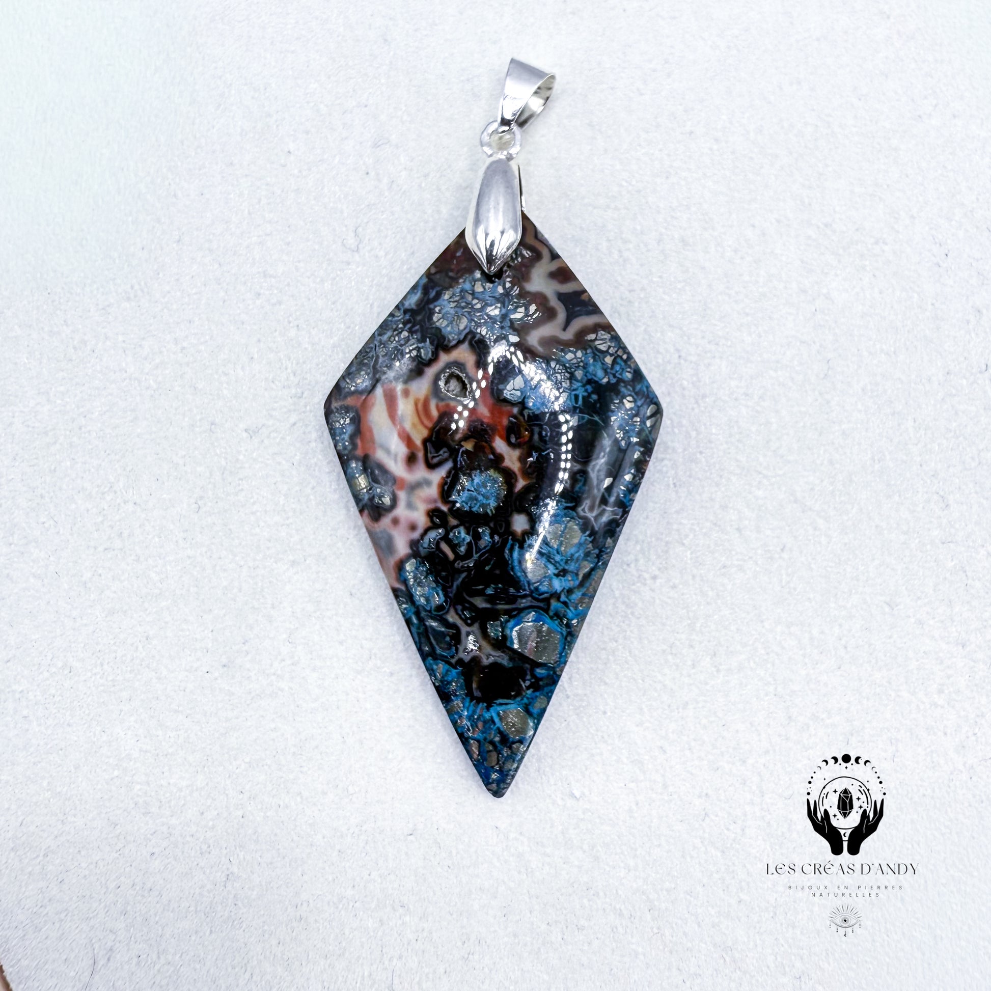 Pendentifs en pierres naturelles Agate à Marcassite et bélière acier inoxydable.