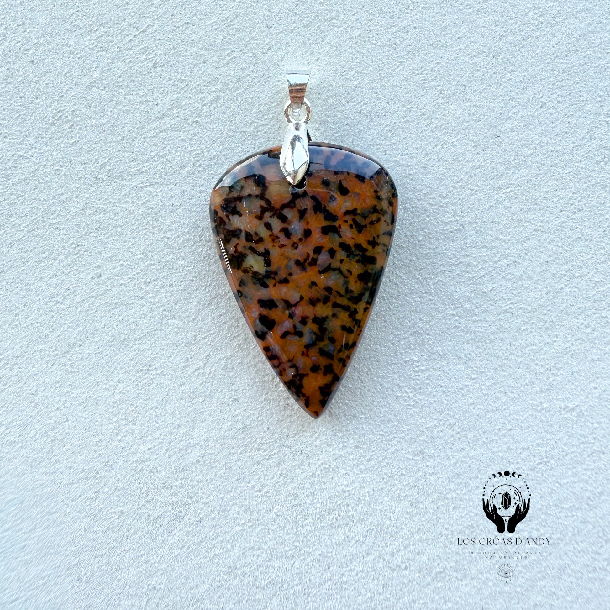 Pendentifs en pierres naturelles Agate Cheetah et bélière acier inoxydable.
