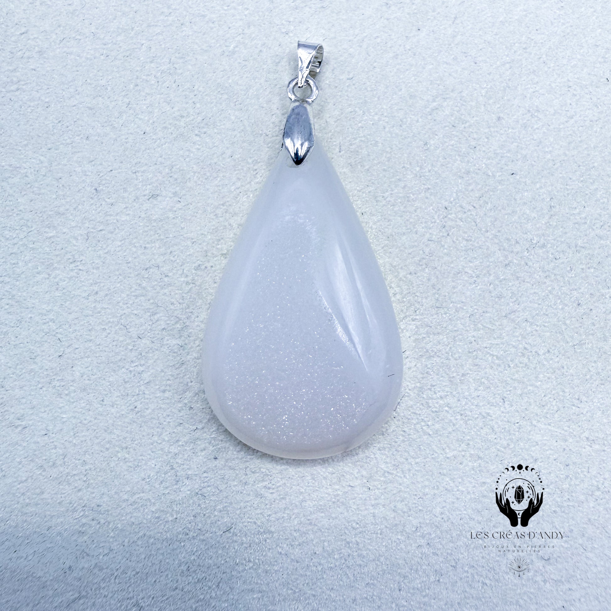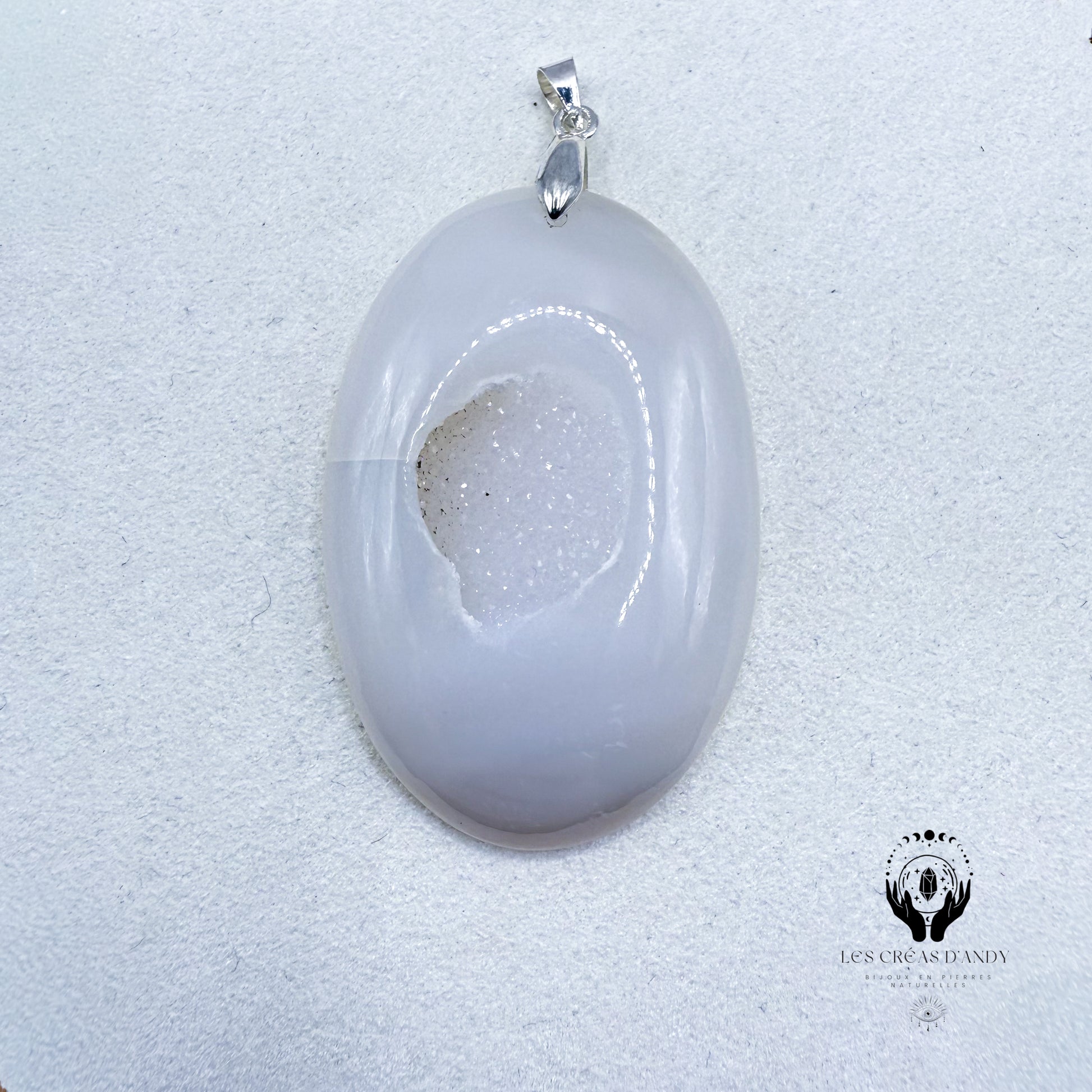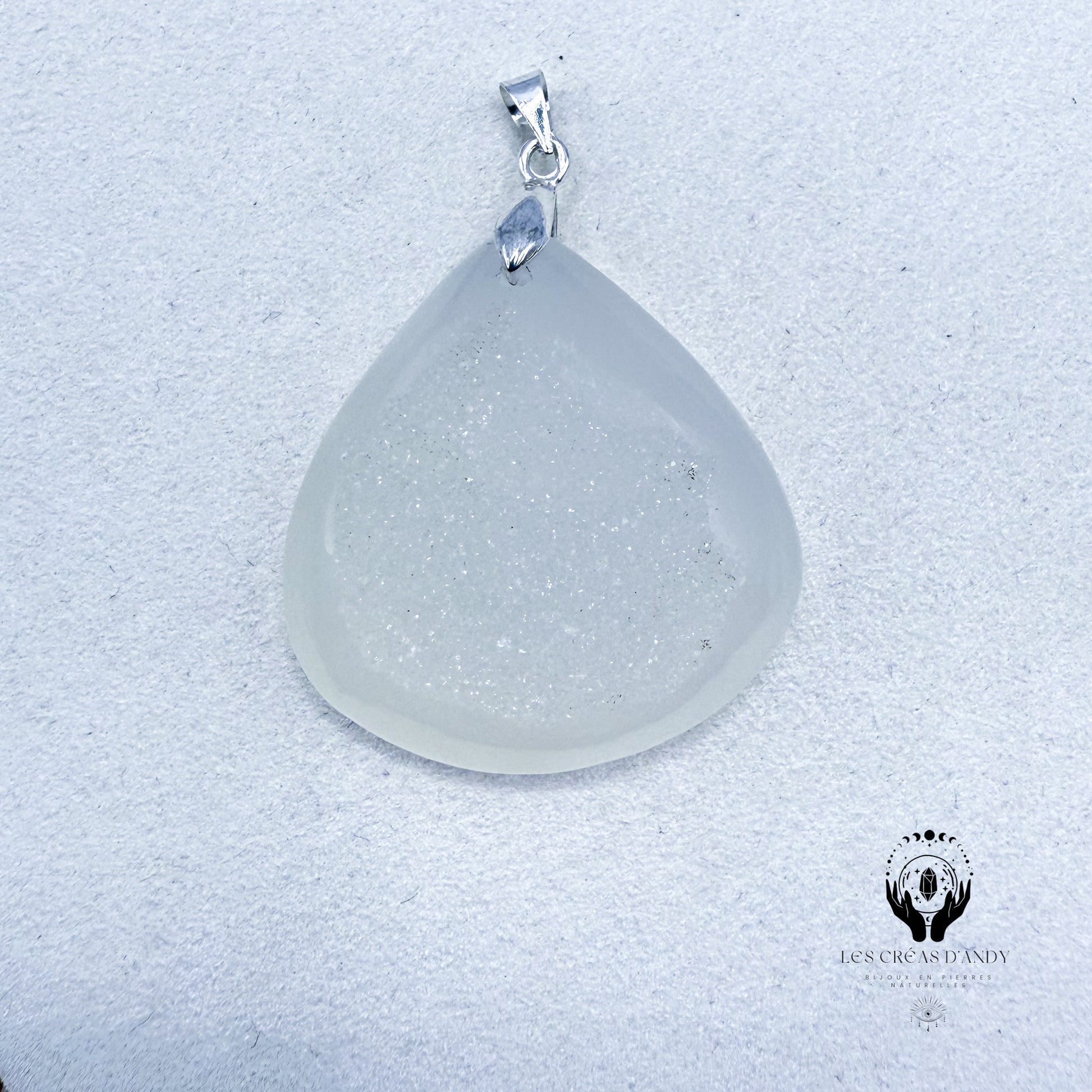 Pendentifs en pierres naturelles Agate druzy blanche et bélière acier inoxydable.