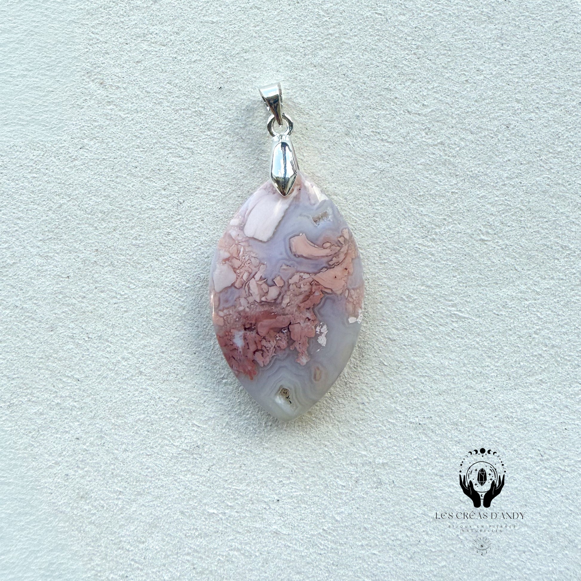 Pendentifs en pierres naturelles Agate rose (Cotton candy) et bélière acier inoxydable.