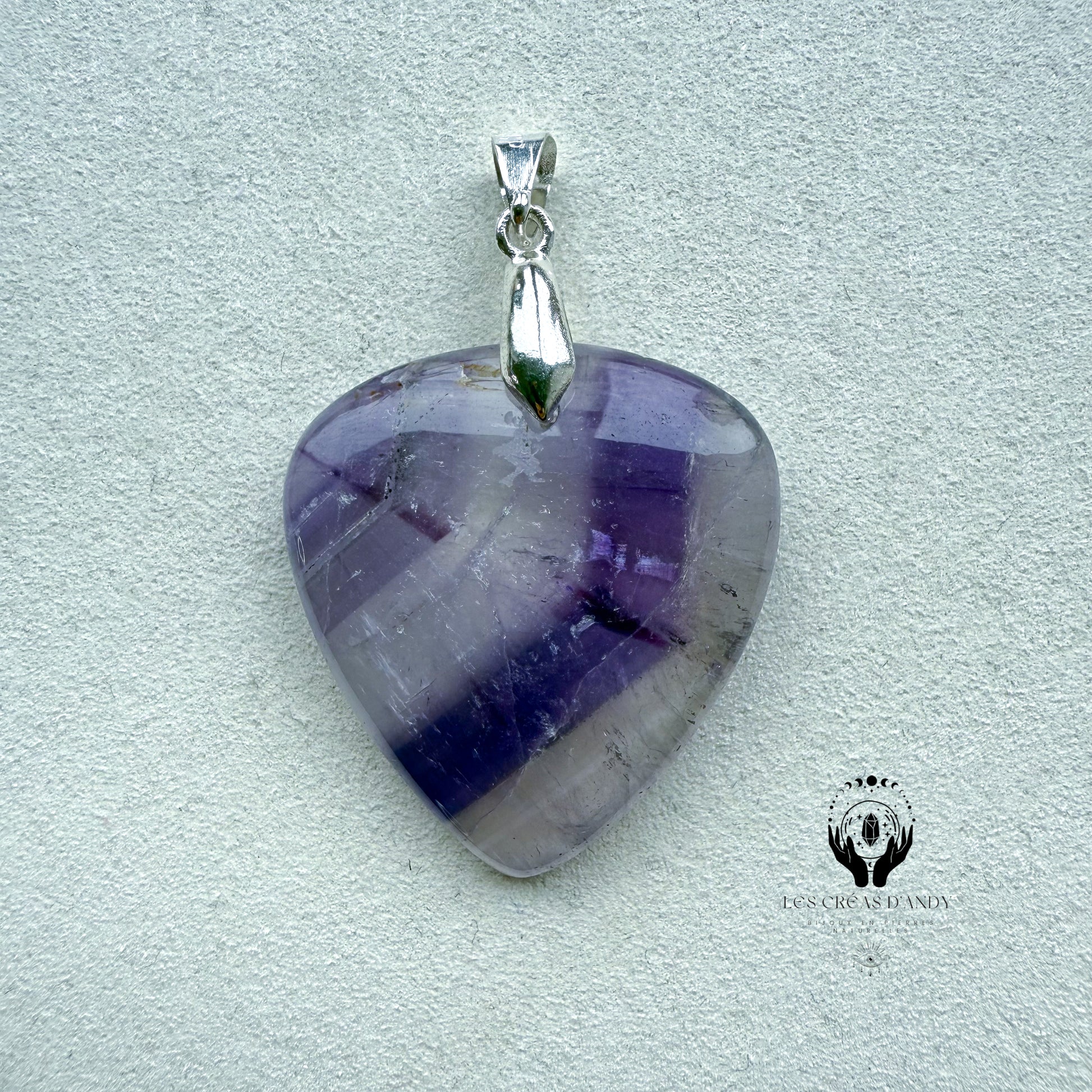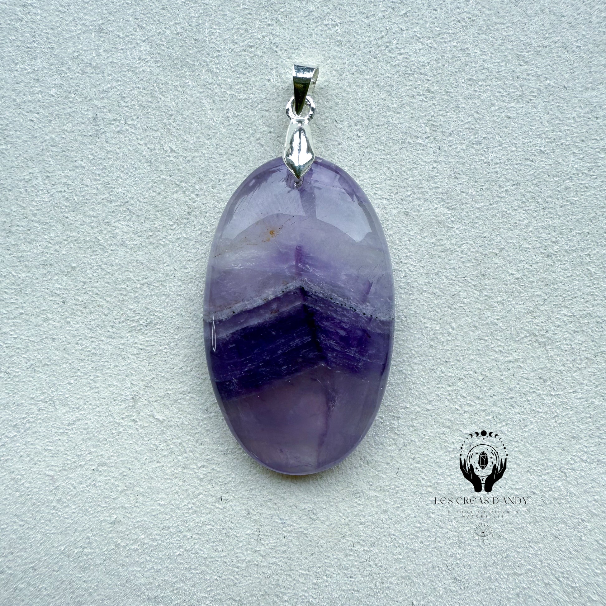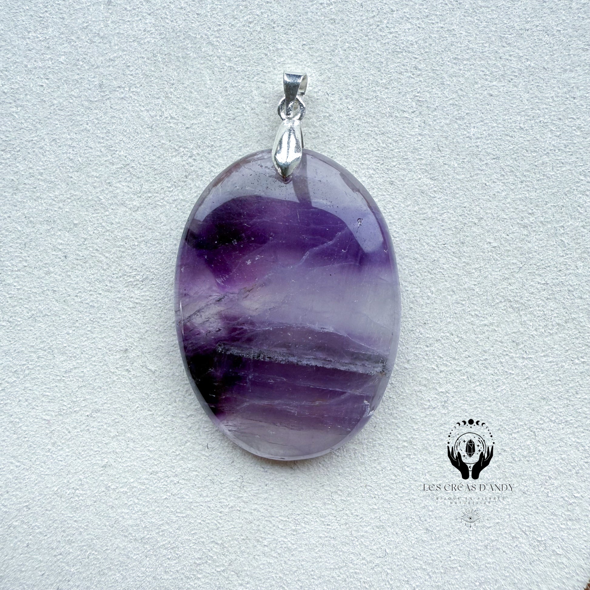 Pendentifs en pierres naturelles Améthyste sur quartz et bélière acier inoxydable.