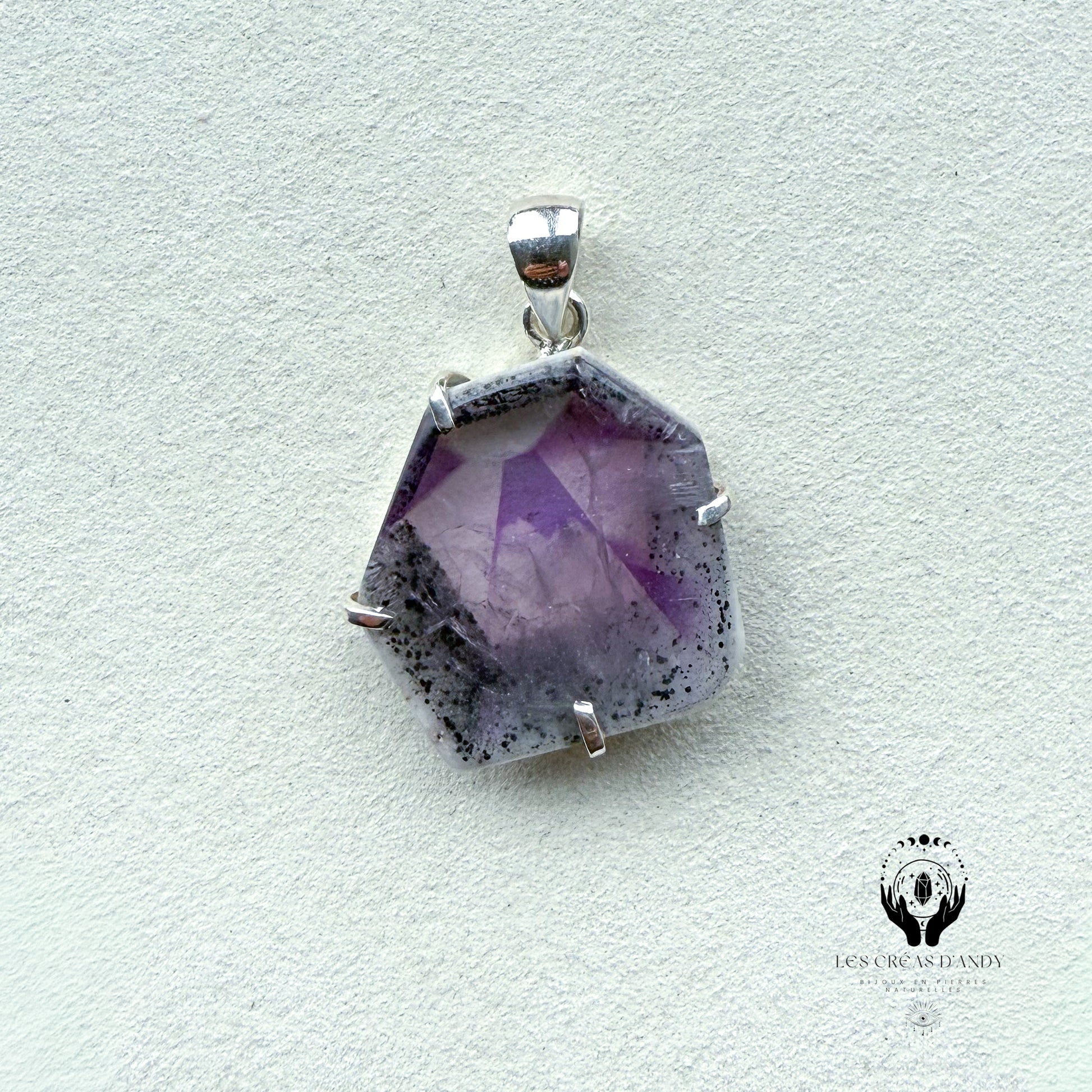 Pendentifs en pierres naturelles Amethyste trapiche sertie griffe en argent 925