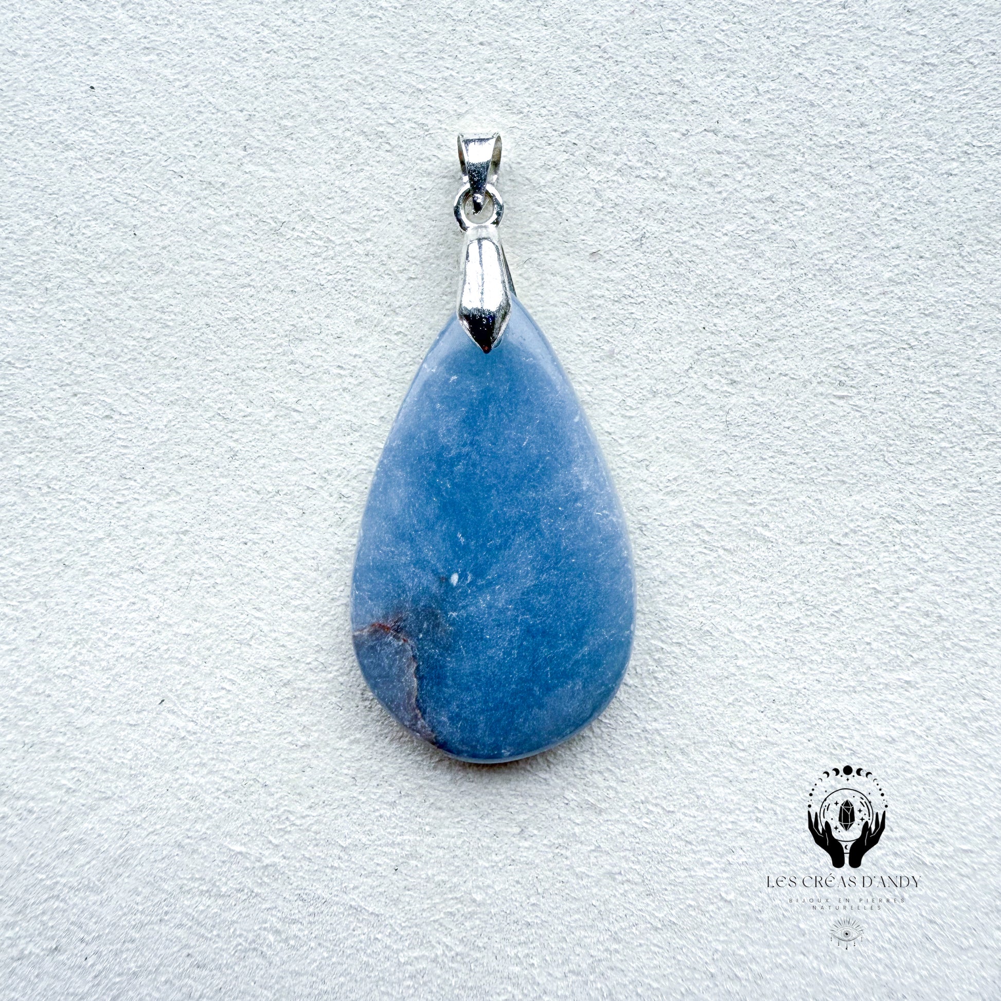 Pendentifs en pierres naturelles Angélite et bélière acier inoxydable.