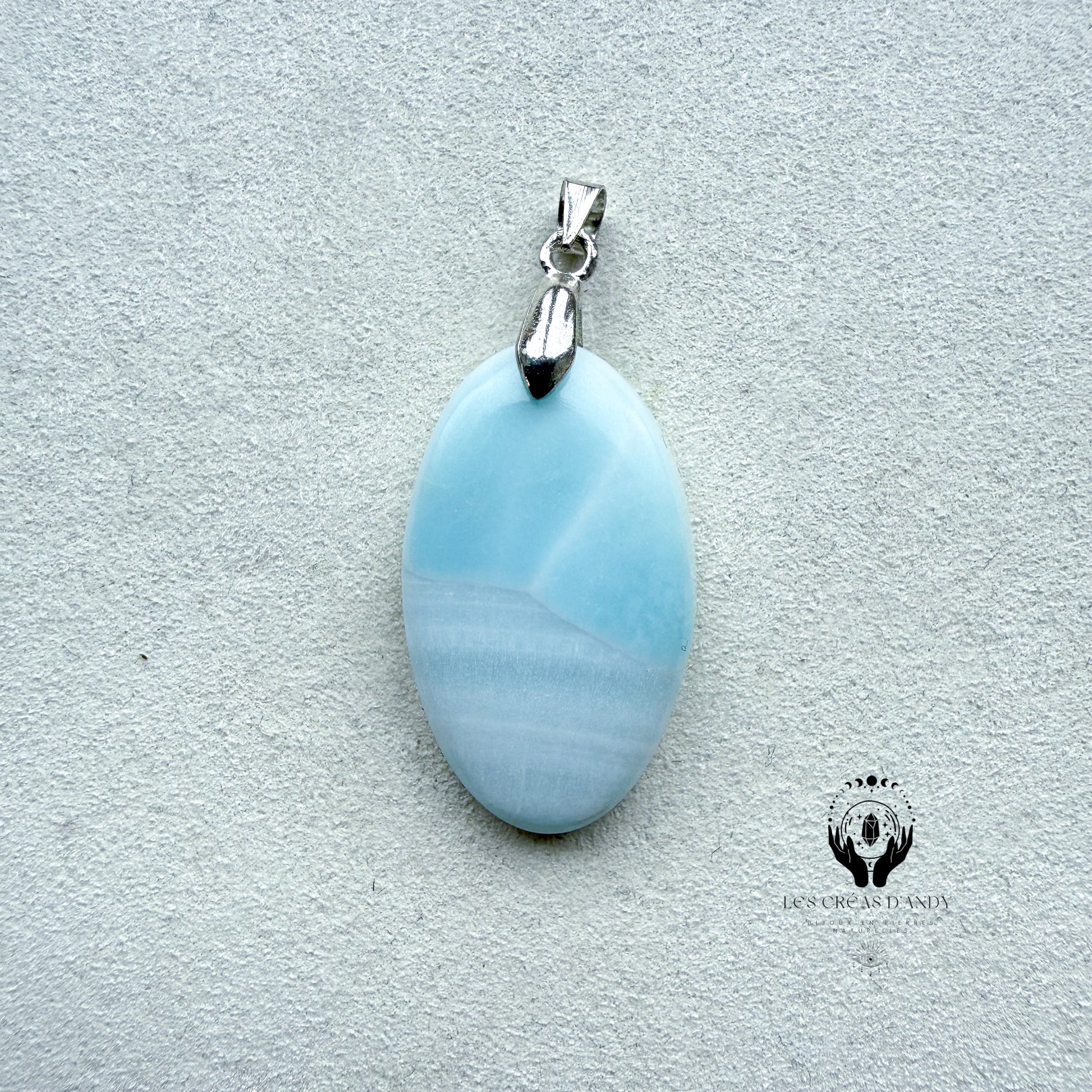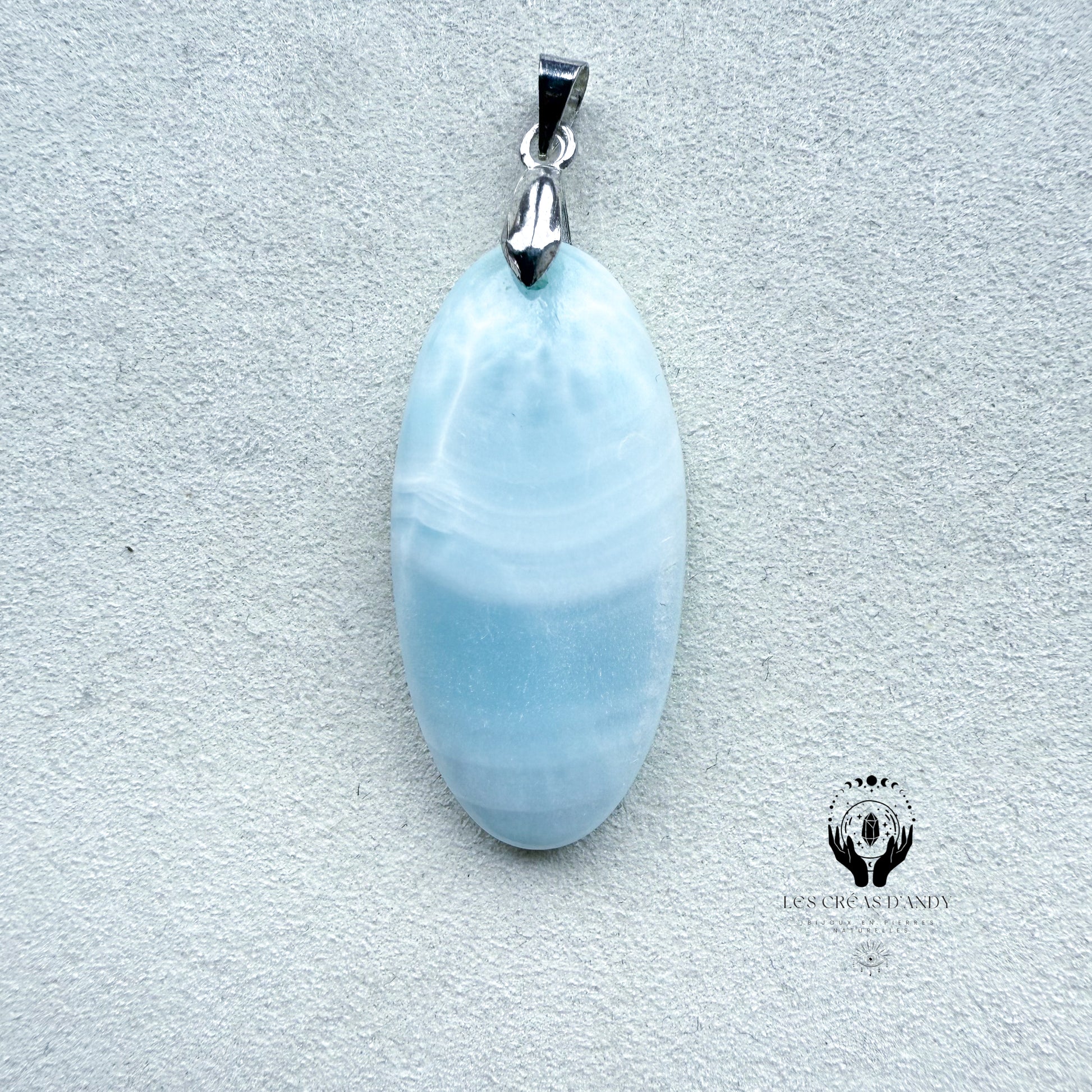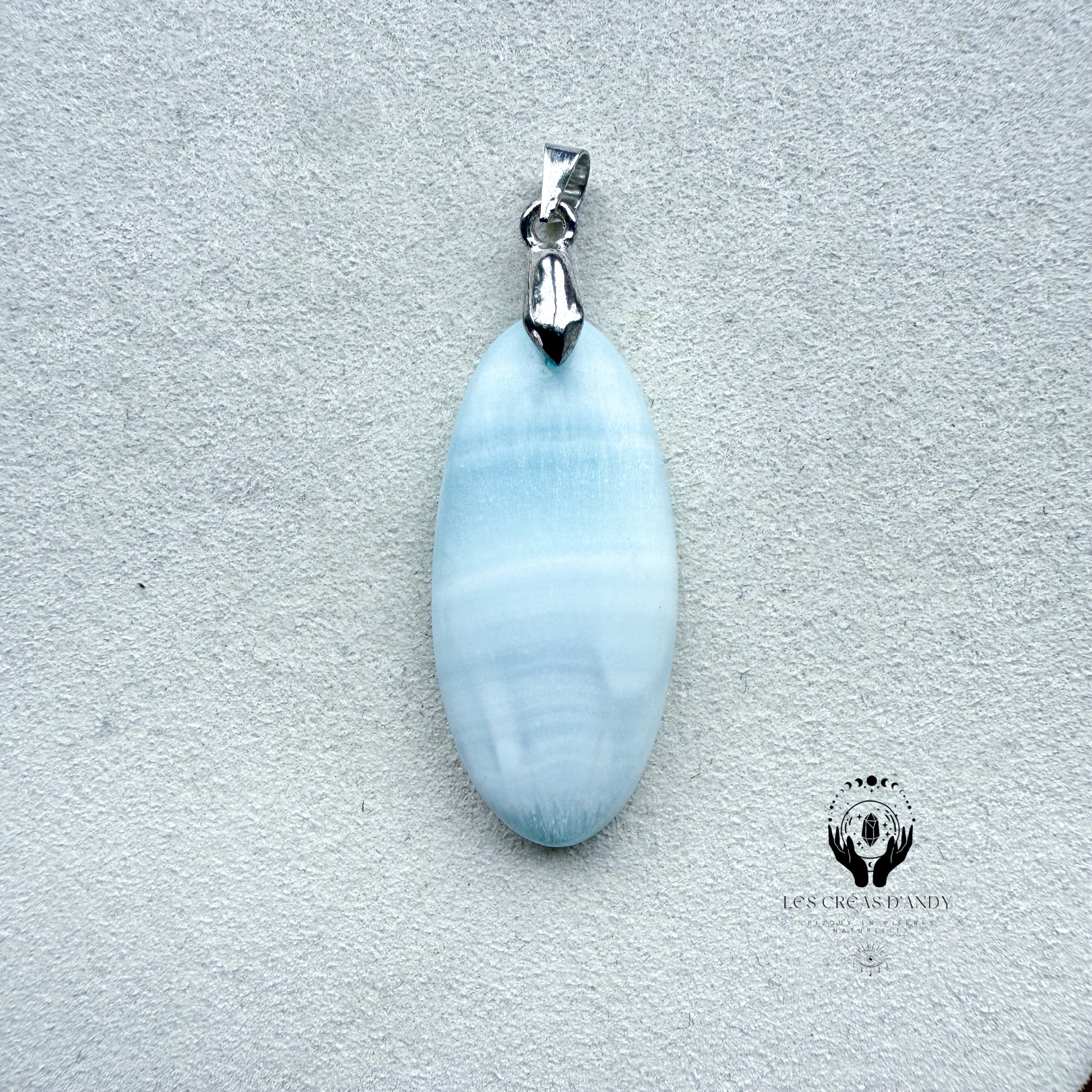 Pendentifs en pierres naturelles Aragonite bleue et bélière acier inoxydable.
