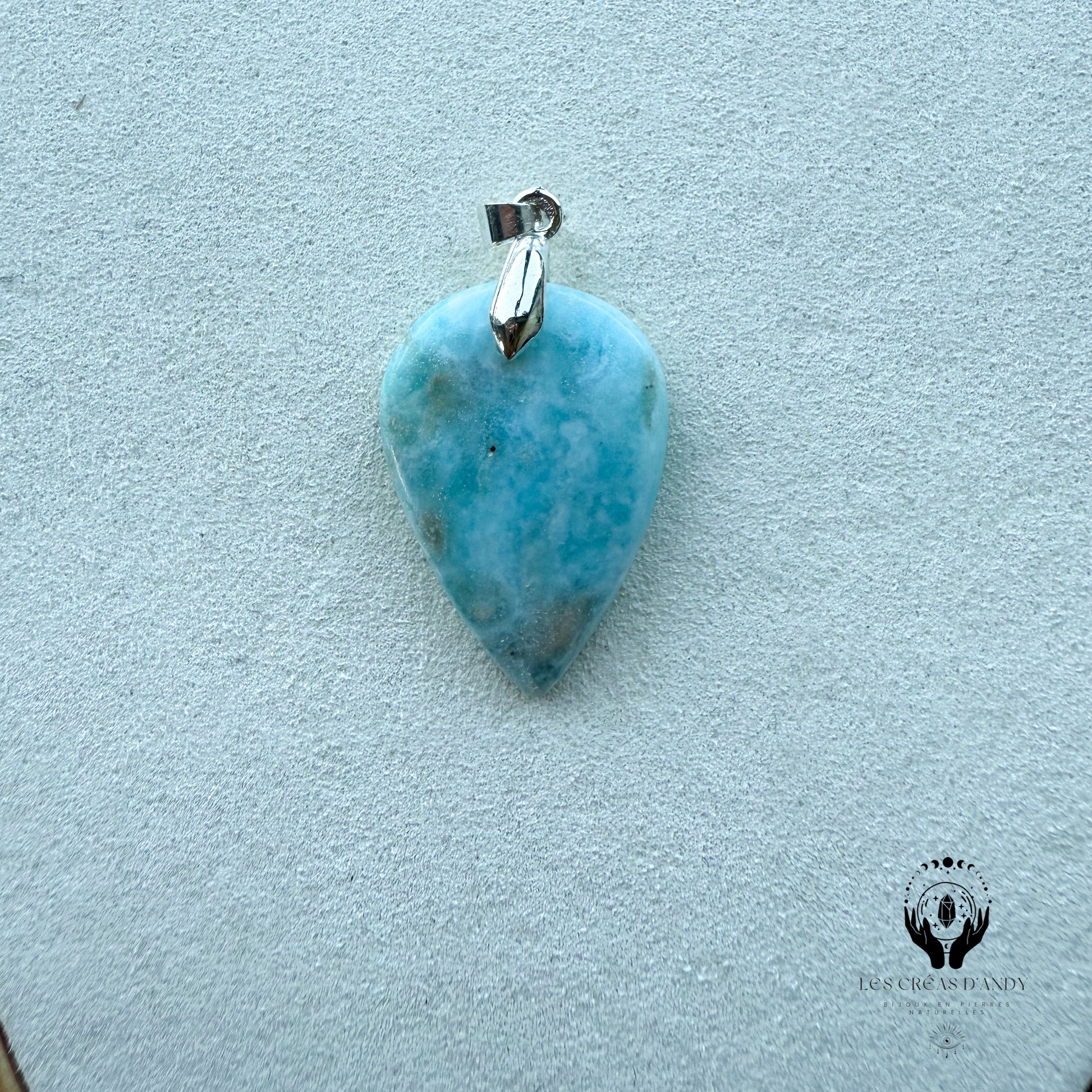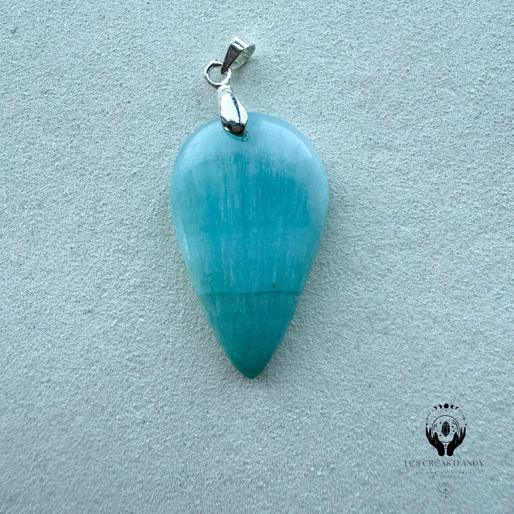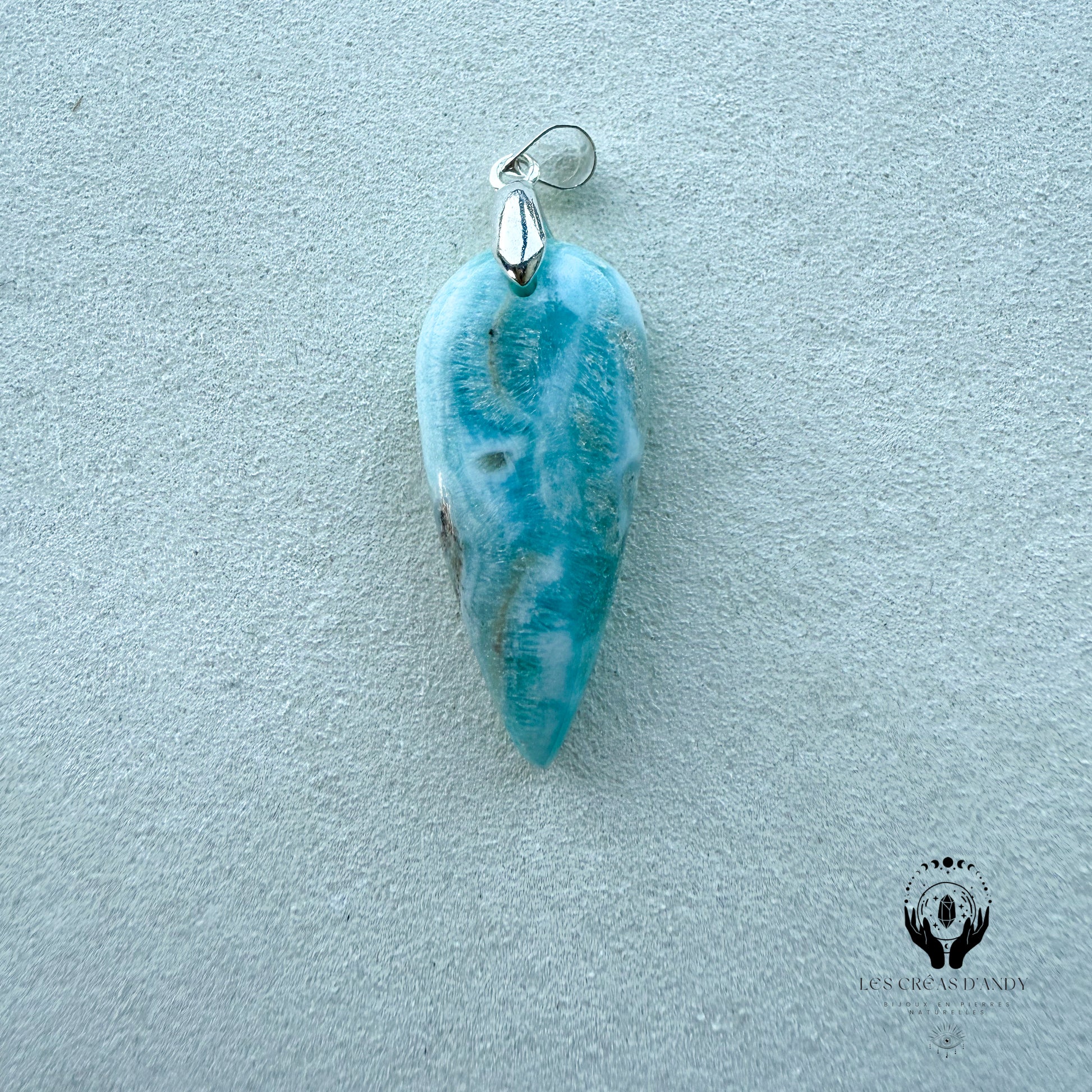 Pendentifs en pierres naturelles Aragonite bleue et bélière acier inoxydable.