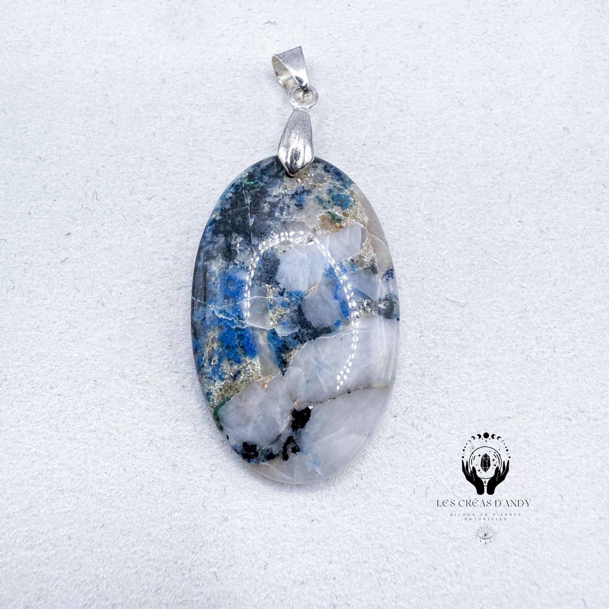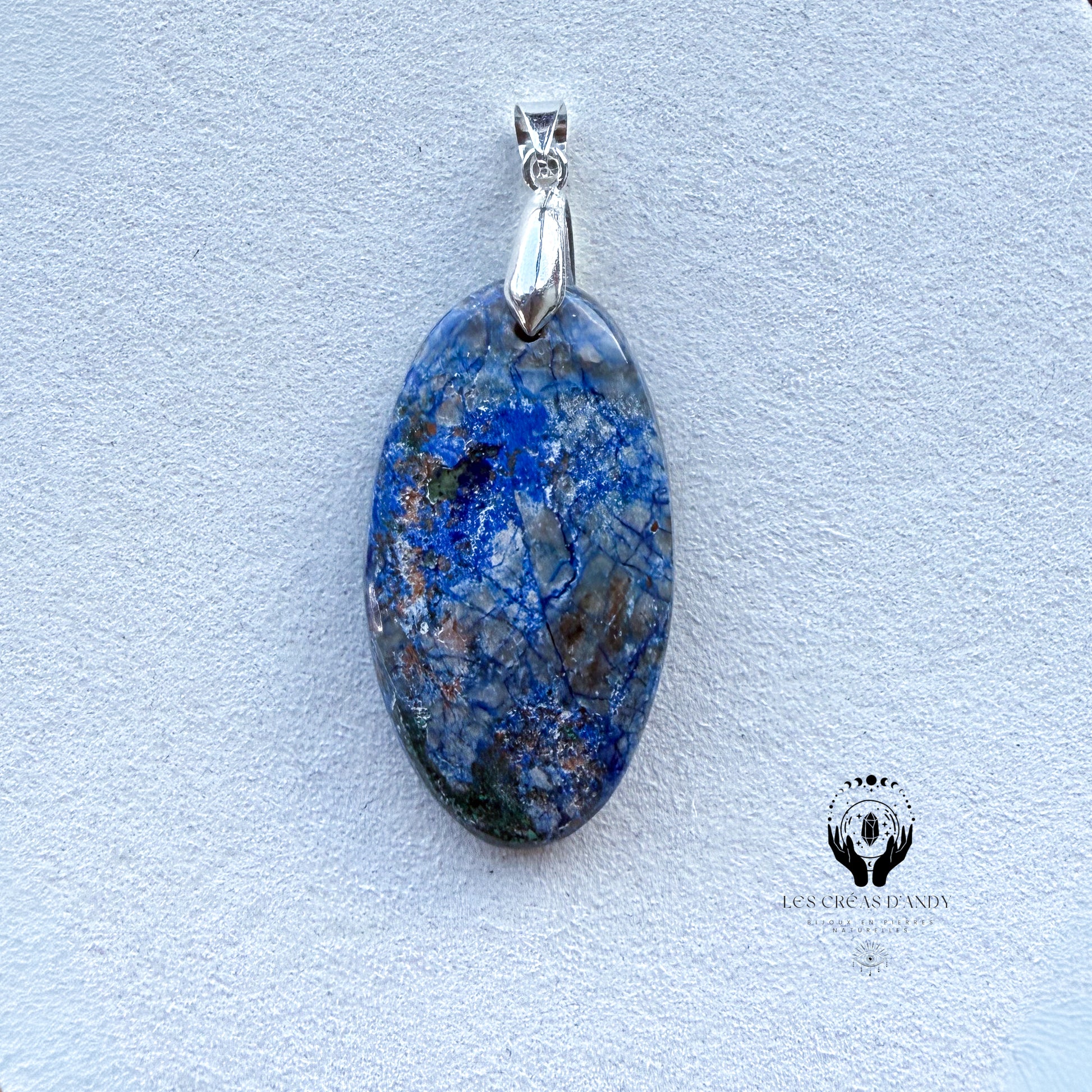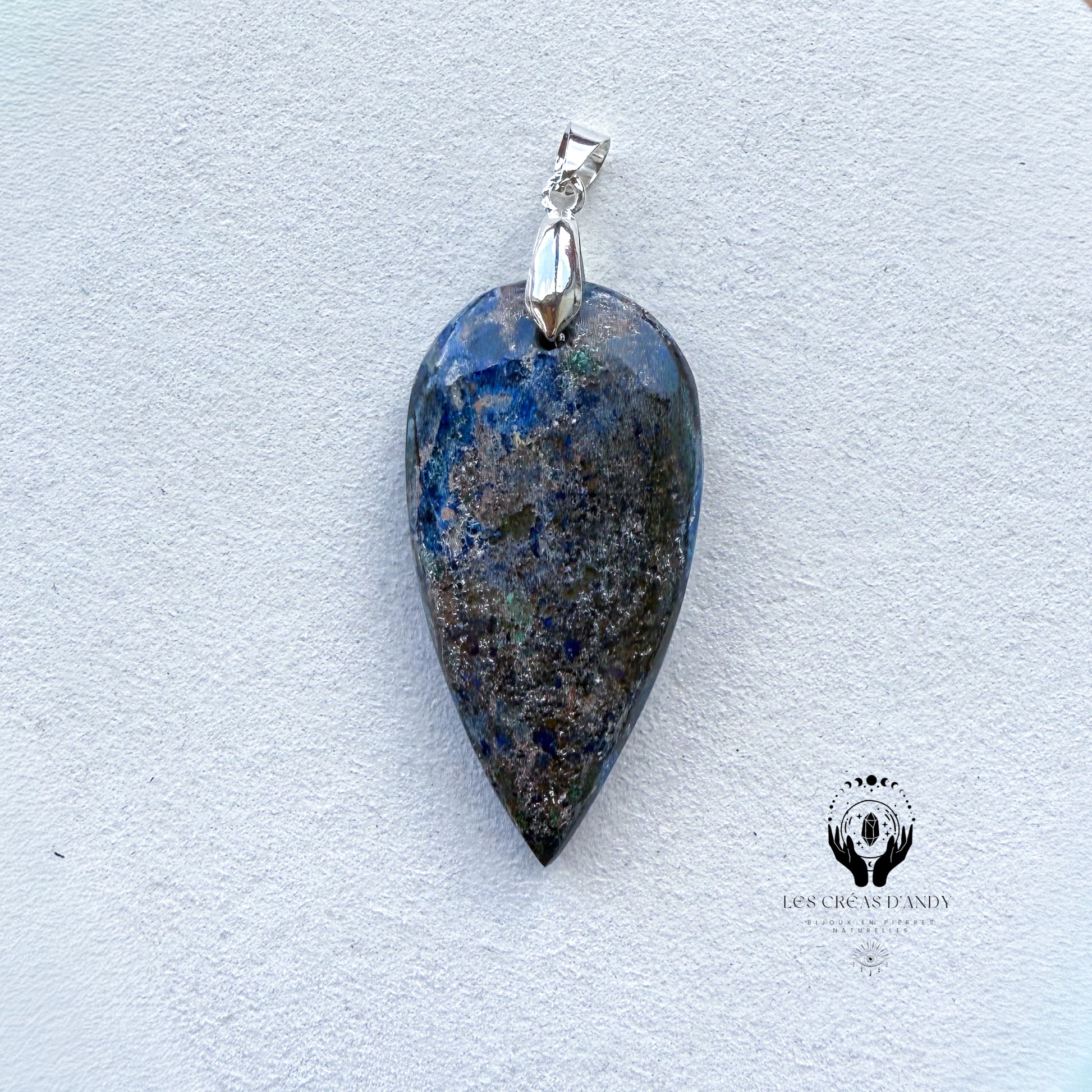 Pendentifs en pierres naturelles Azurite et bélière acier inoxydable.