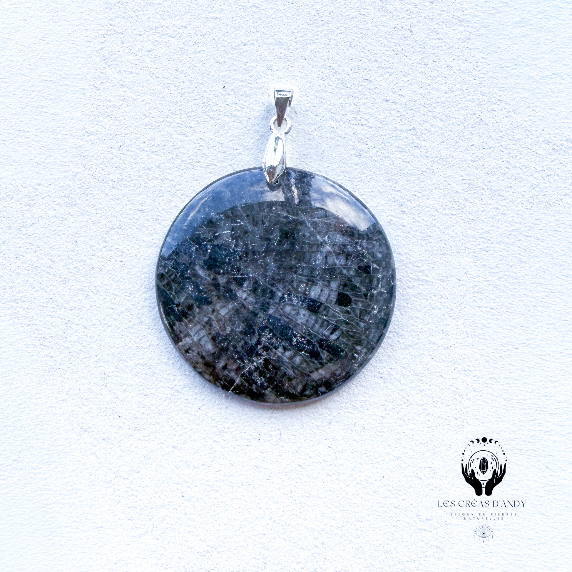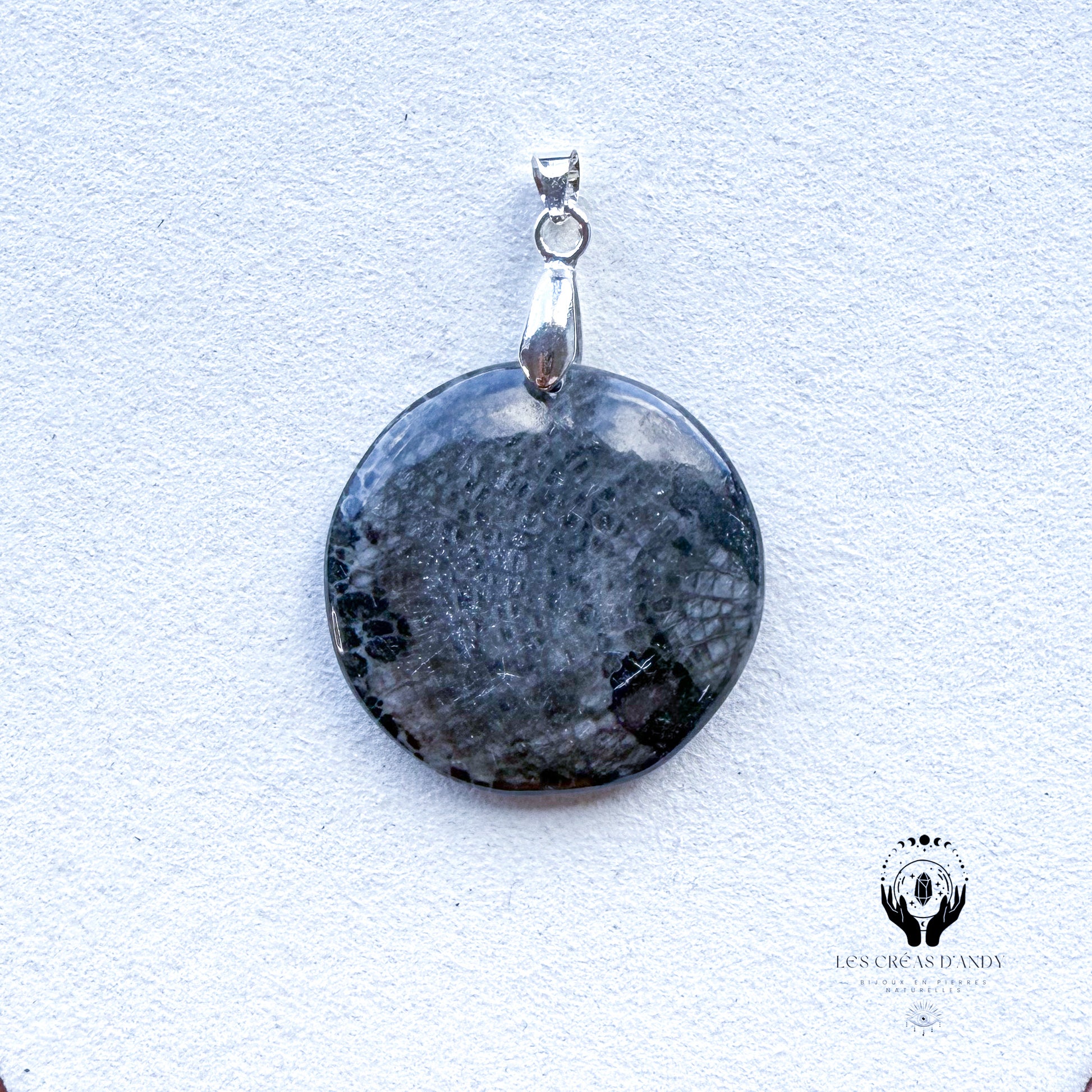 Pendentifs en pierres naturelles Bryozaire et bélière acier inoxydable.