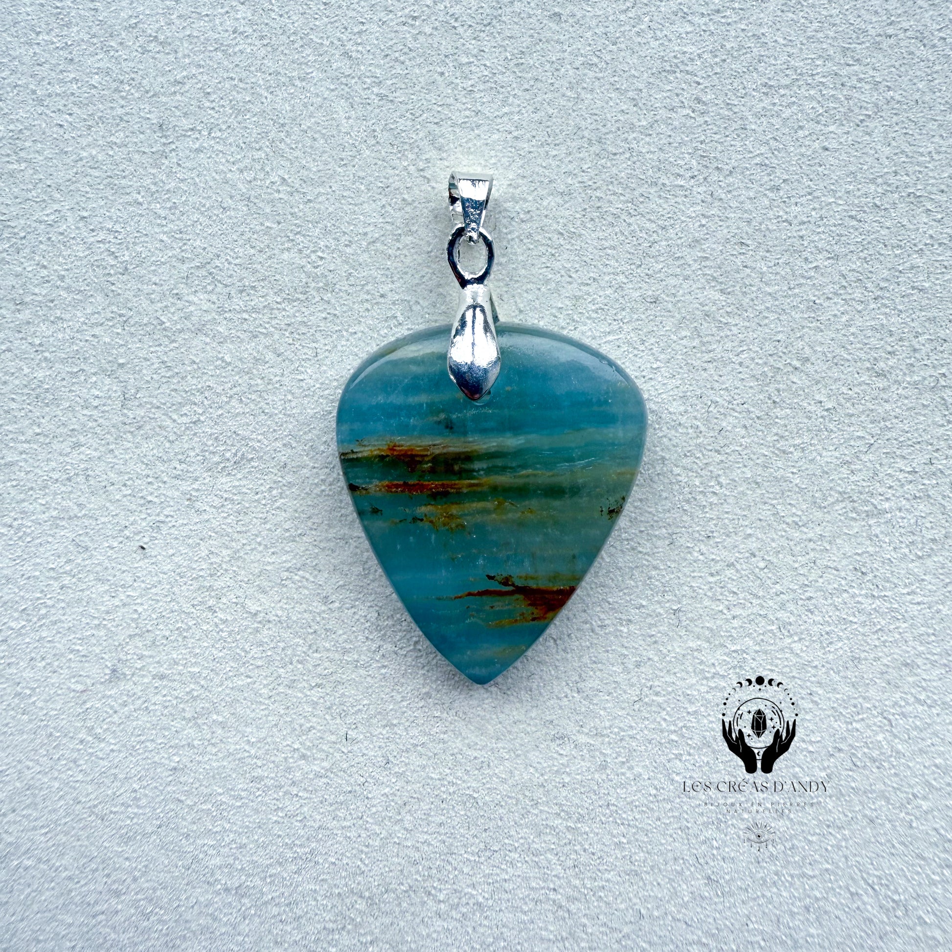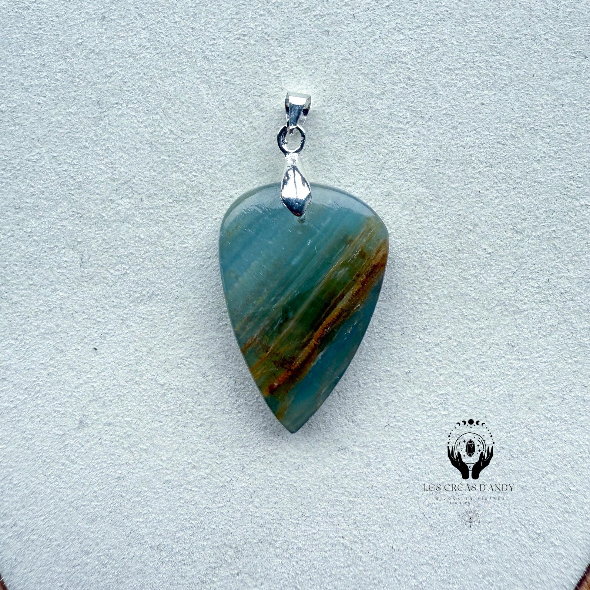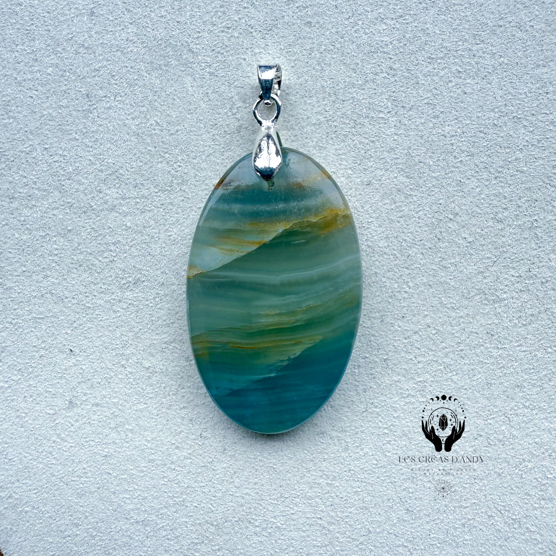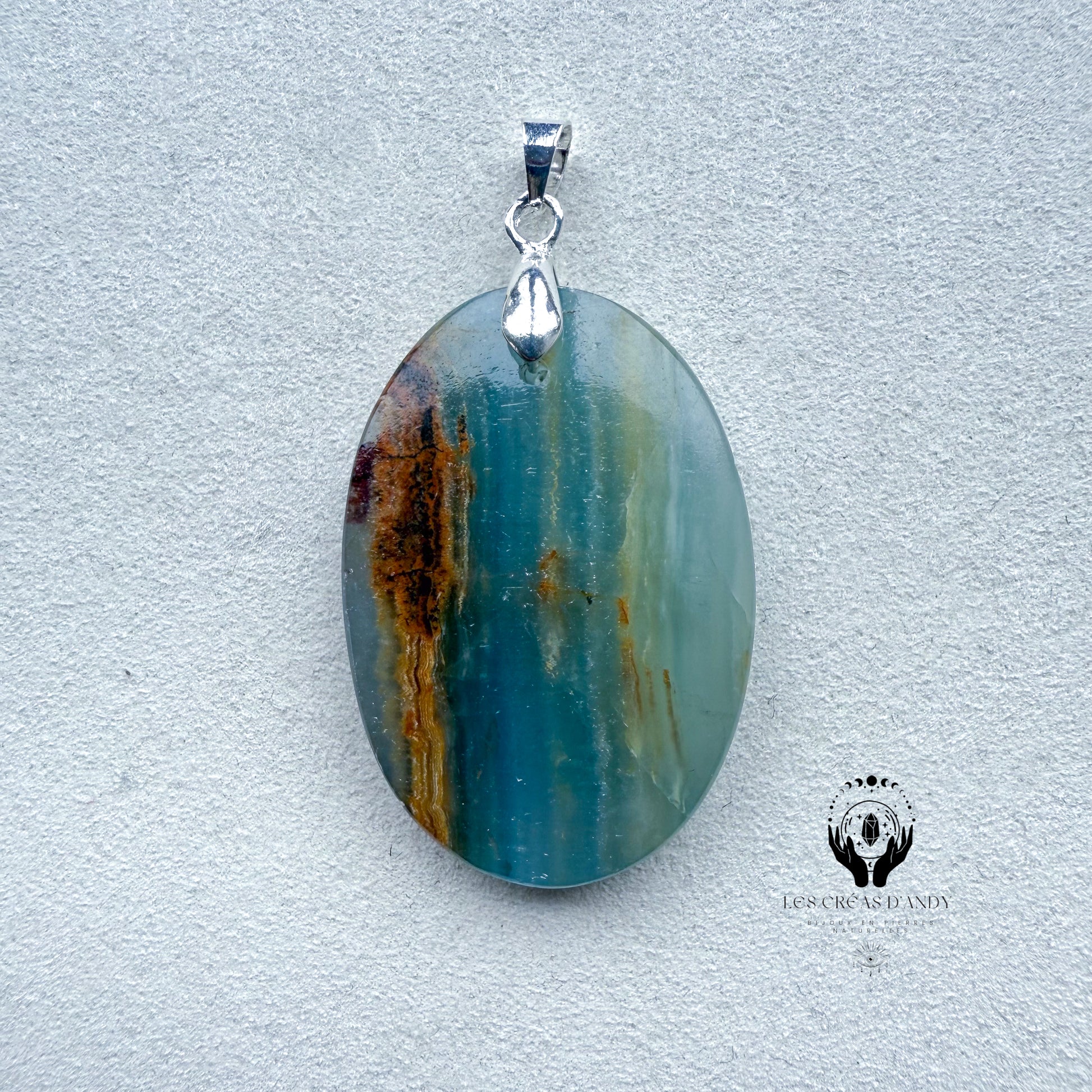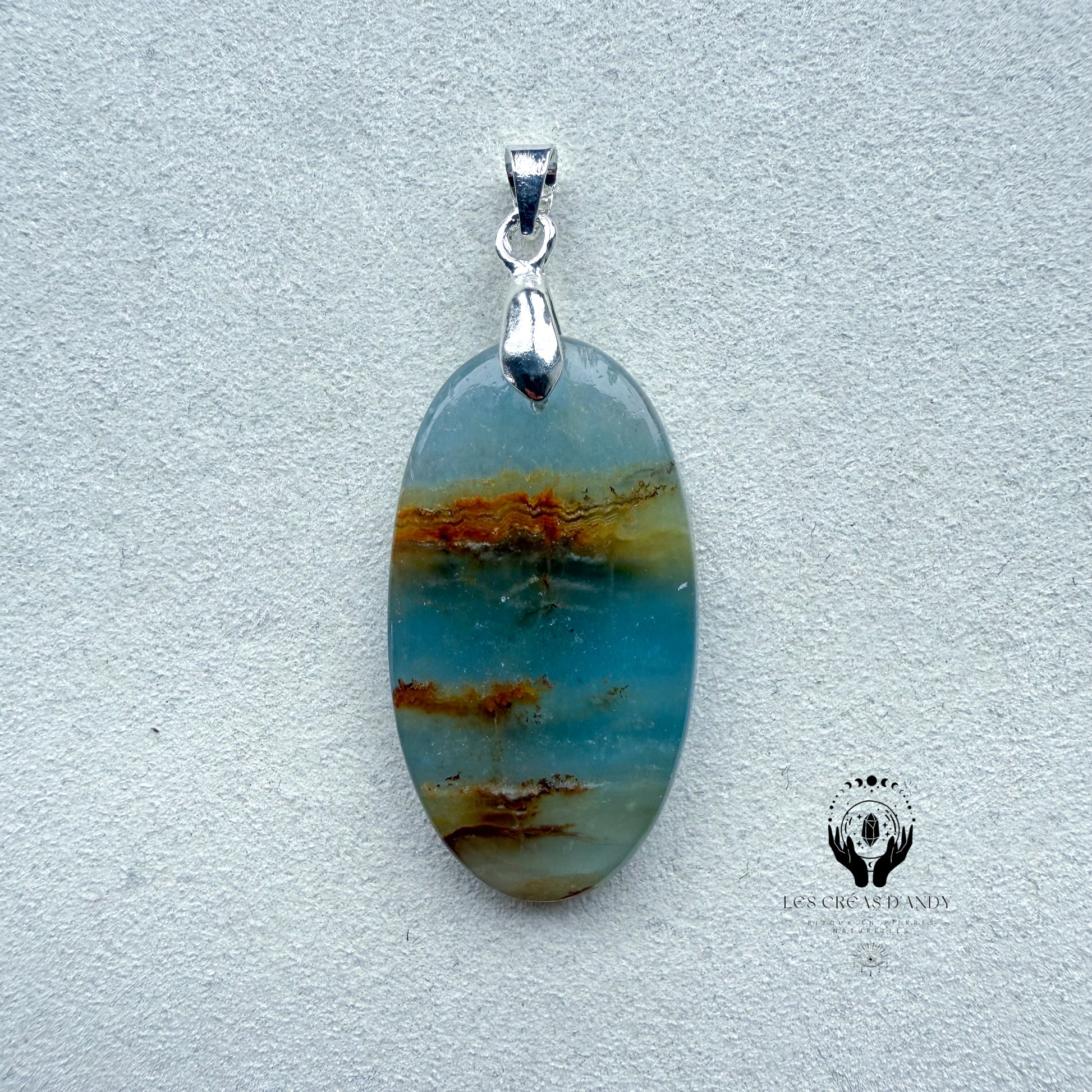 Pendentifs en pierres naturelles Calcite de Caraïbes et bélière acier inoxydable.