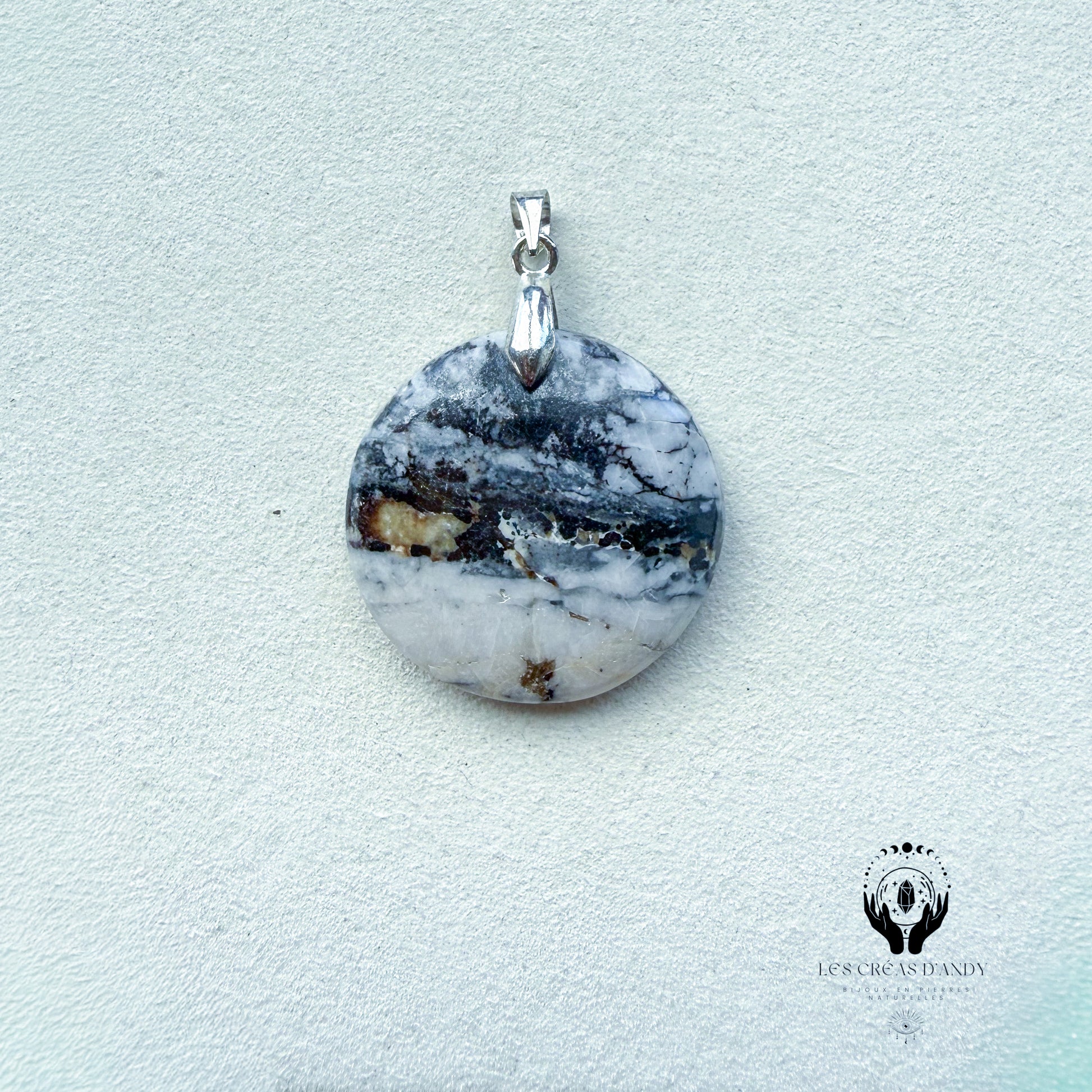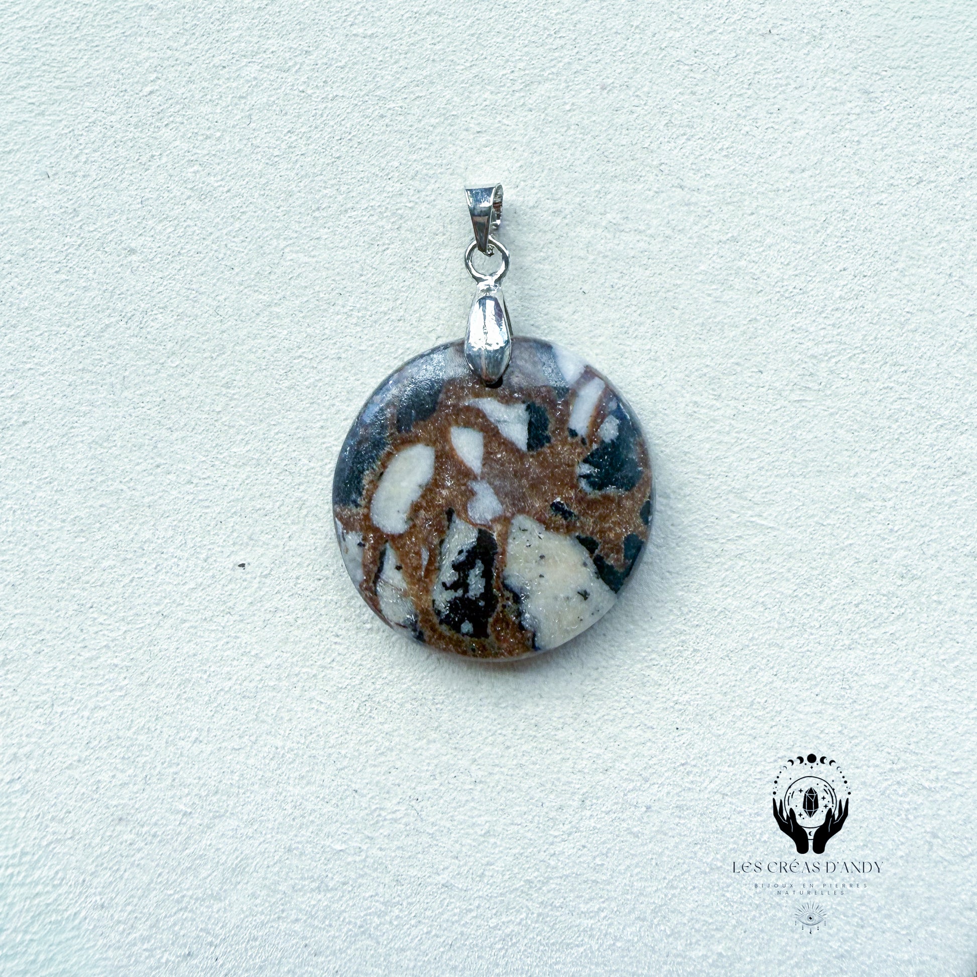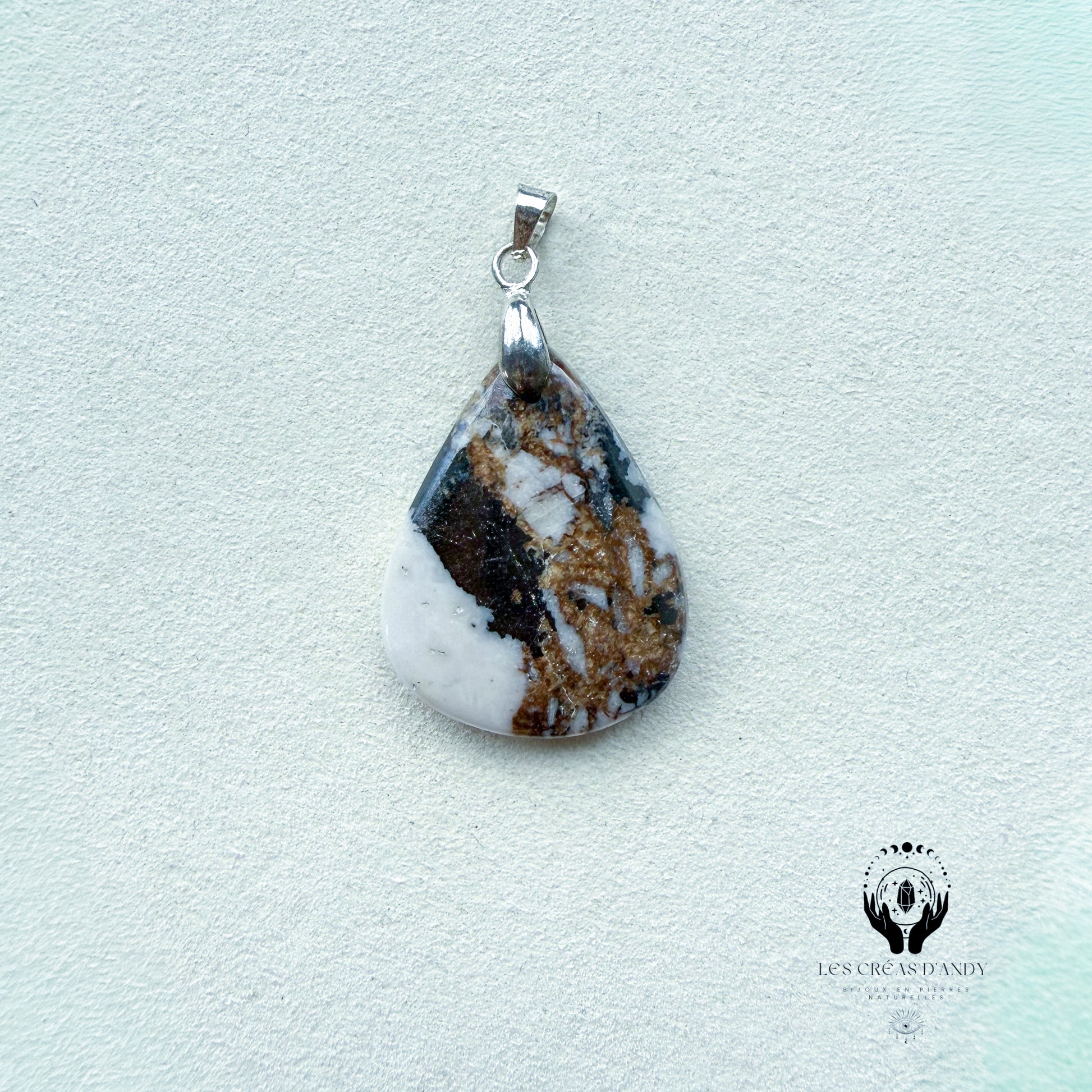 Pendentifs en pierres naturelles Calcite peyrebrune et bélière acier inoxydable.
