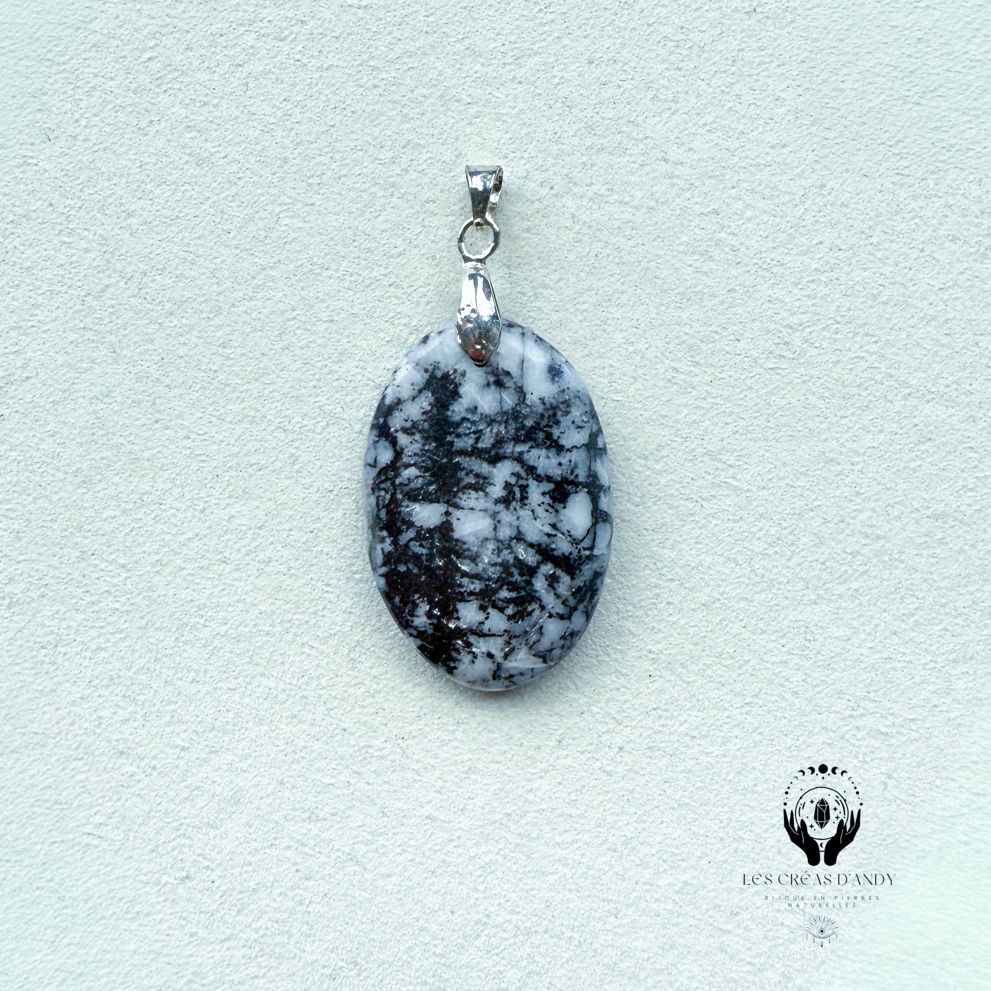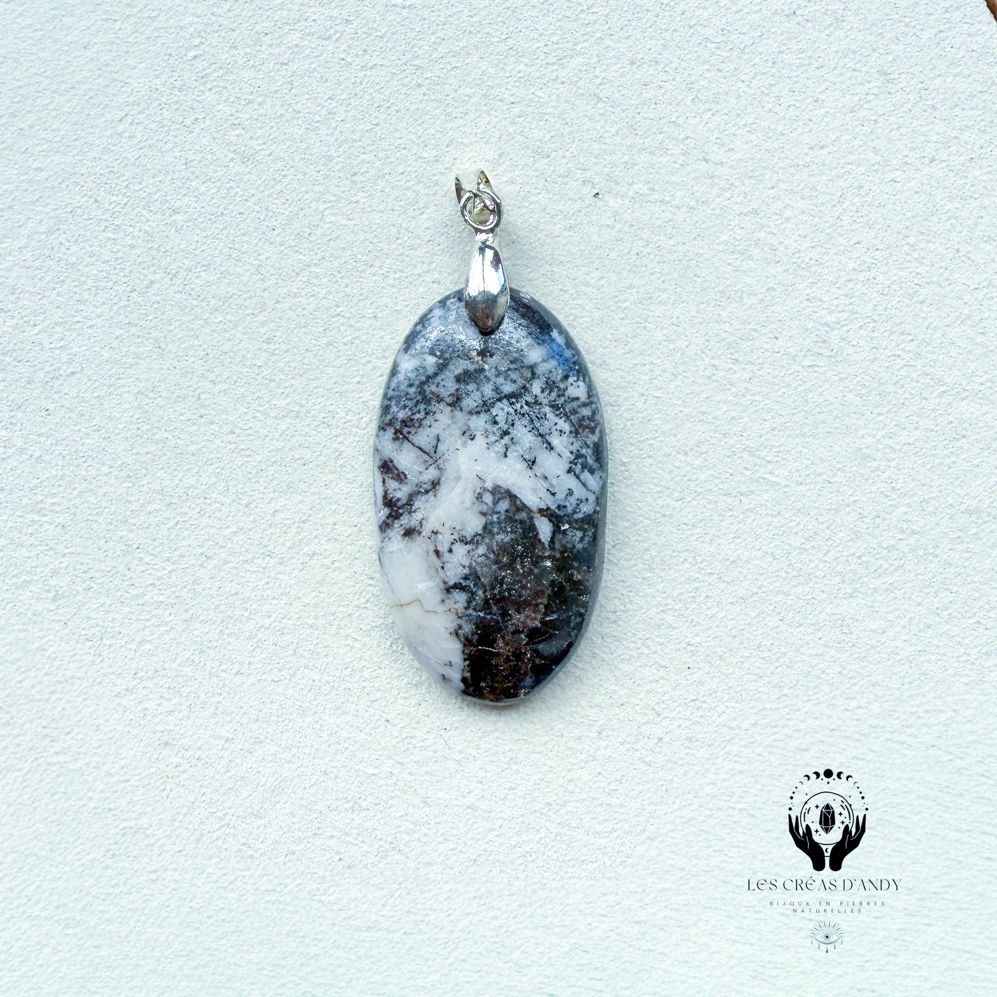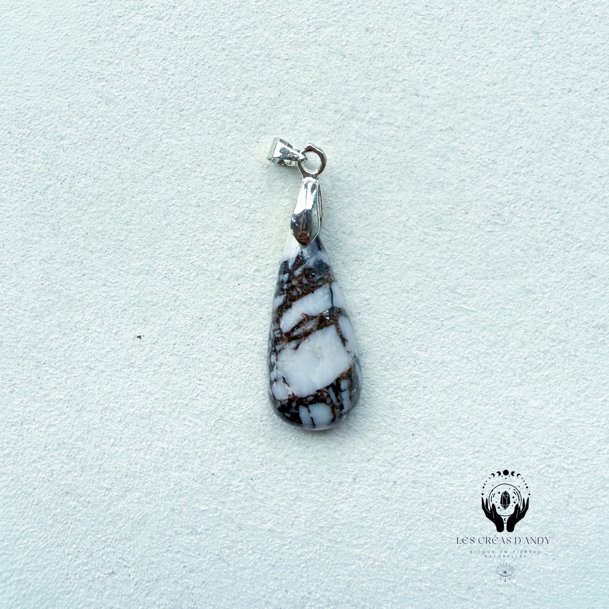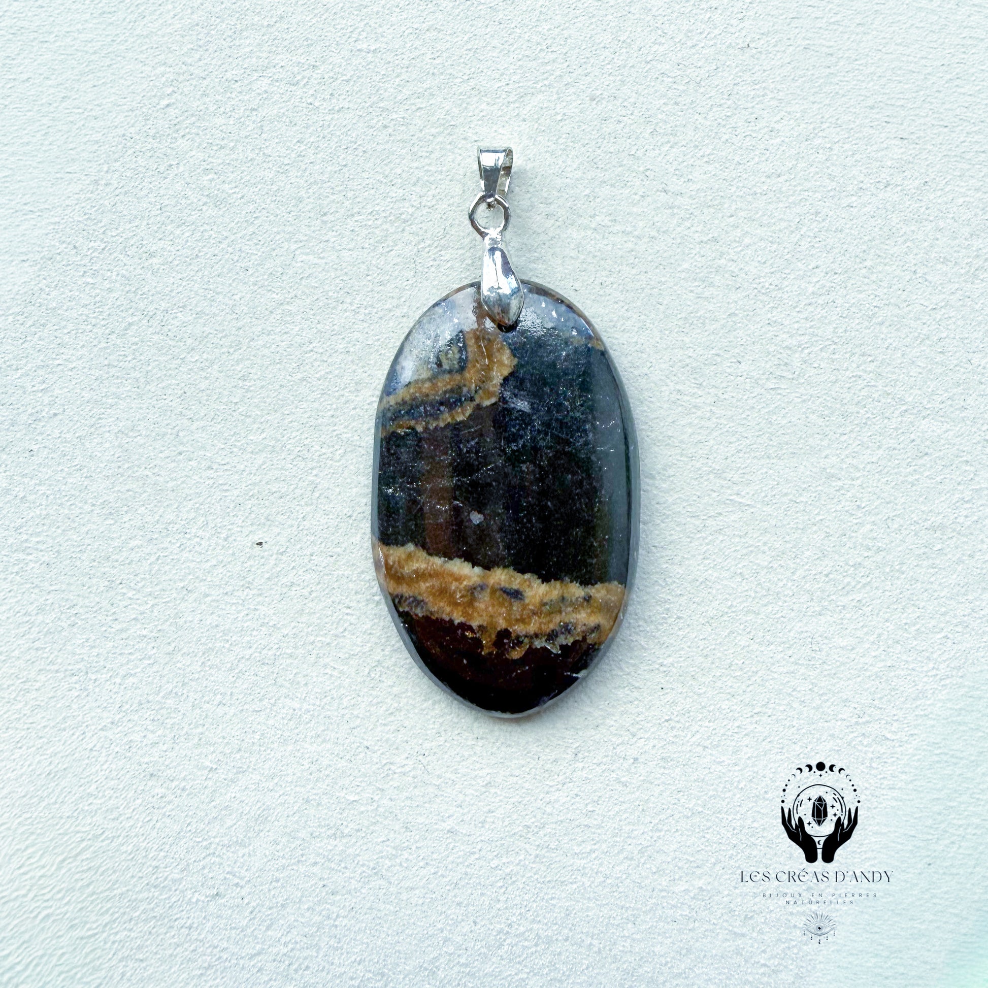 Pendentifs en pierres naturelles Calcite peyrebrune et bélière acier inoxydable.