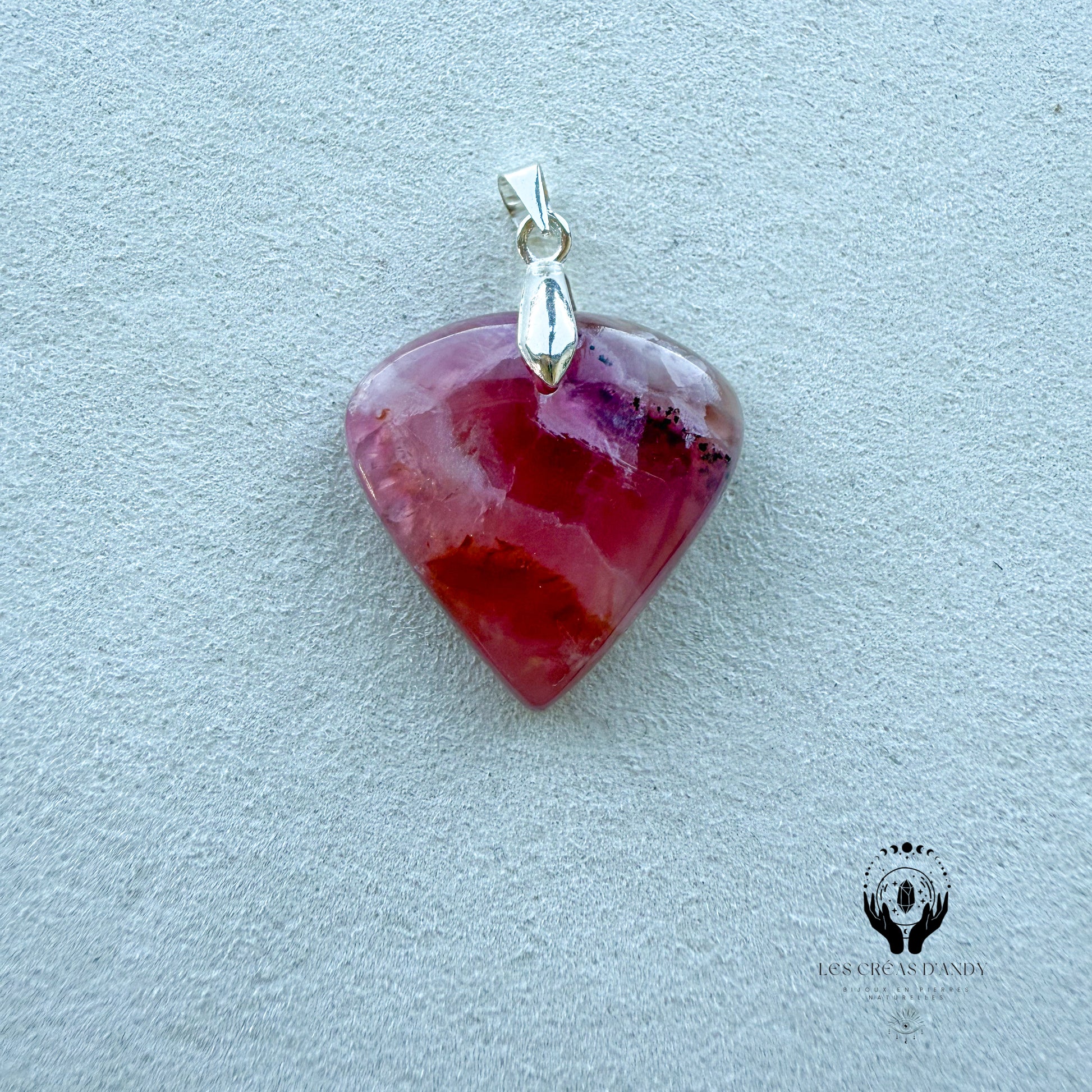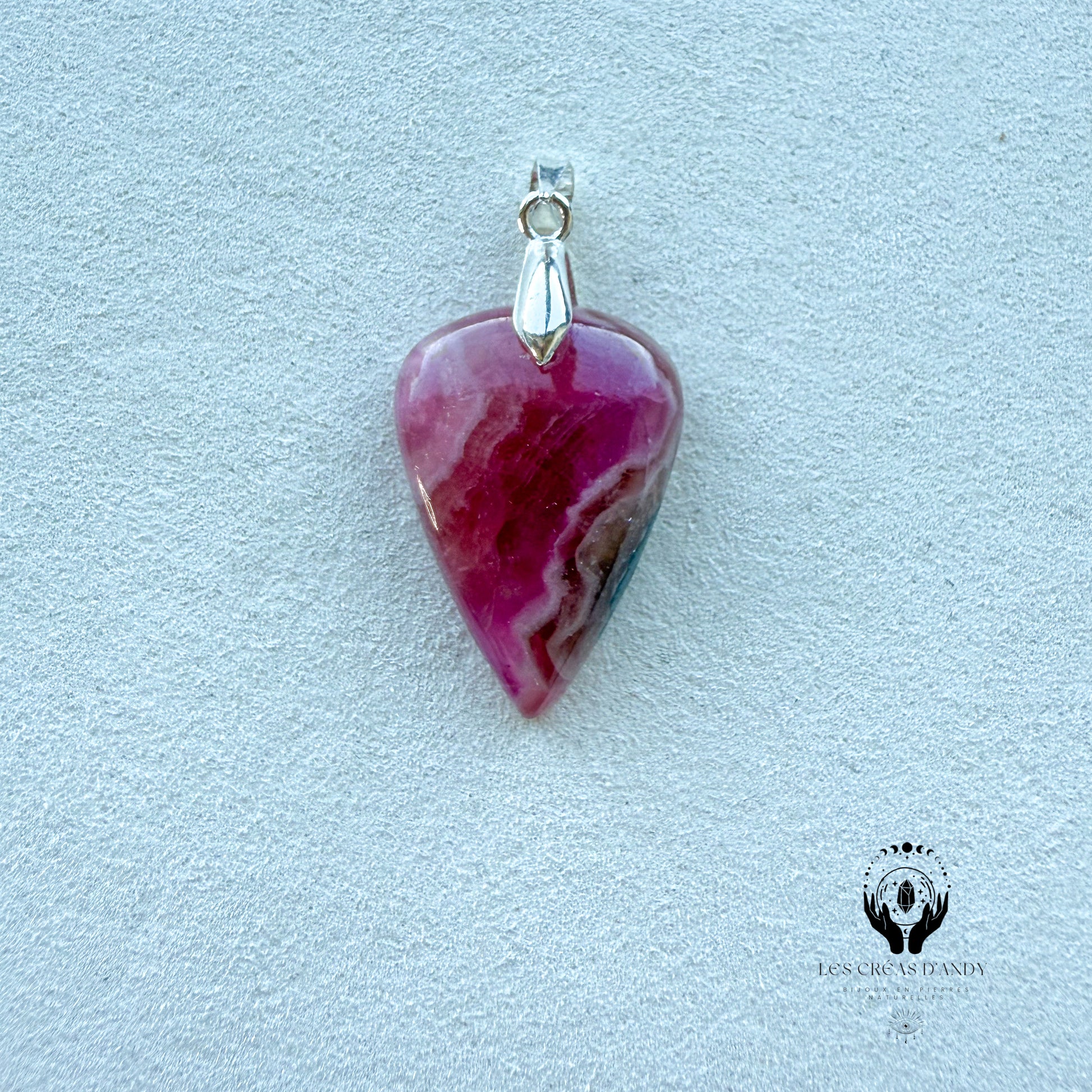 Pendentifs en pierres naturelles Calcite rose et bélière acier inoxydable.