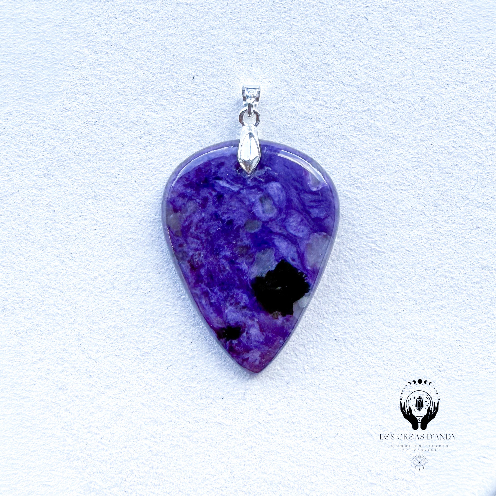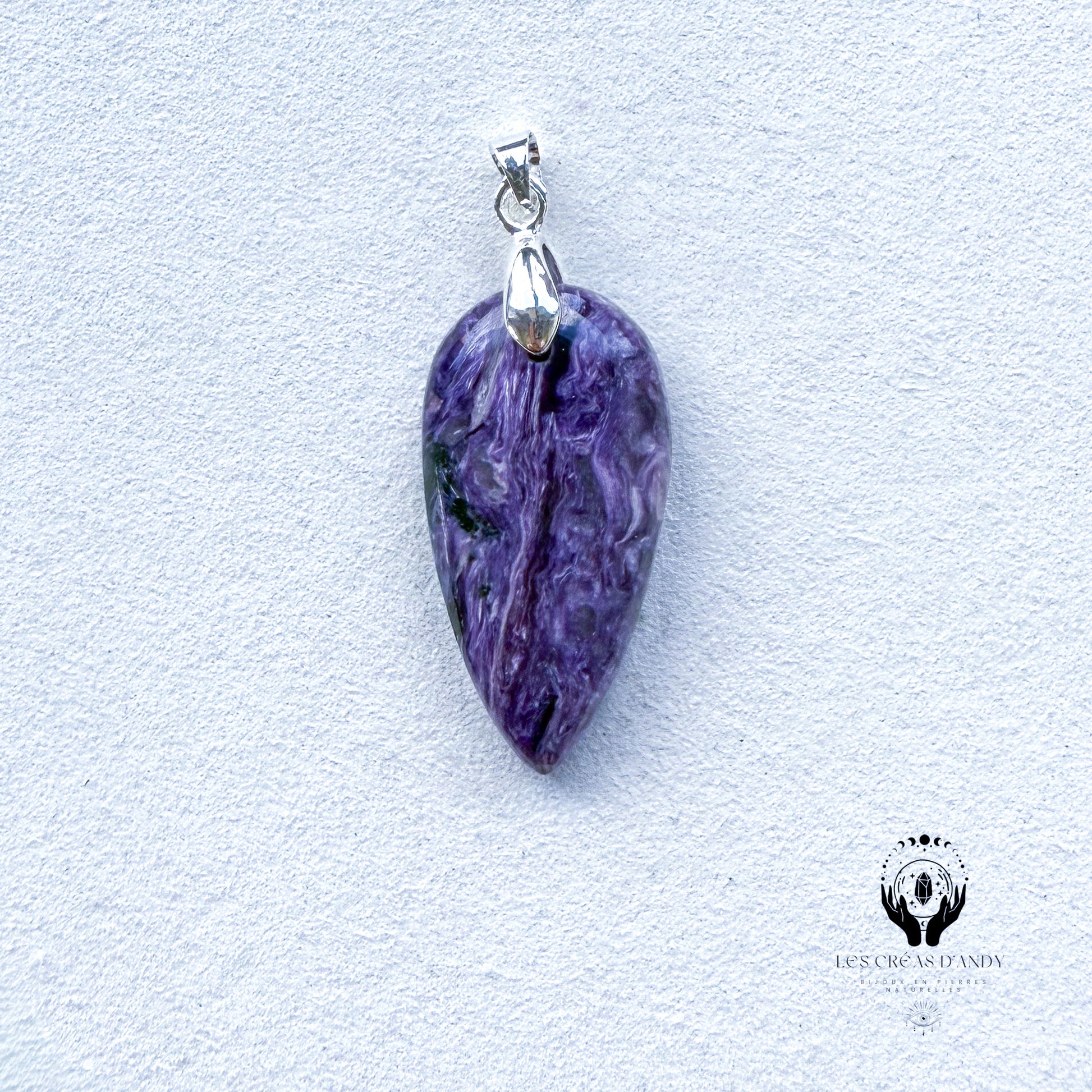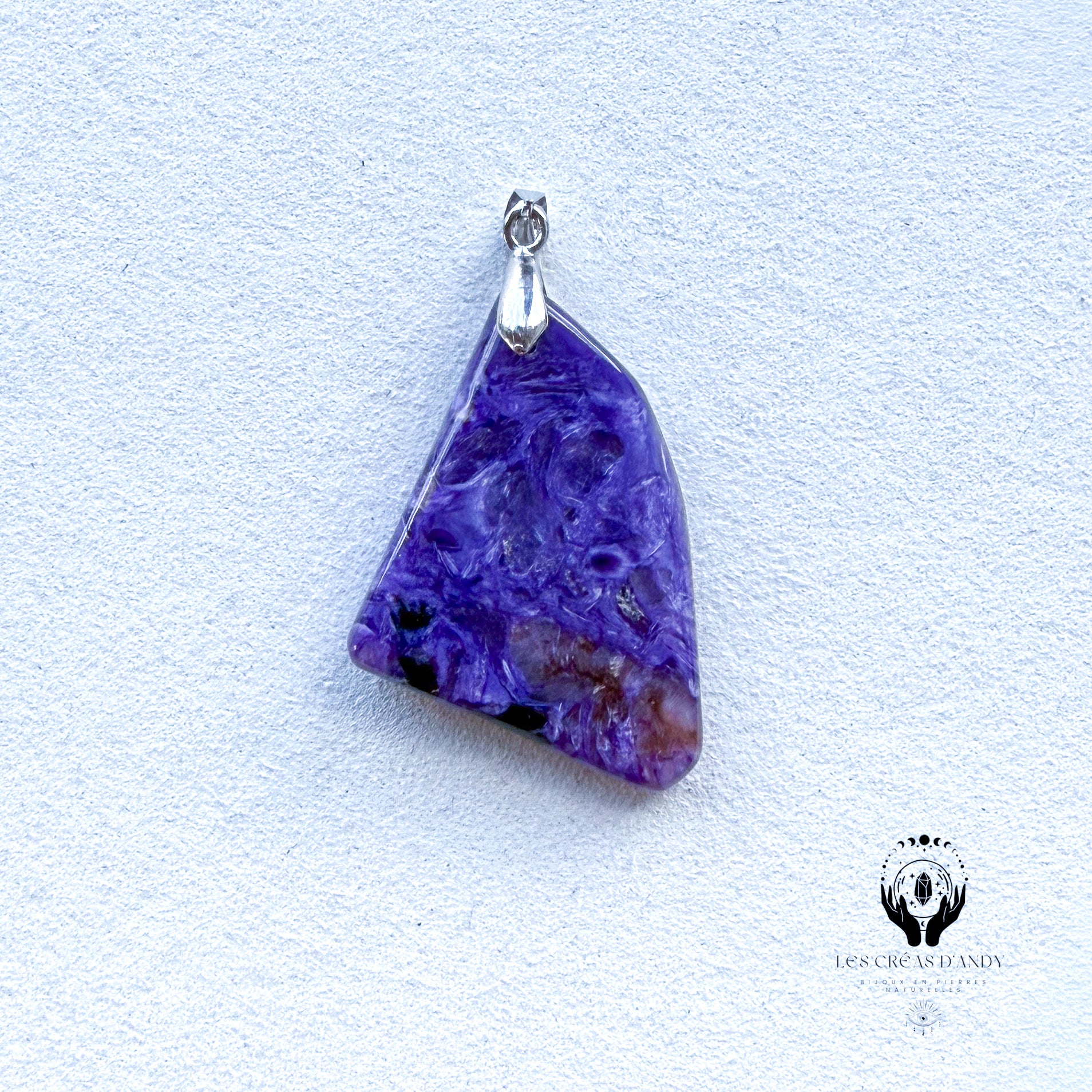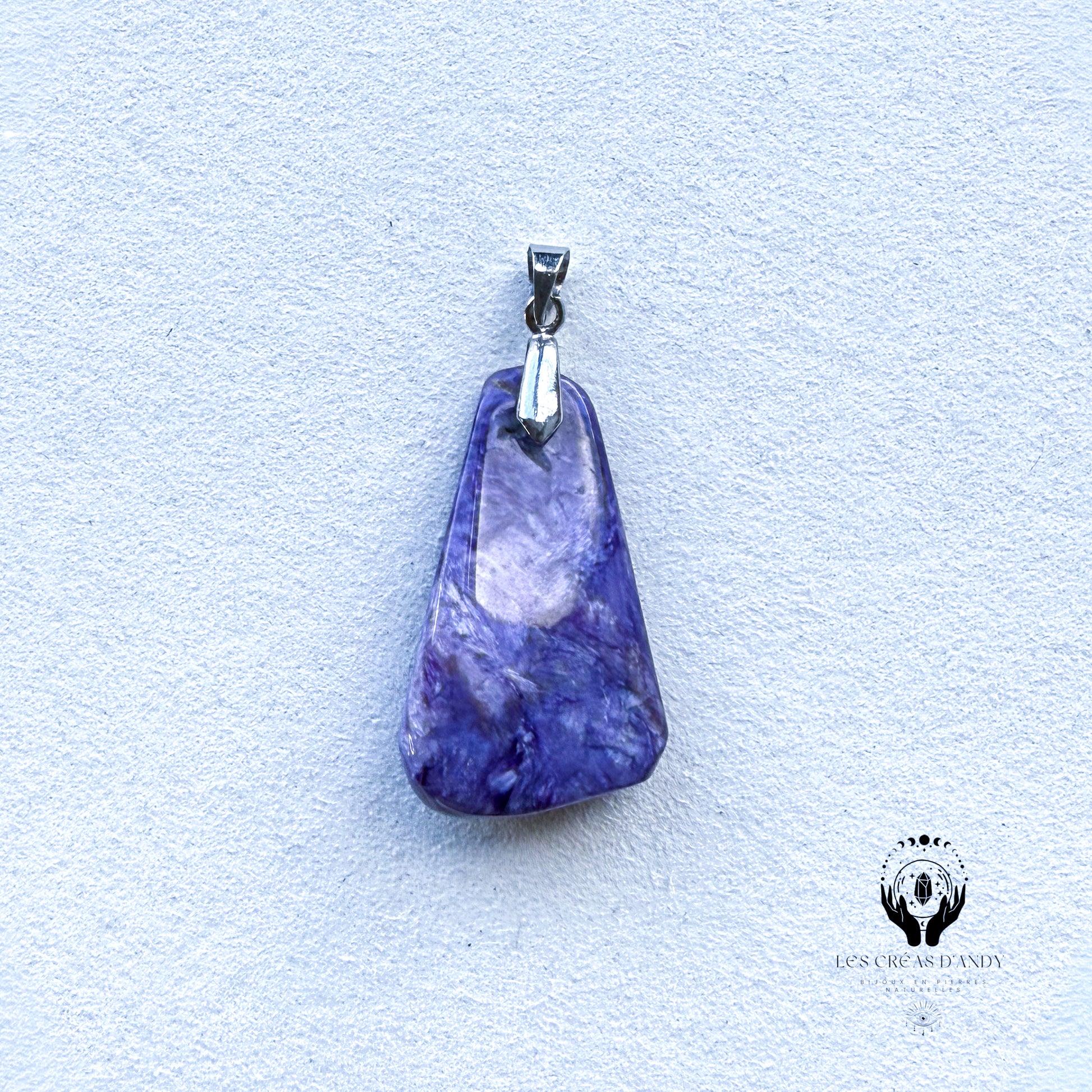 Pendentifs en pierres naturelles Charoïte et bélière acier inoxydable.