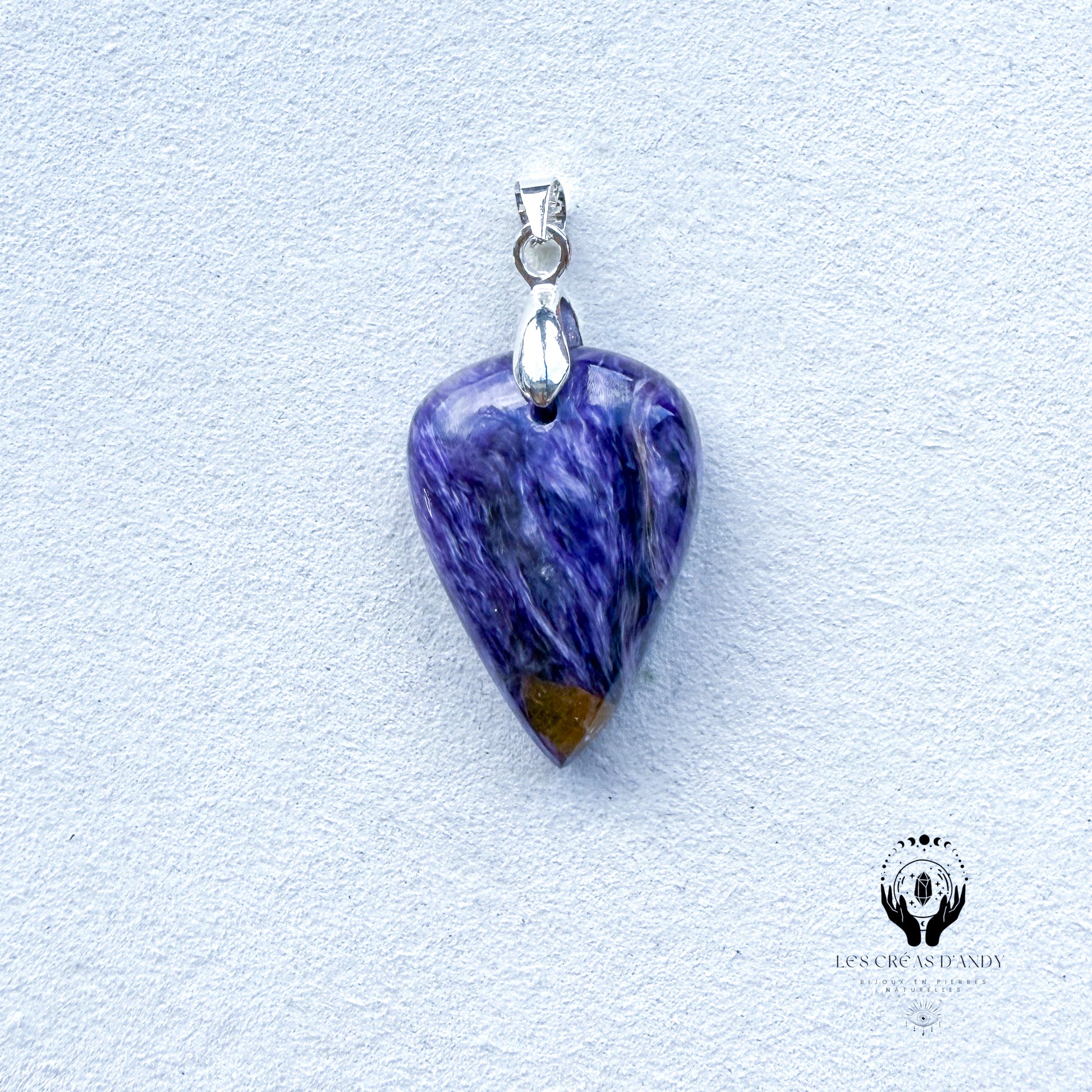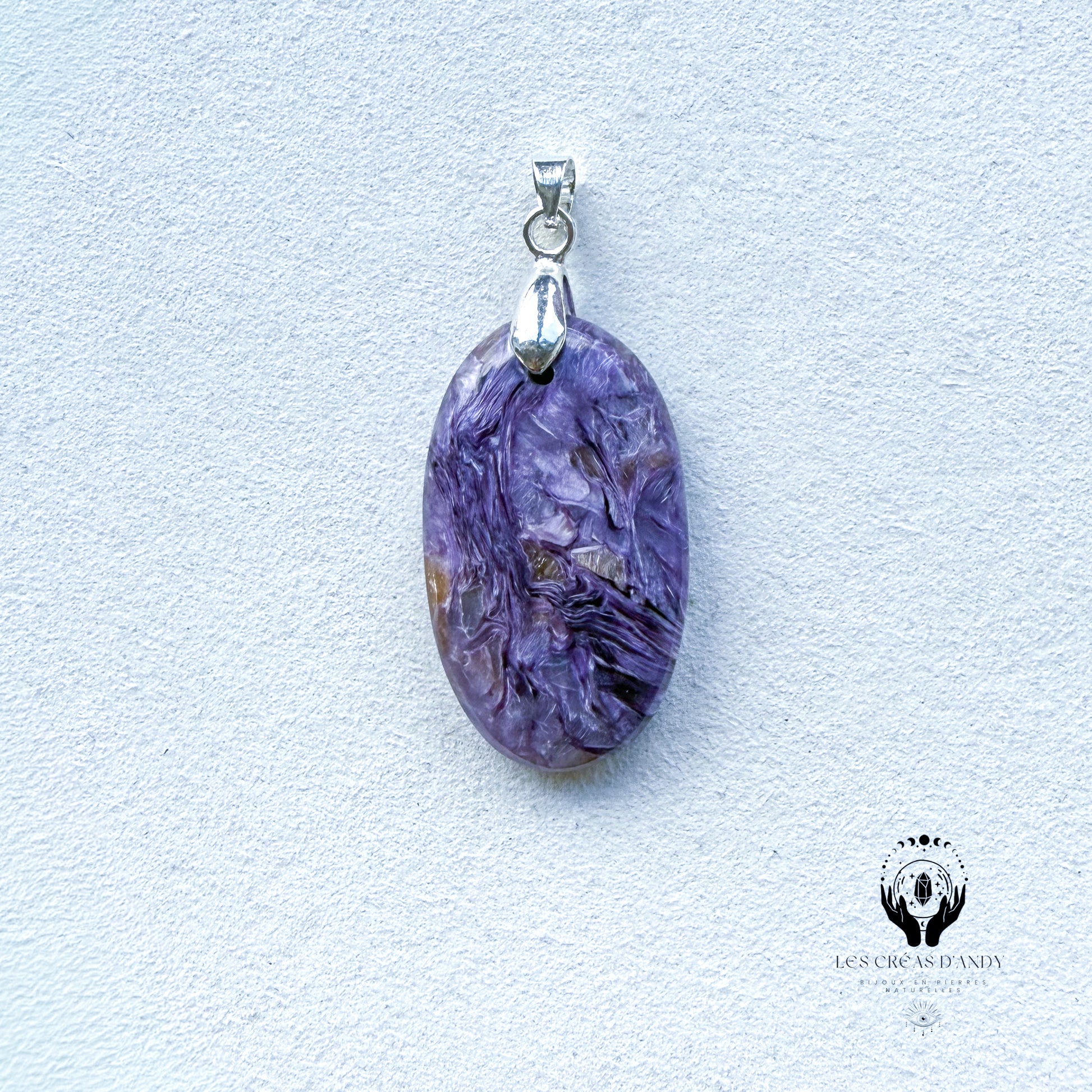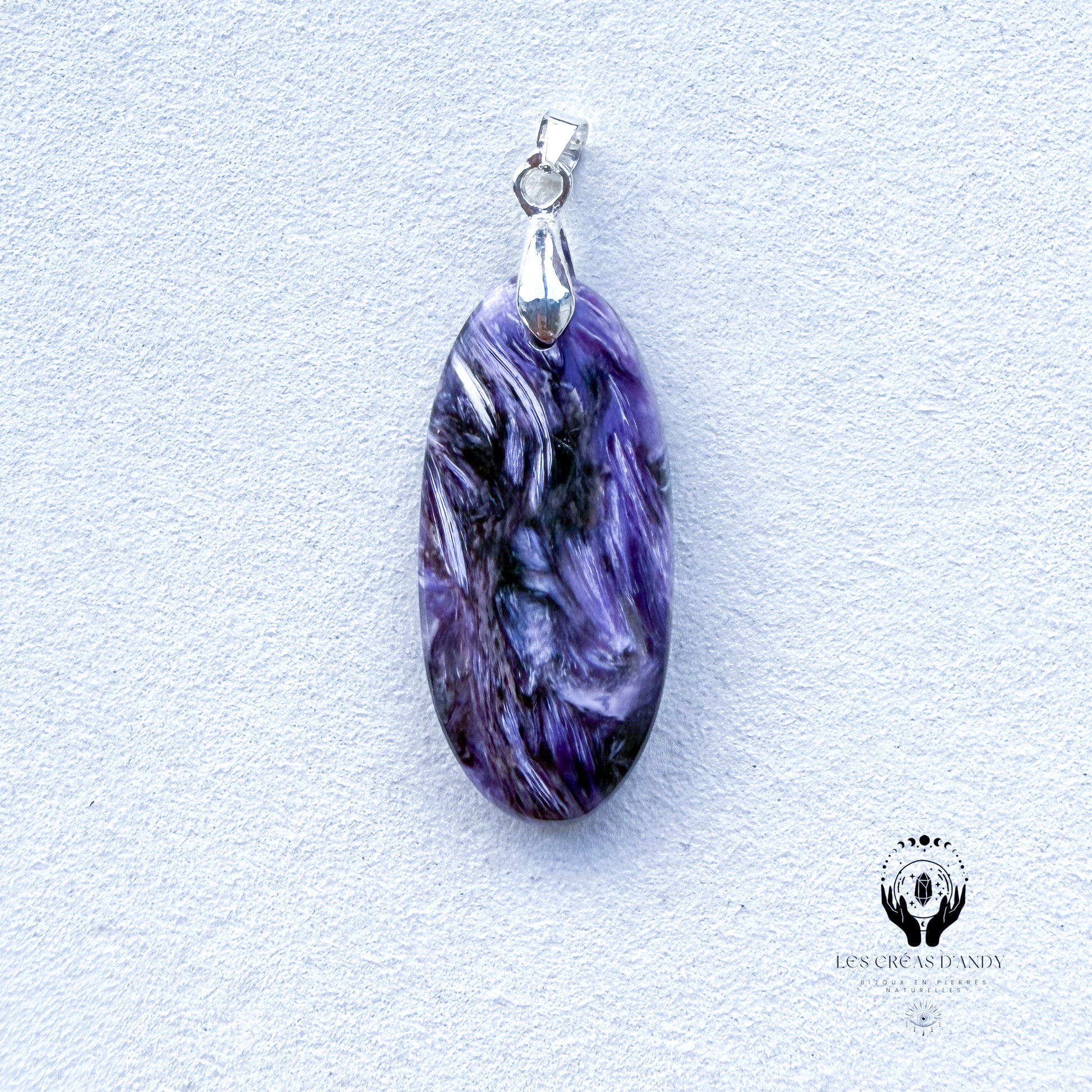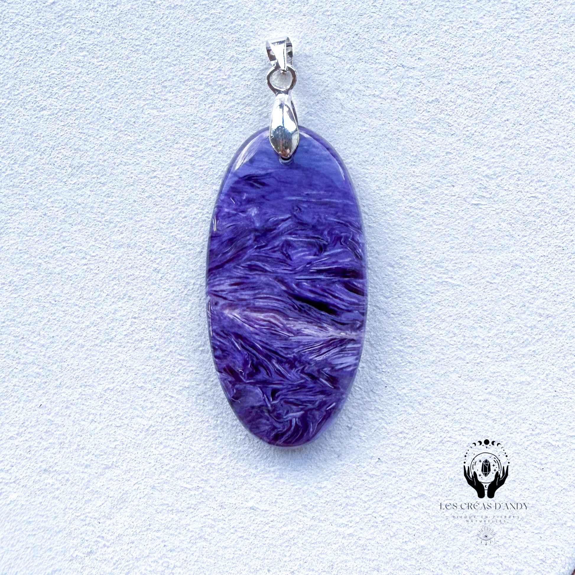 Pendentifs en pierres naturelles Charoïte et bélière acier inoxydable.