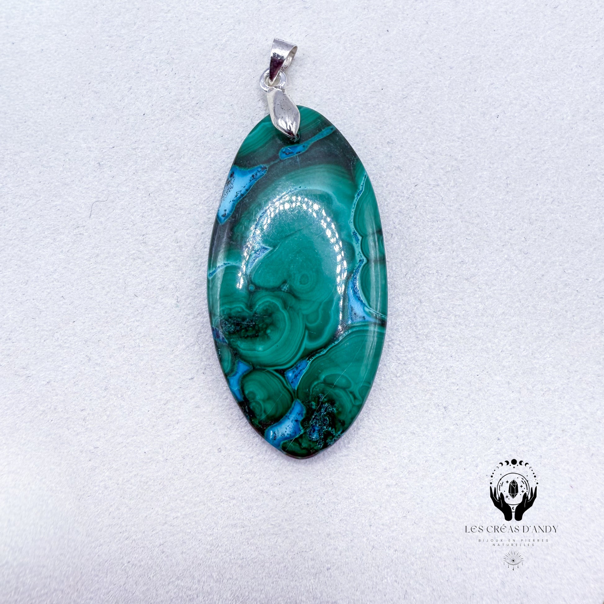 Pendentifs en pierres naturelles Malachite-chrysocole et bélière acier inoxydable.