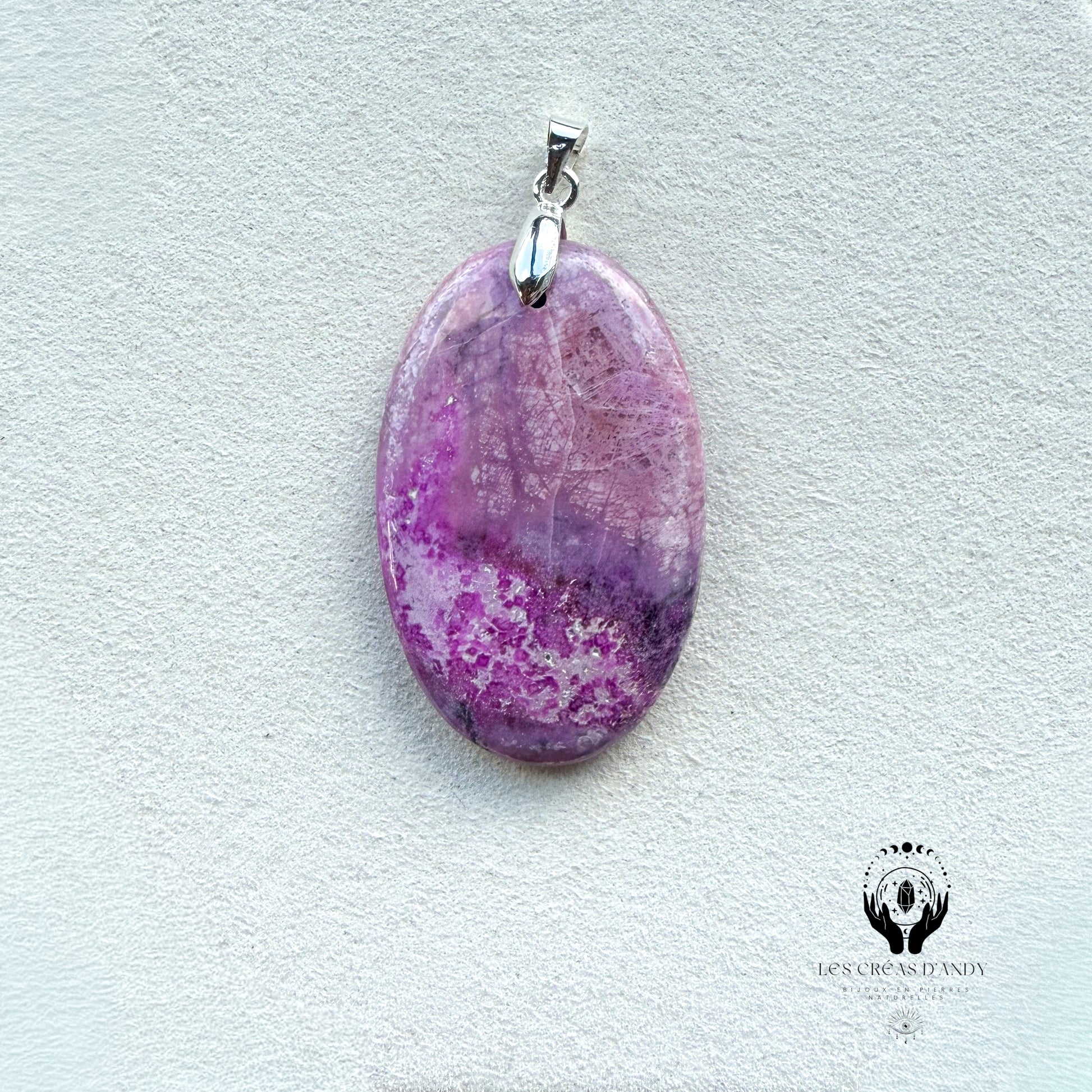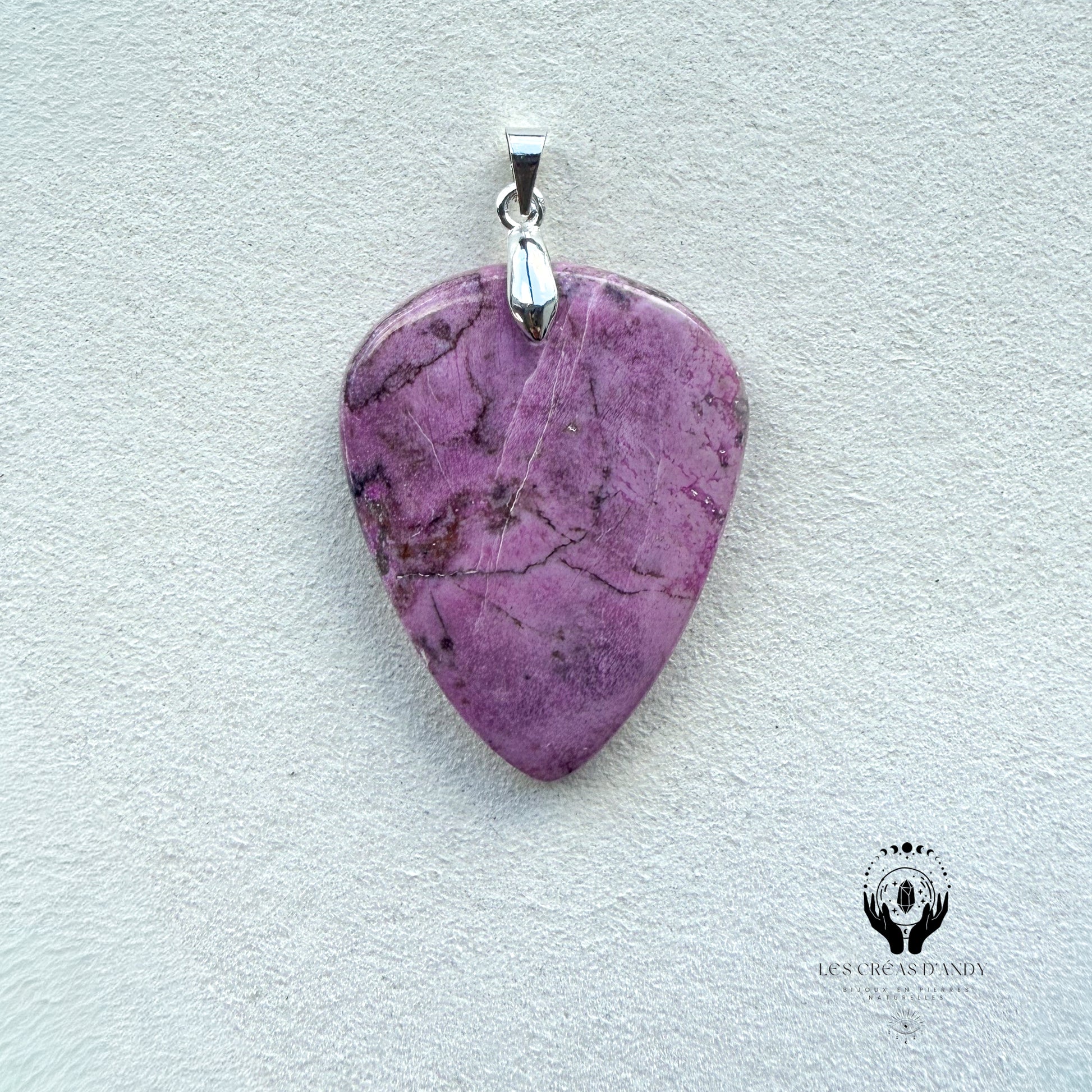 Pendentifs en pierres naturelles Cobaltocalcite et bélière acier inoxydable.