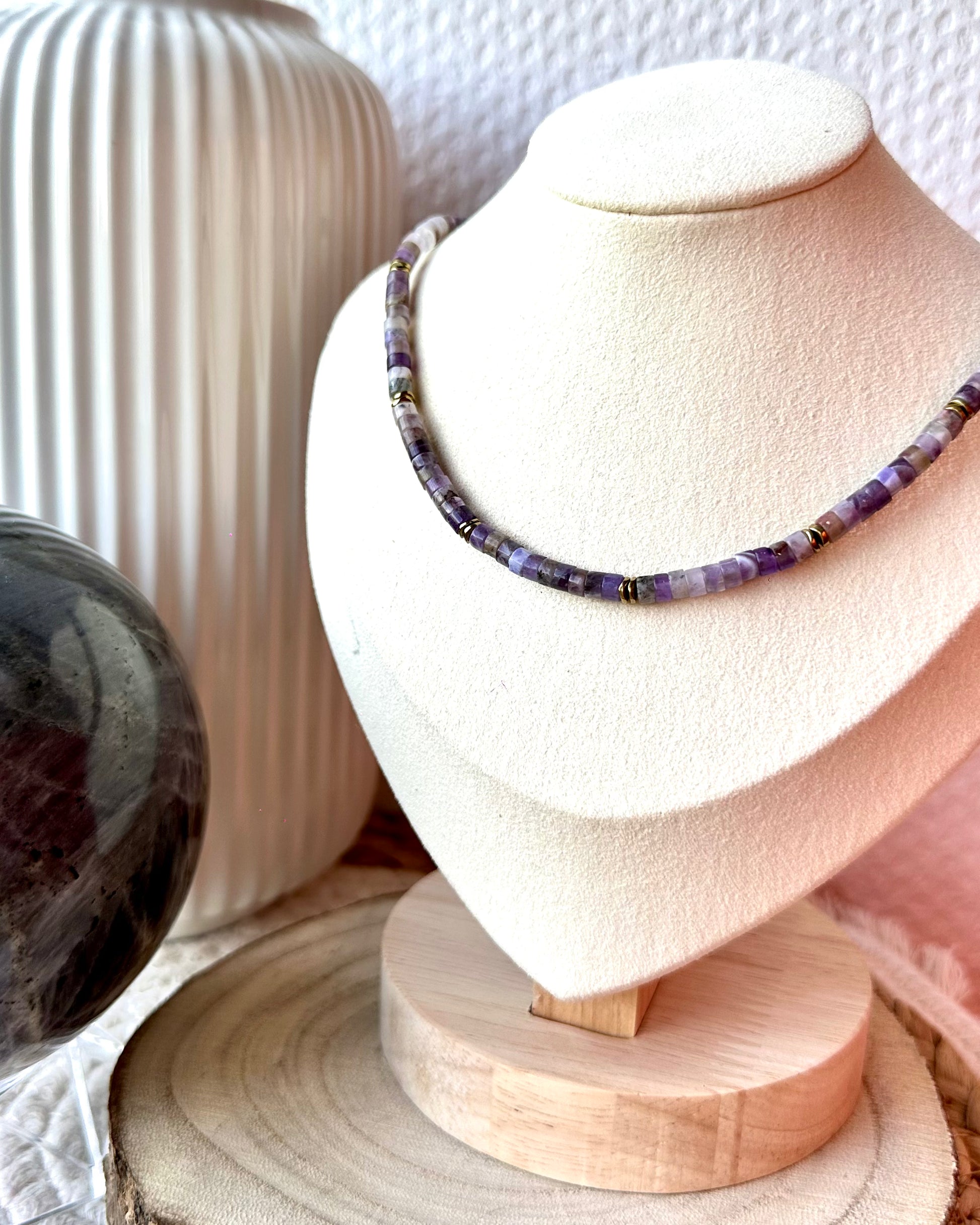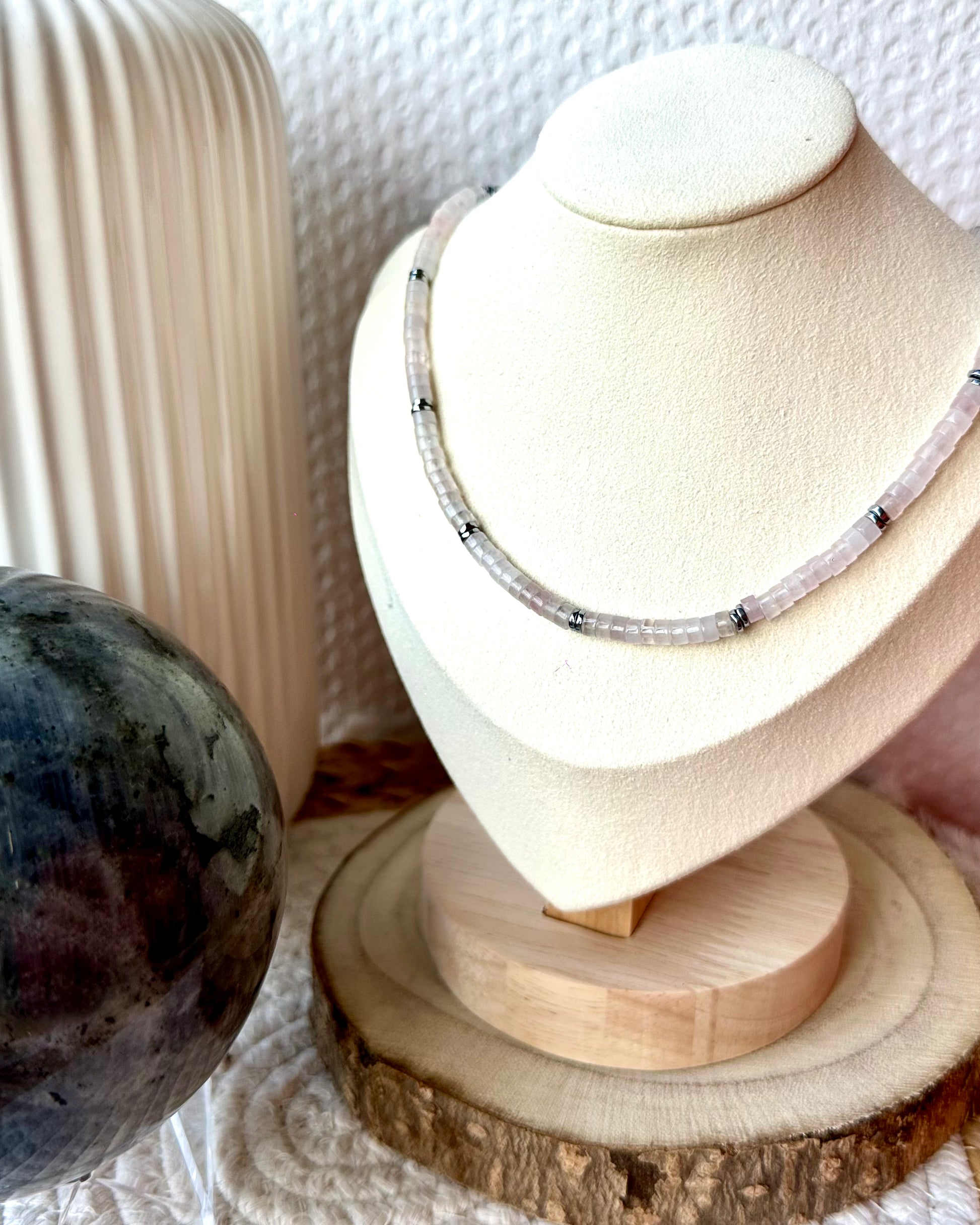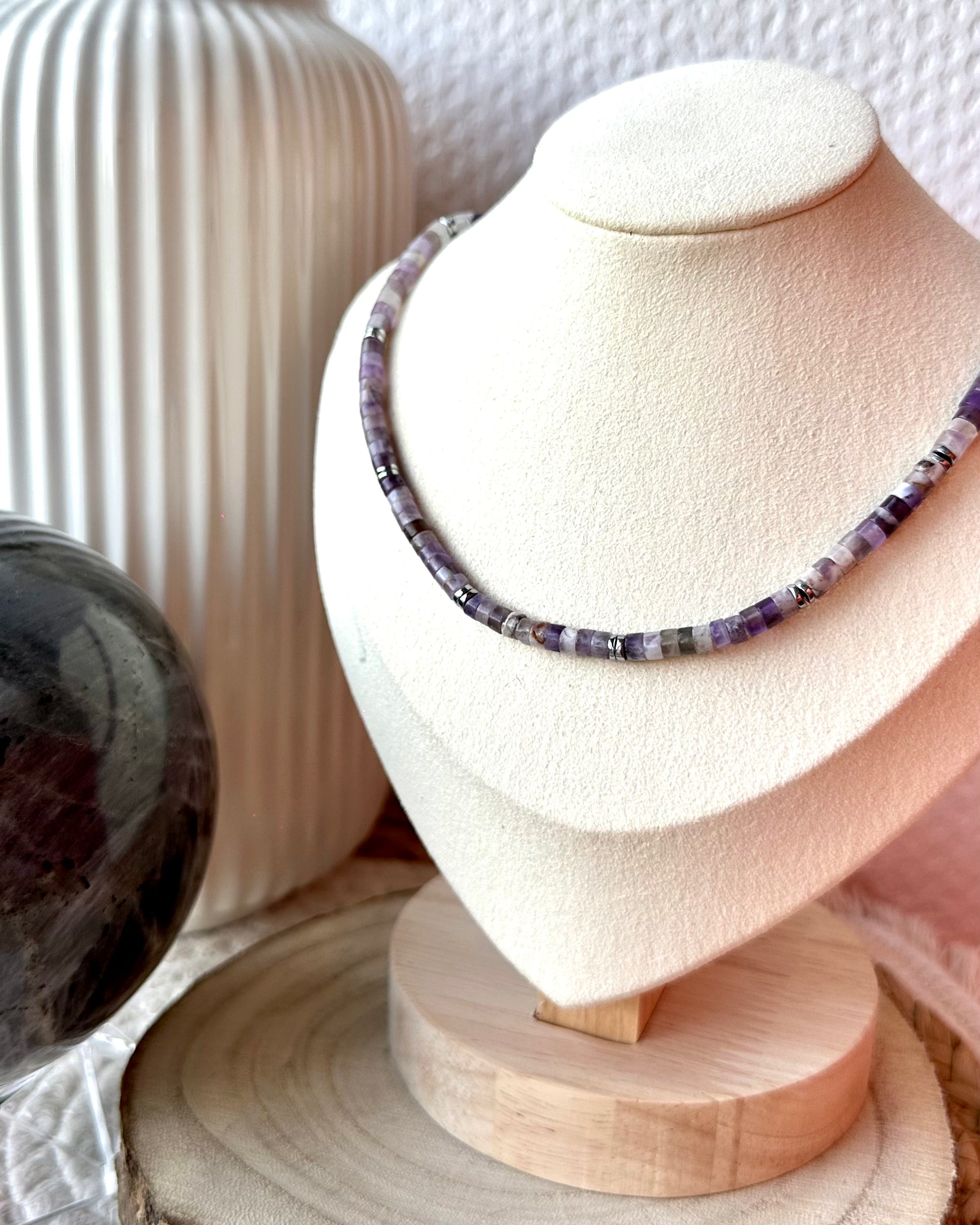Collier ras de cou fait main en perles naturelles et hématite