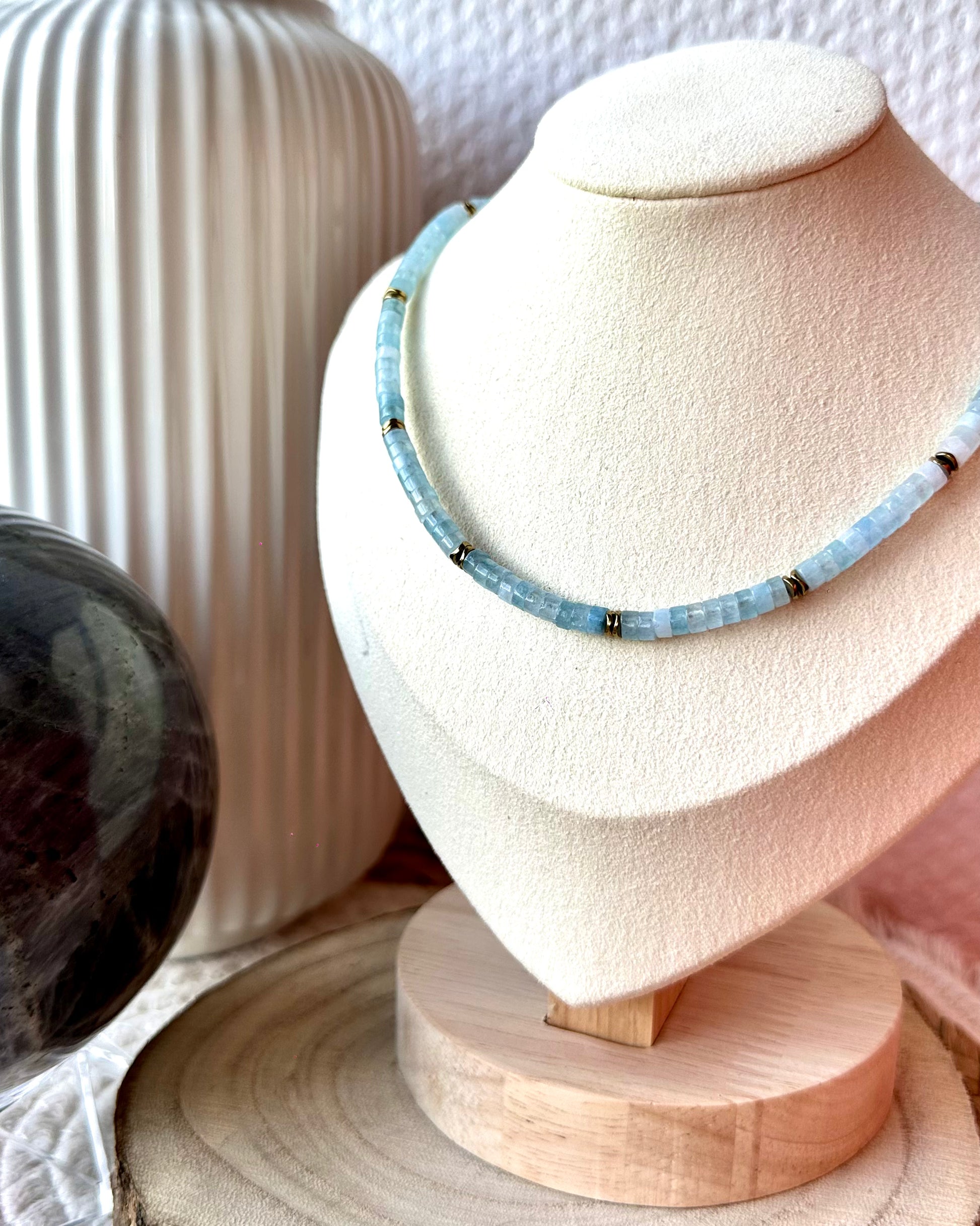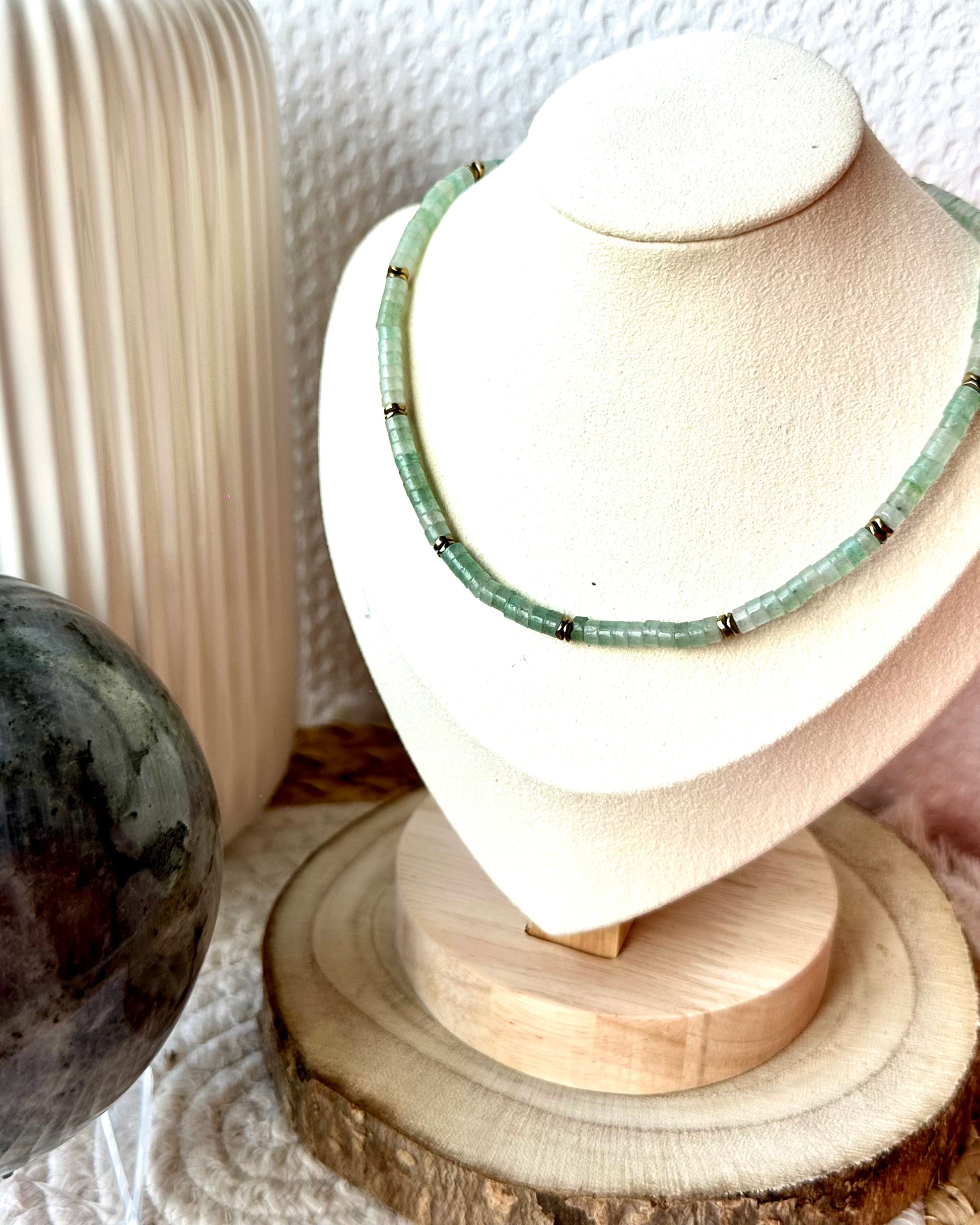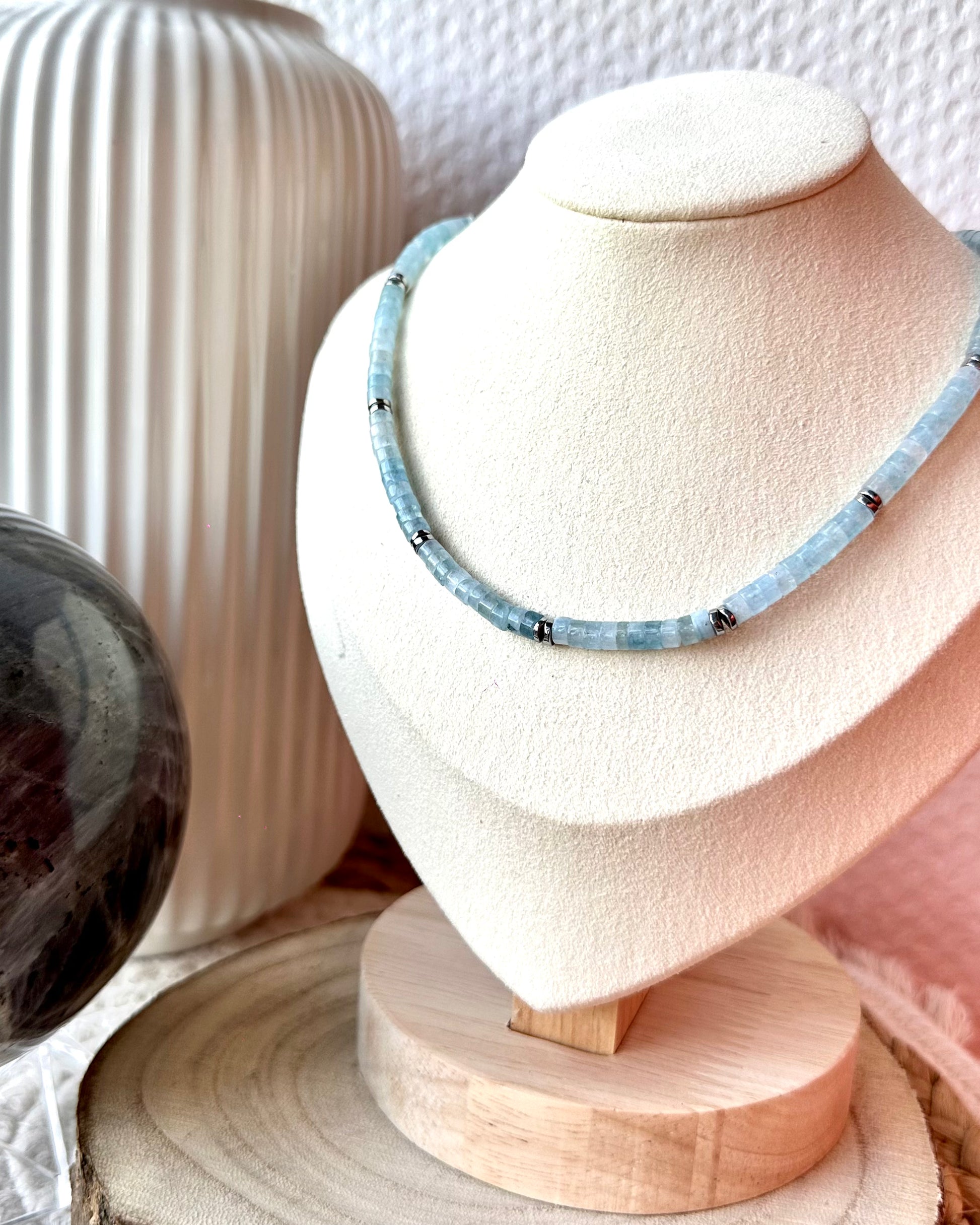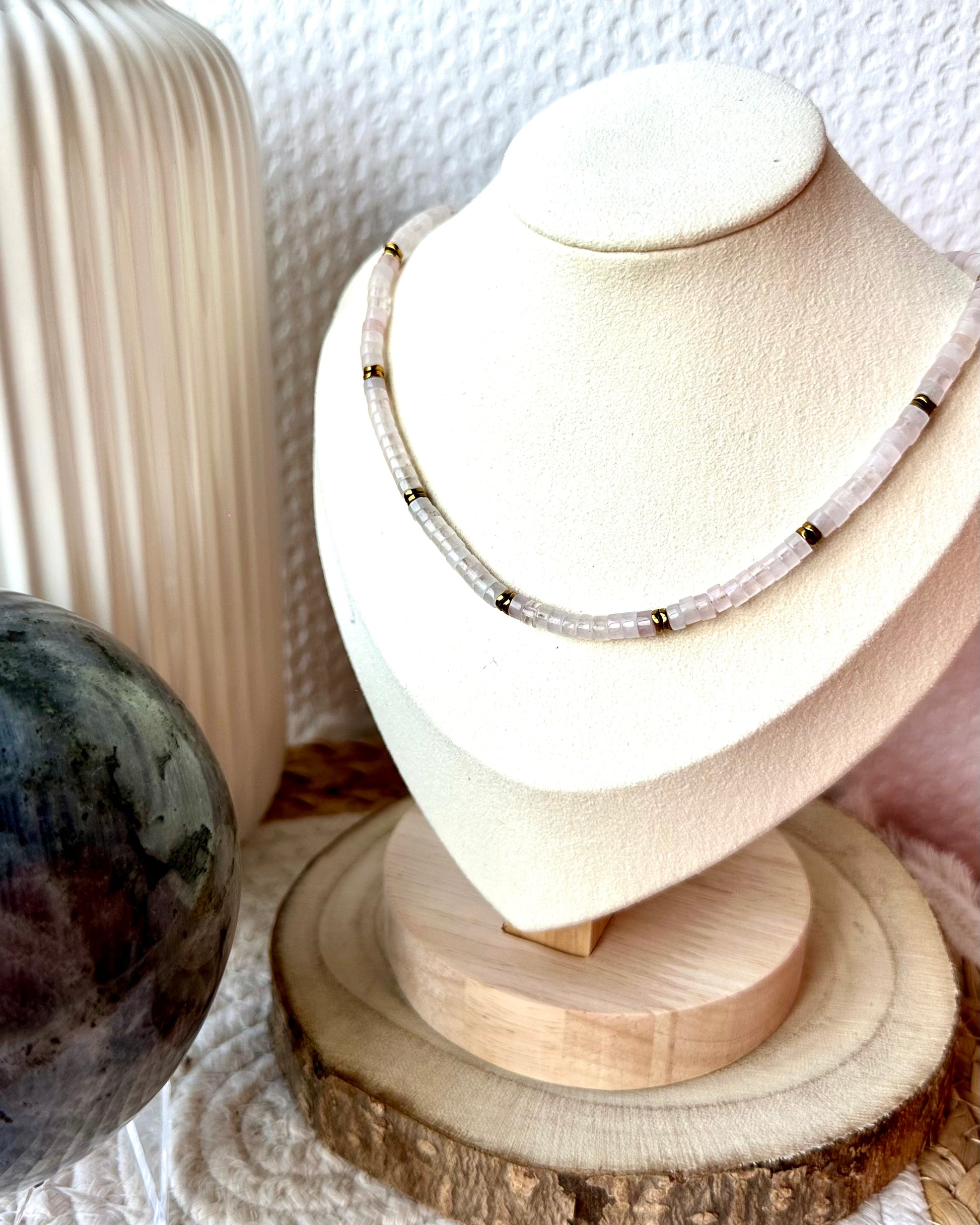 Collier ras de cou fait main en perles naturelles et hématite