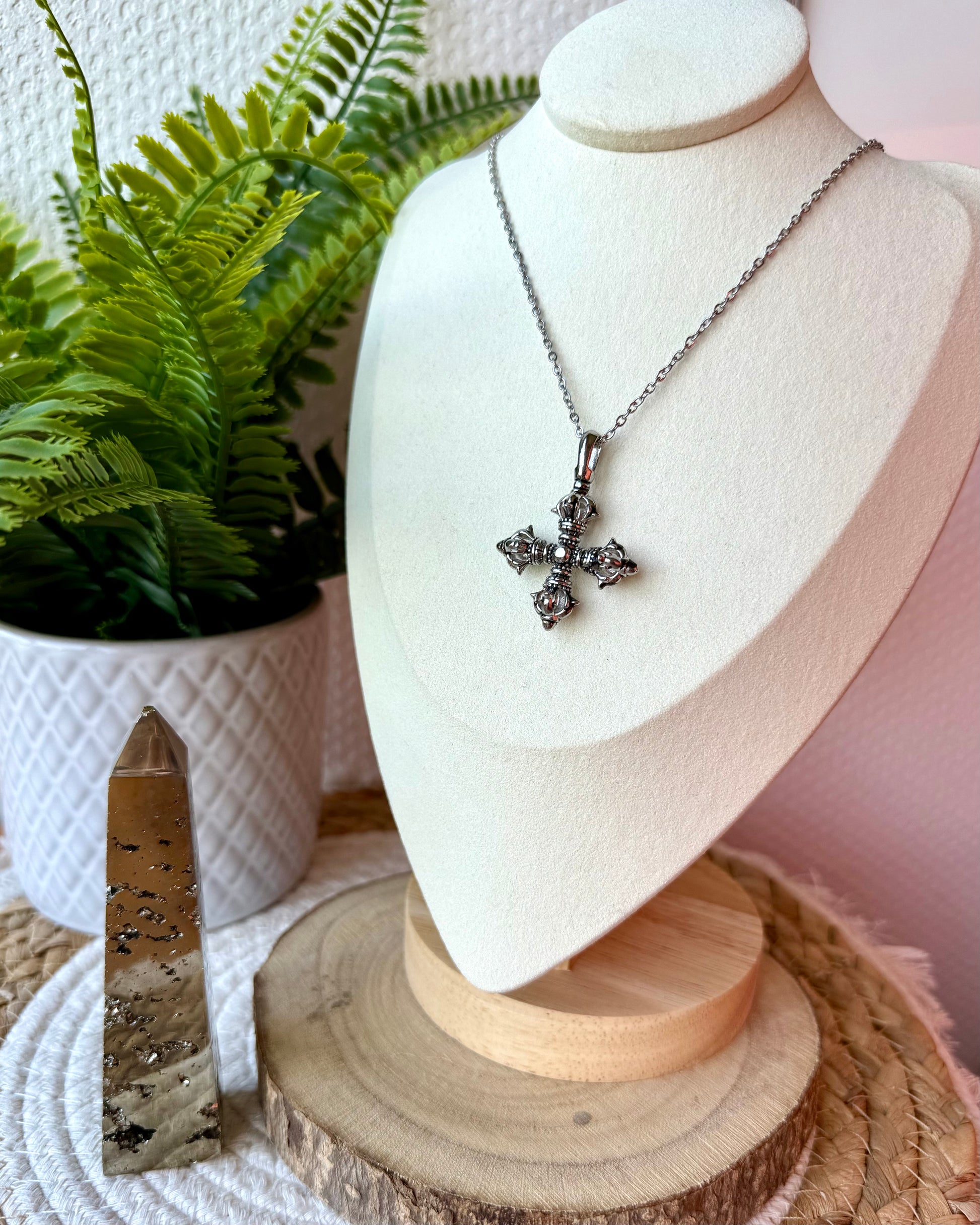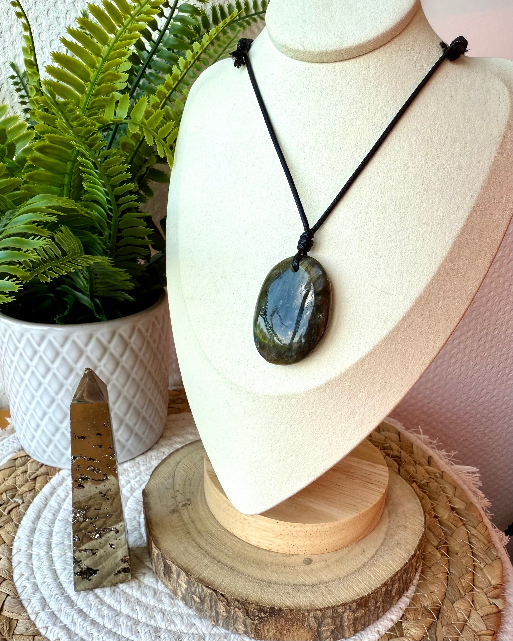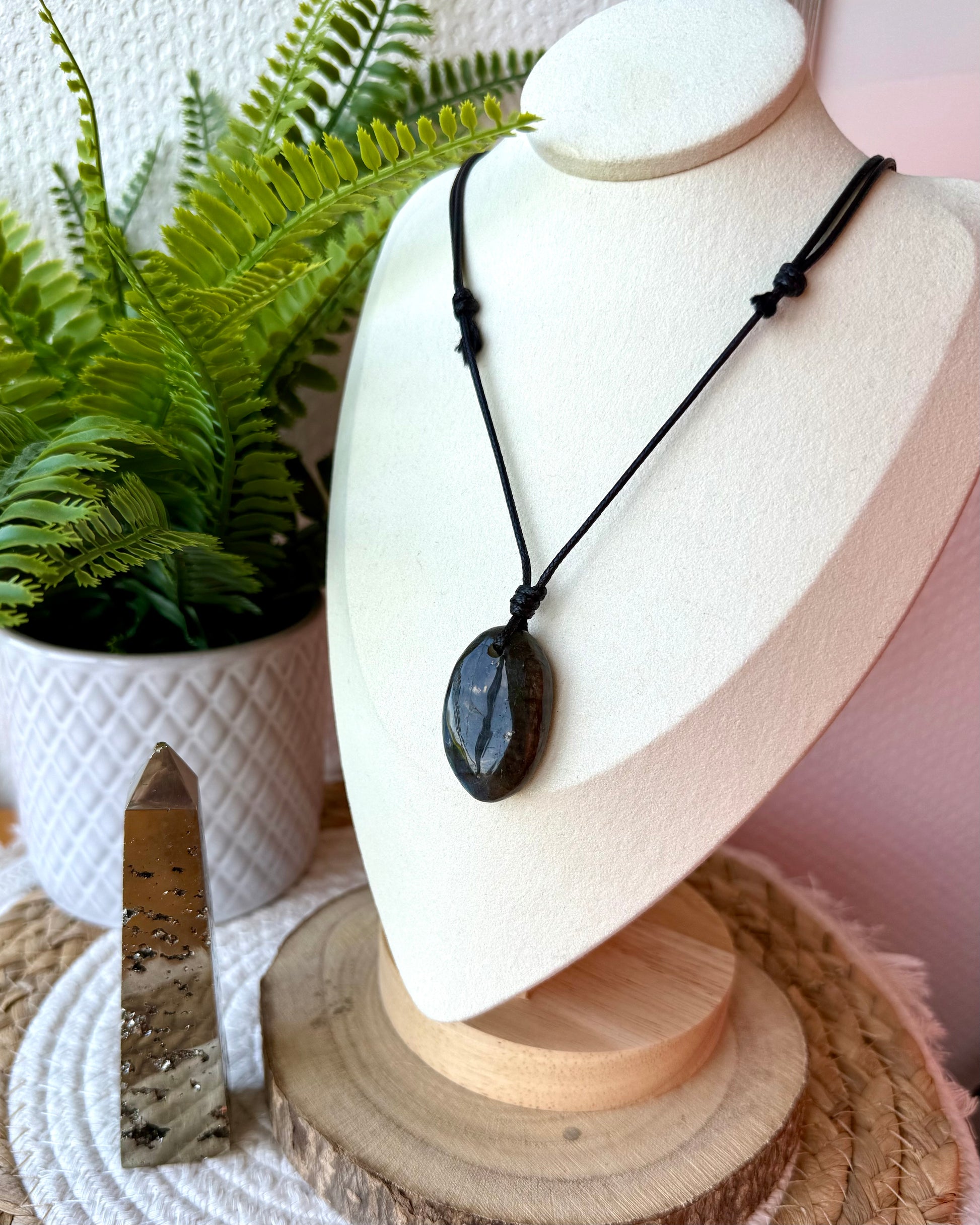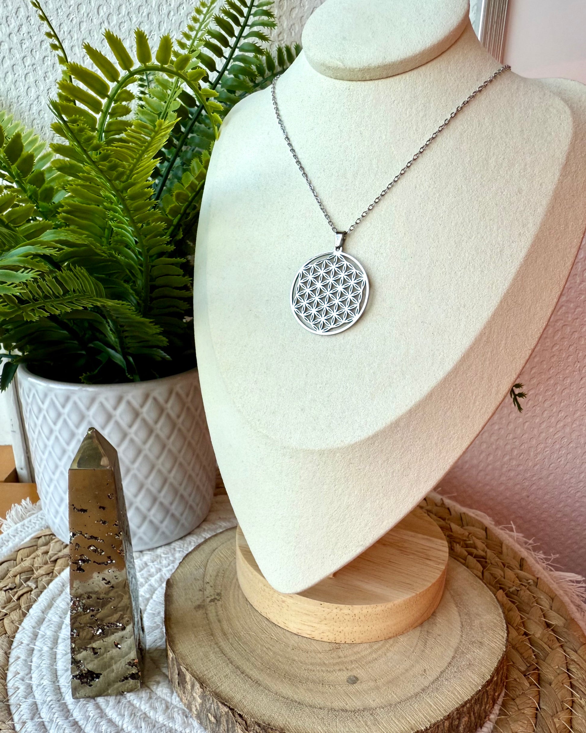 Collection masculine alliant puissance brute et spiritualité : colliers en pierres naturelles et symboles de géométrie sacrée, montés sur acier inoxydable pour un style intemporel et énergétique.