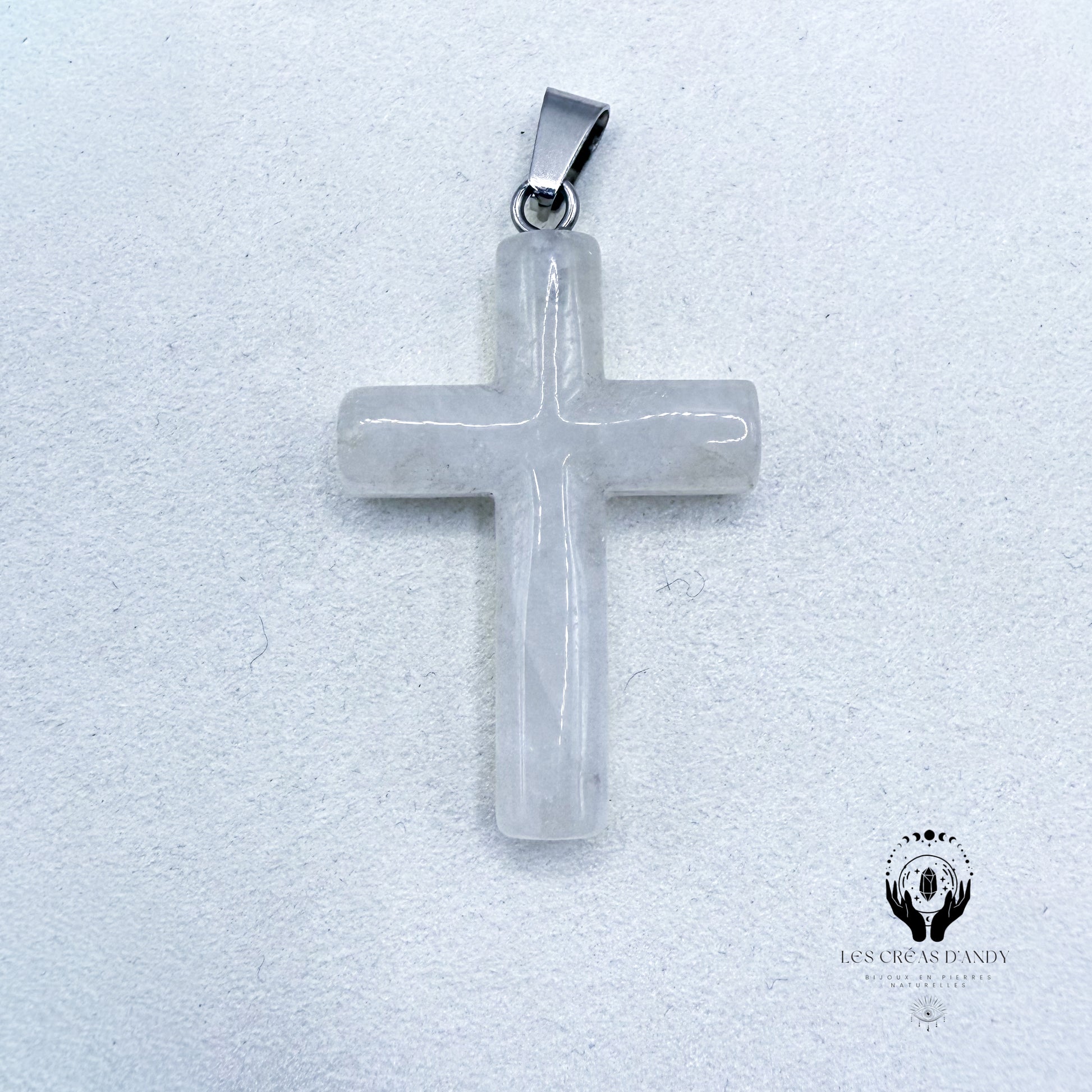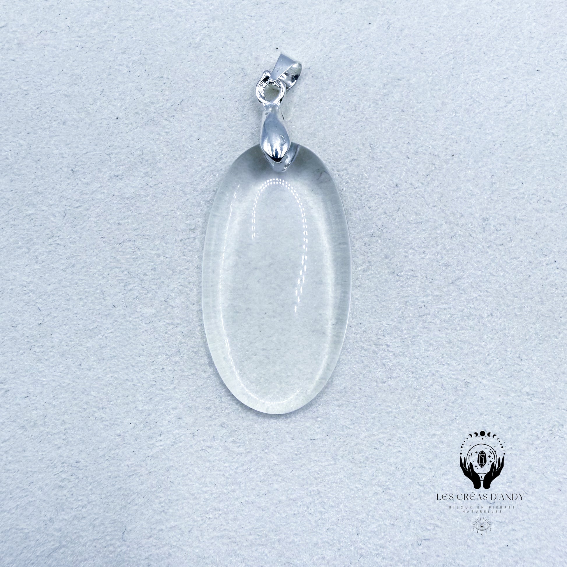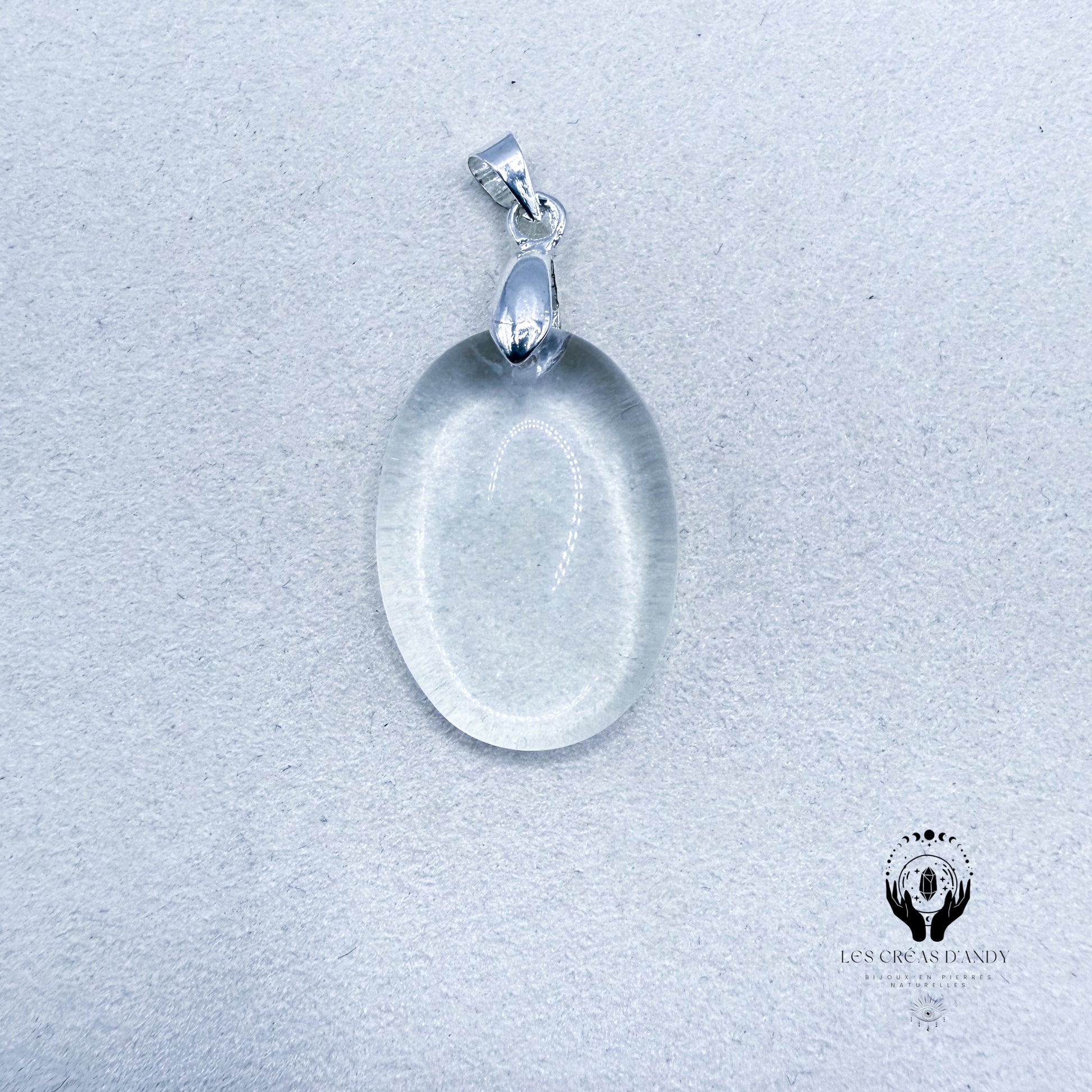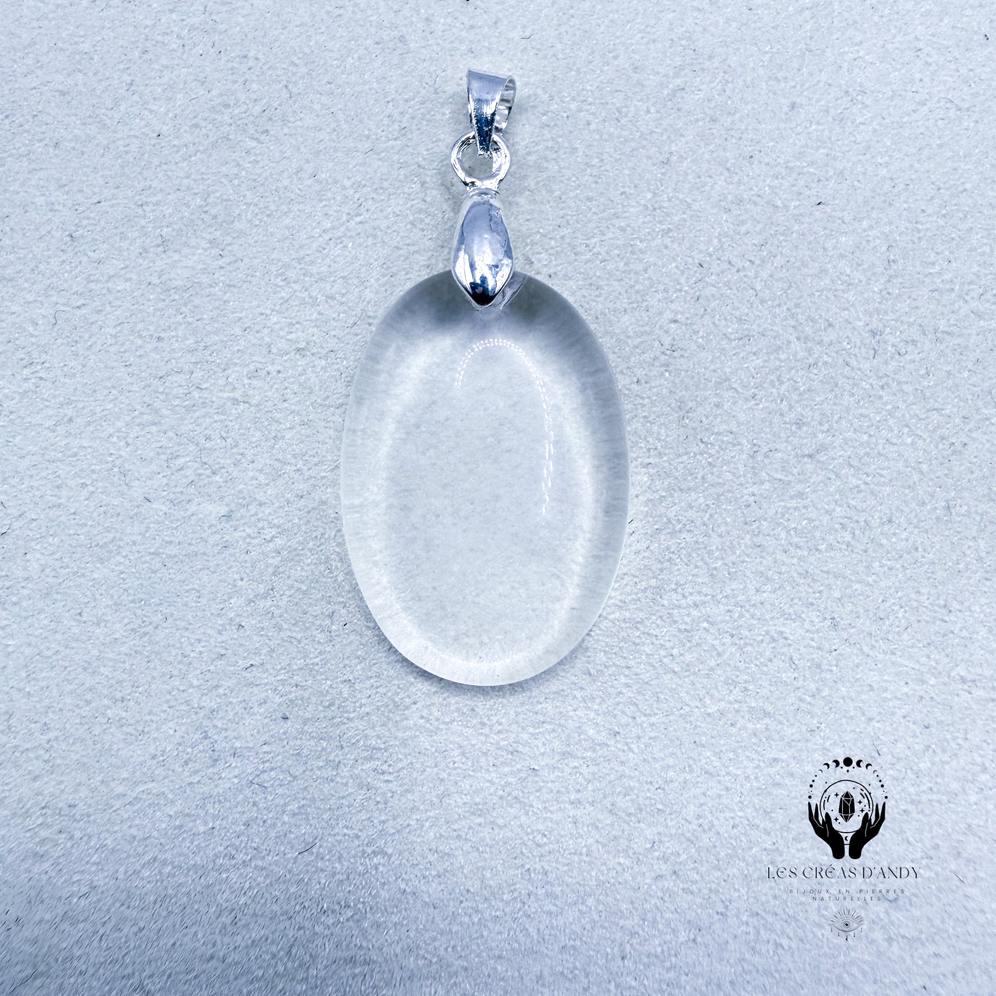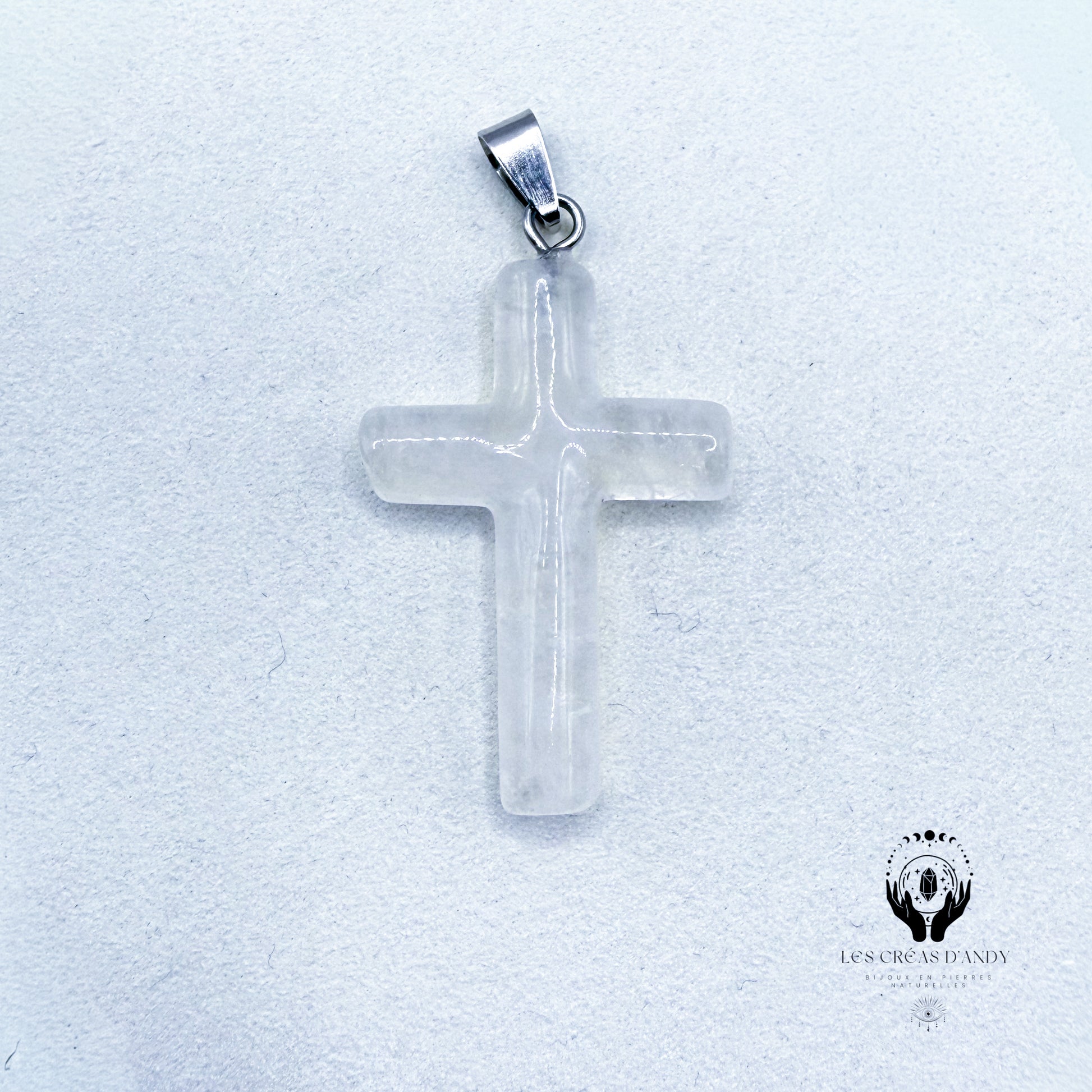 Pendentifs en pierres naturelles Cristal de roche et bélière acier inoxydable.