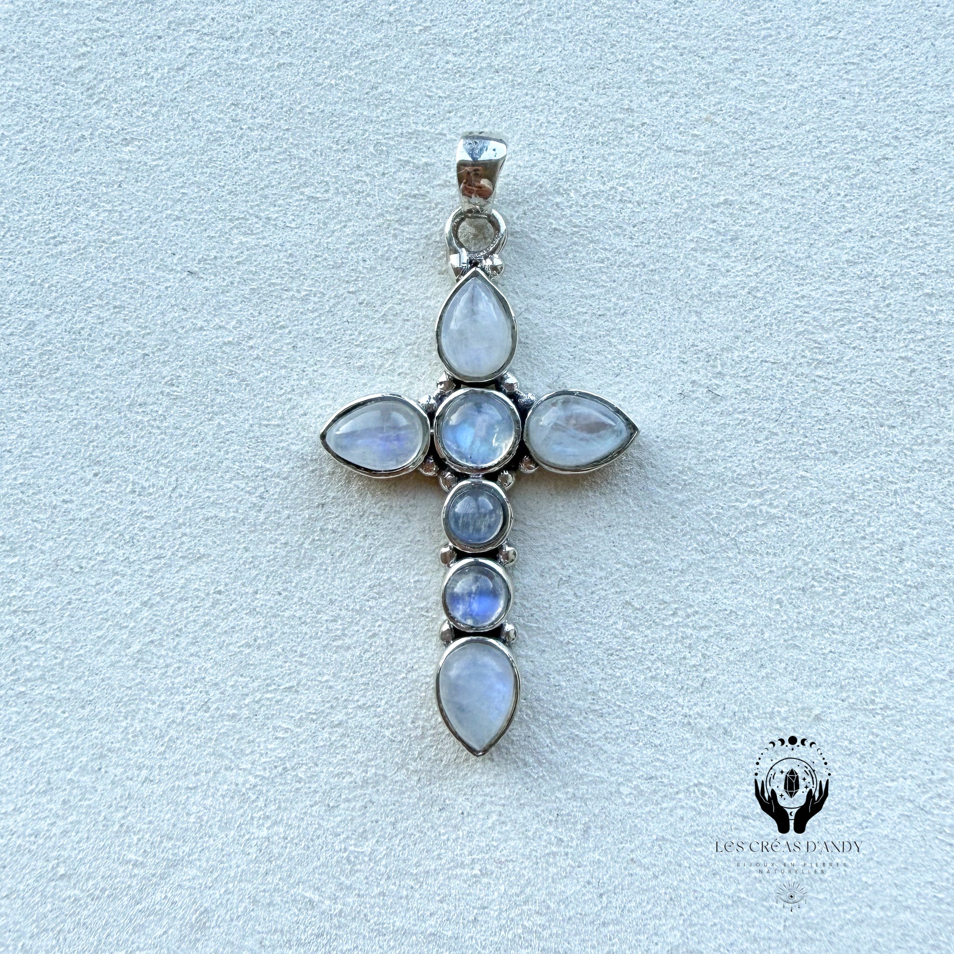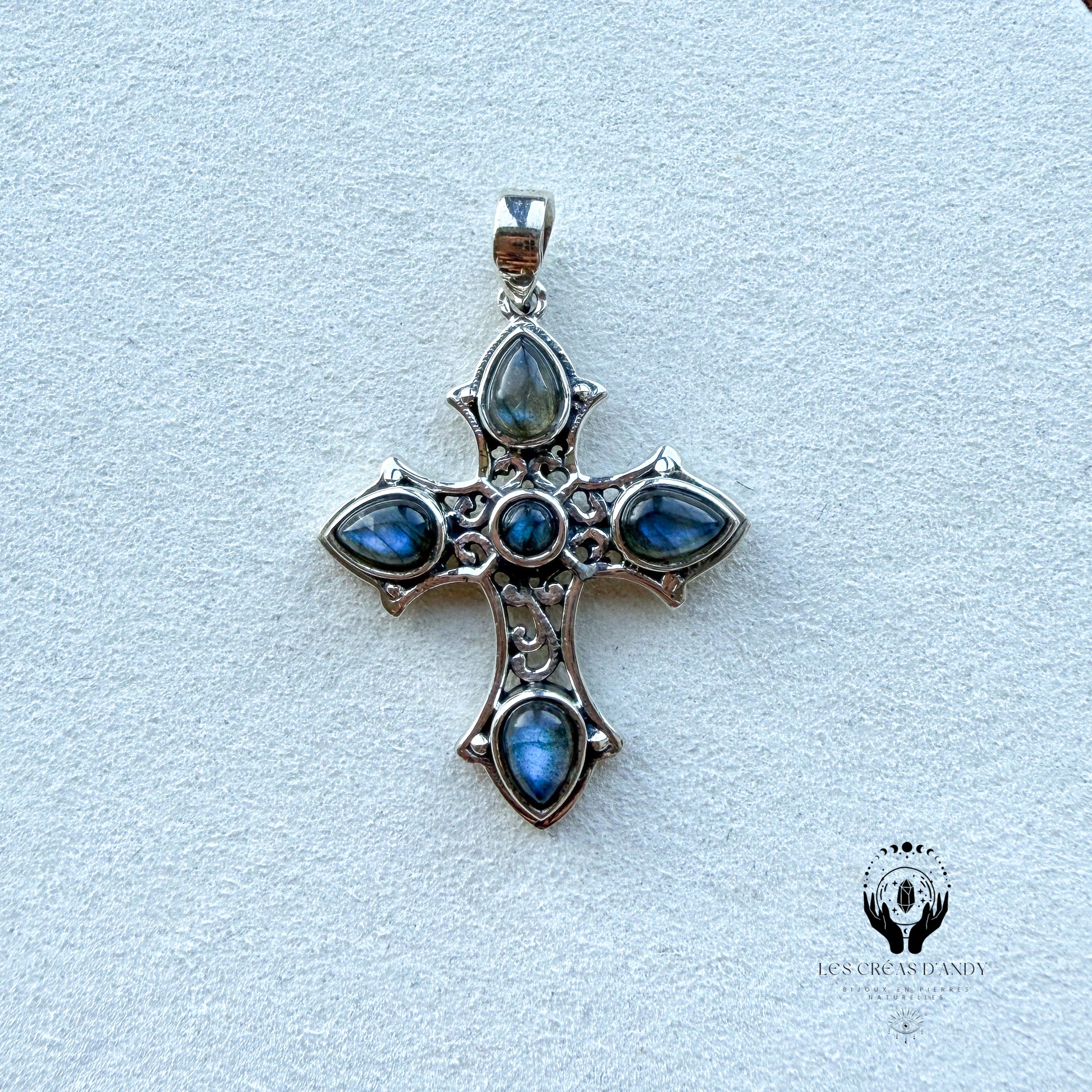 CROIX PIERRES NATURELLES ET ARGENT 925