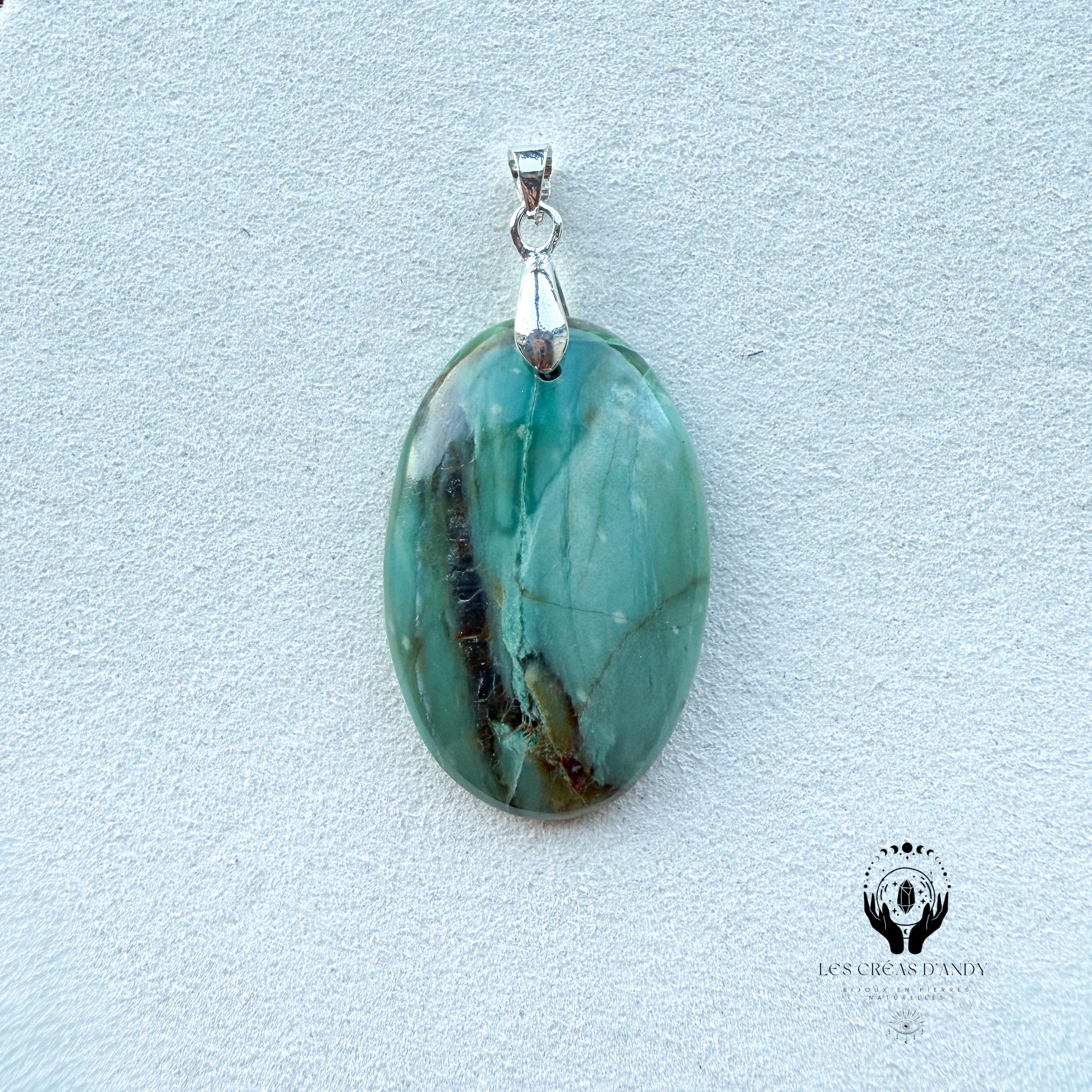 Pendentifs en pierres naturelles Jaspe gary green et bélière acier inoxydable.