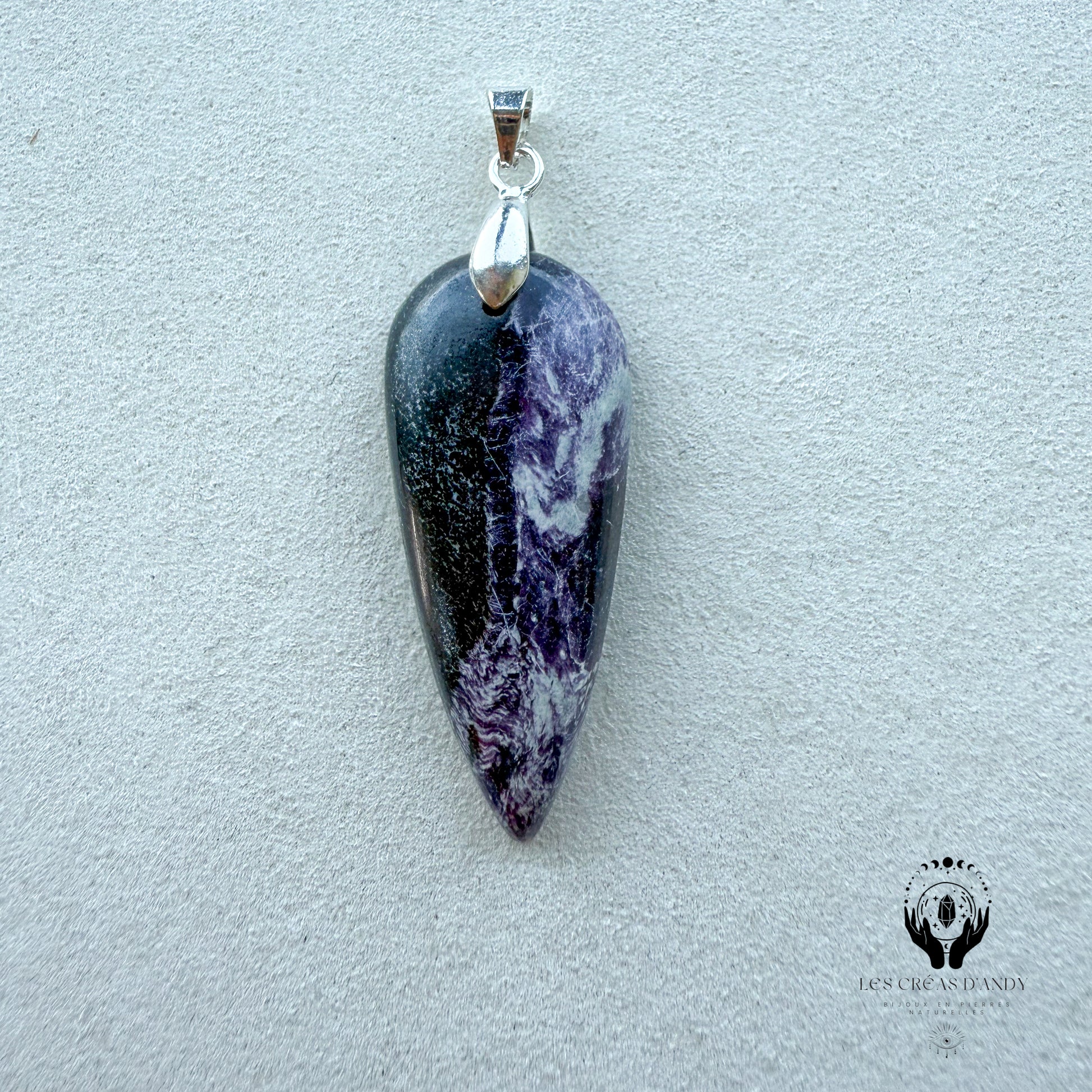 Pendentifs en pierres naturelles Karmmererite et bélière acier inoxydable