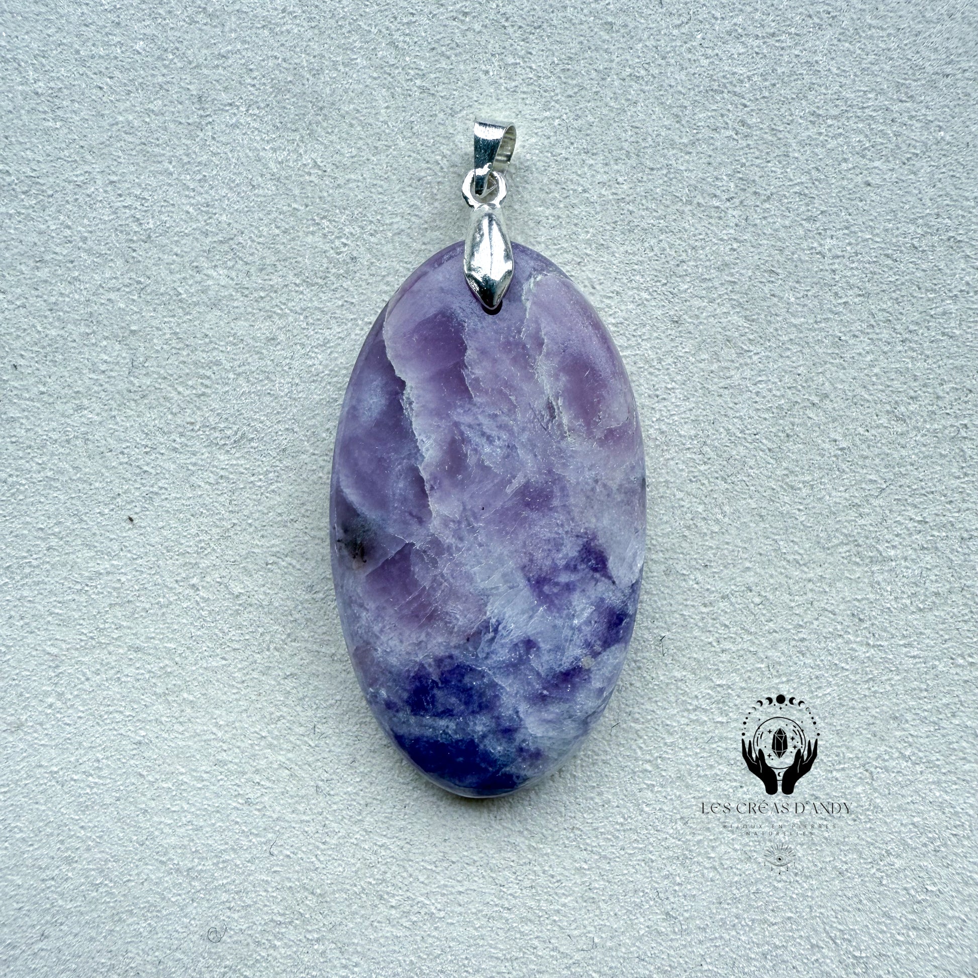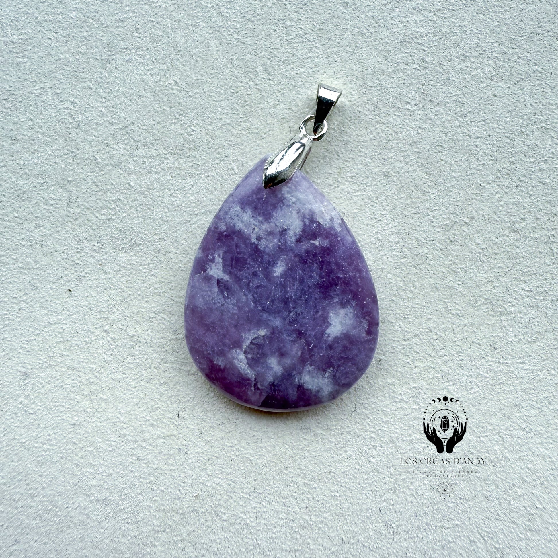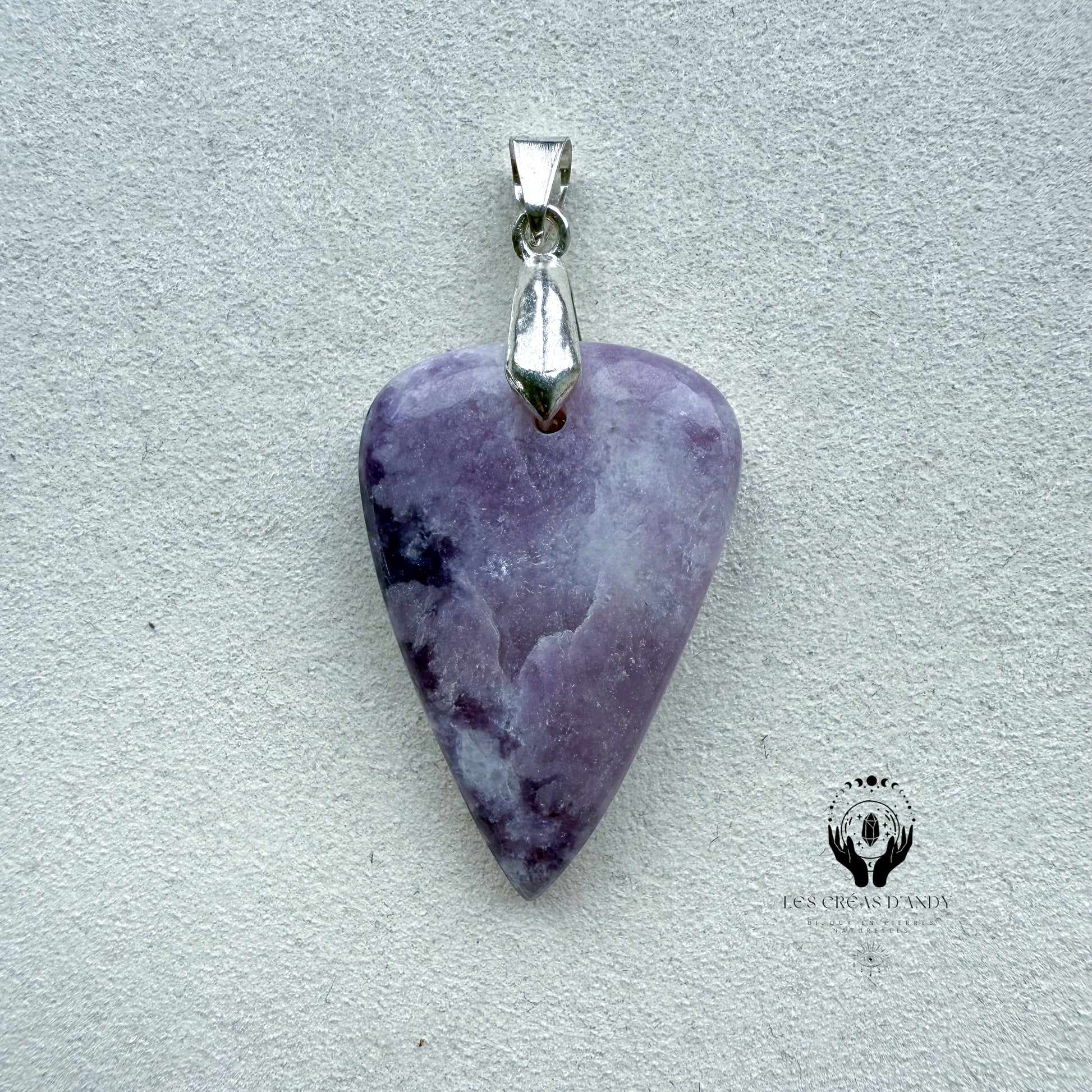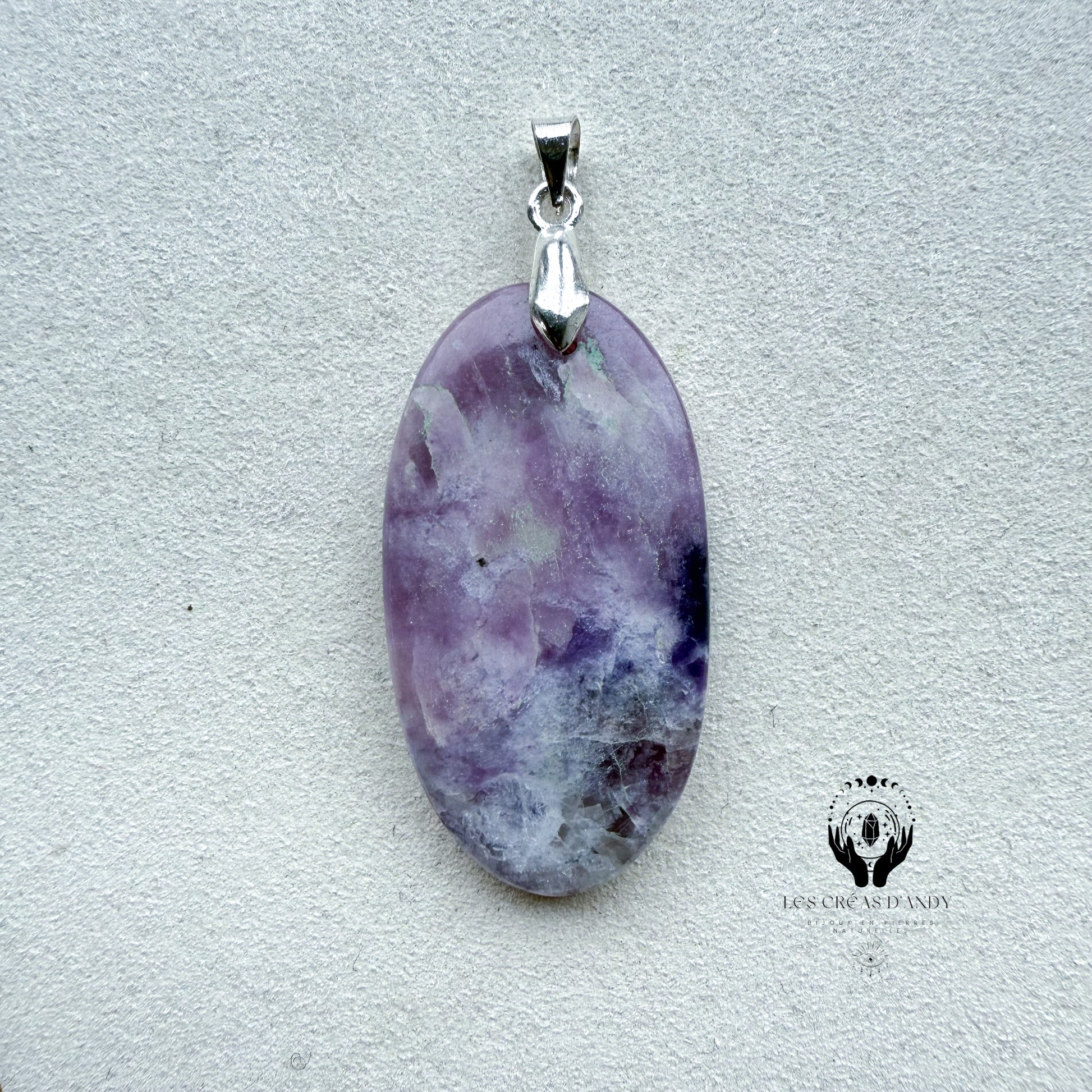 Pendentifs en pierres naturelles Lépidolite et bélière acier inoxydable.
