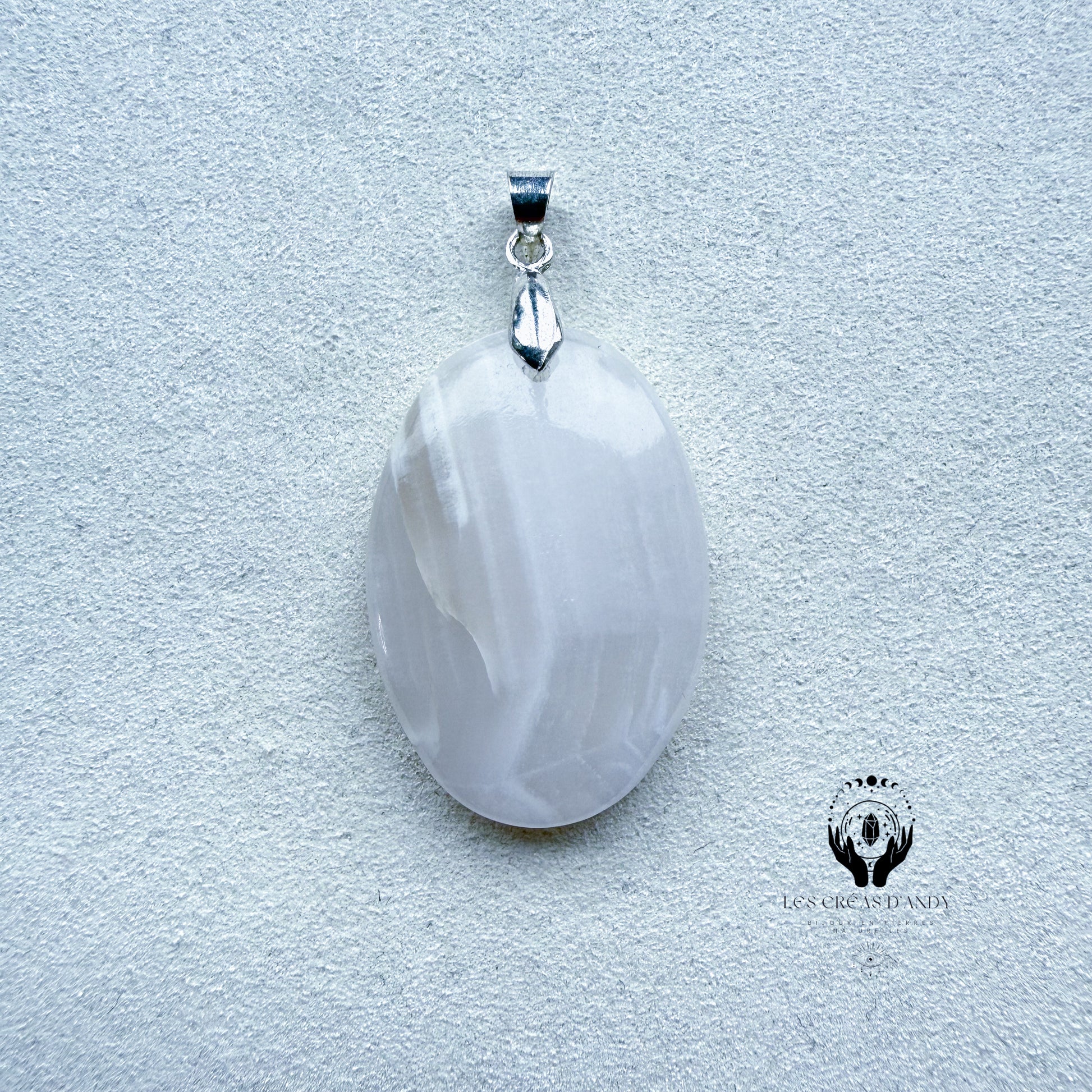 Pendentifs en pierres naturelles Manganocalcite et bélière acier inoxydable.