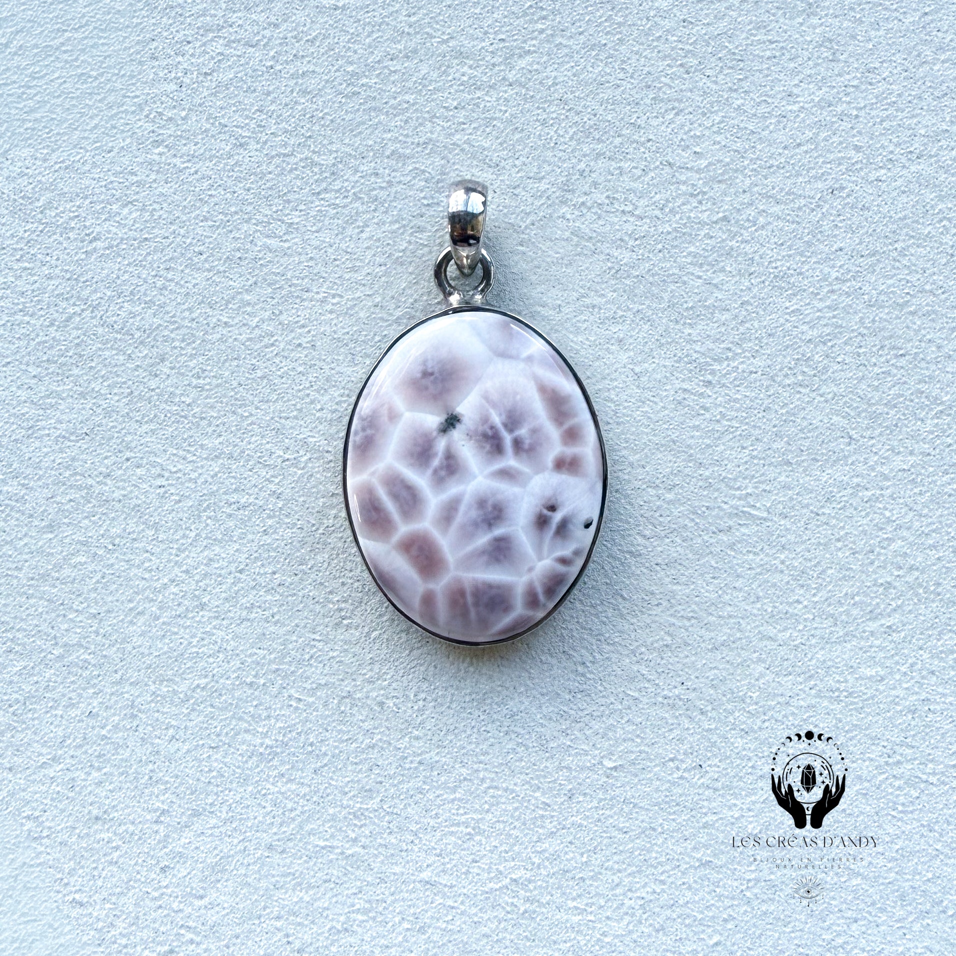 Pendentifs en pierres naturelles Natrolite et argent 925.
